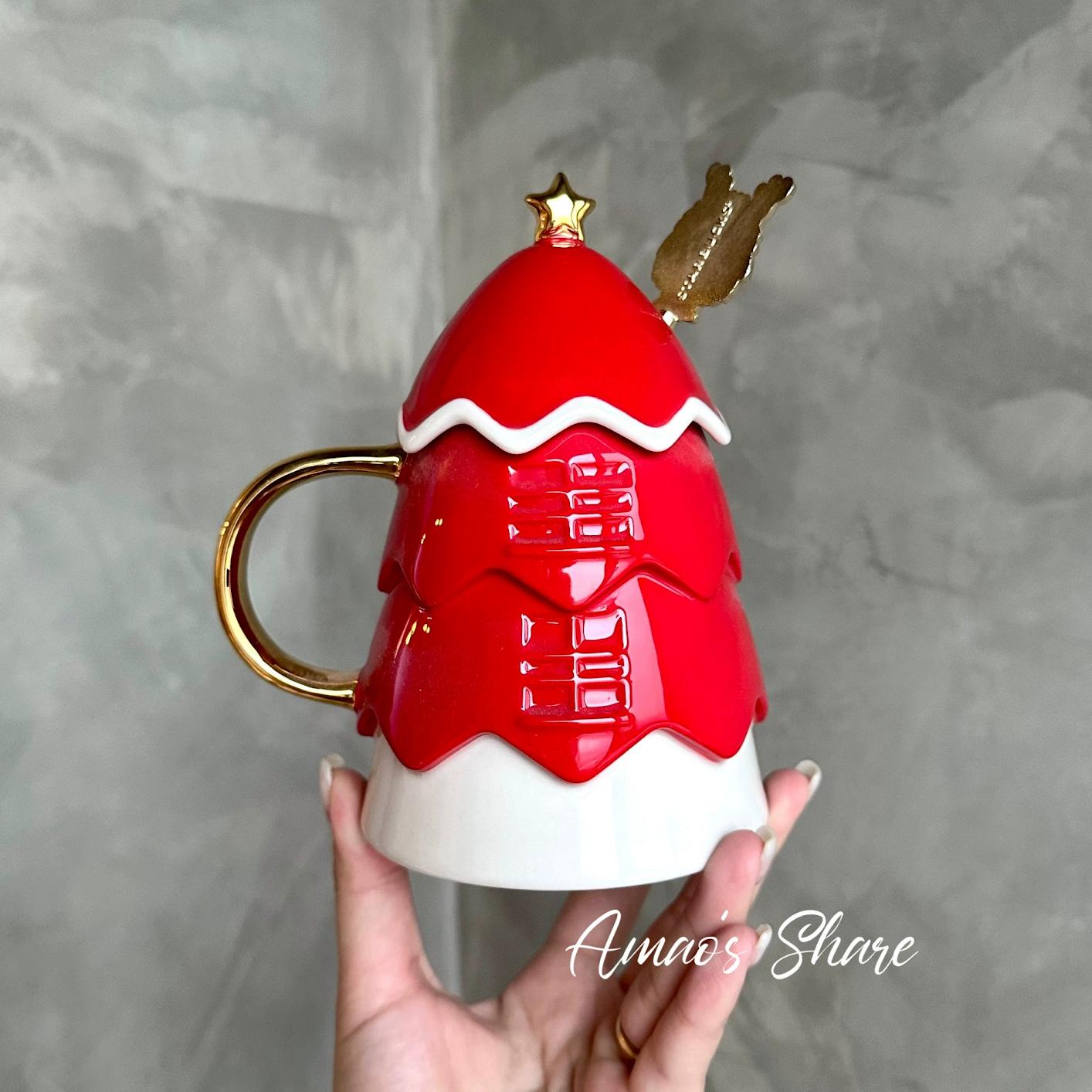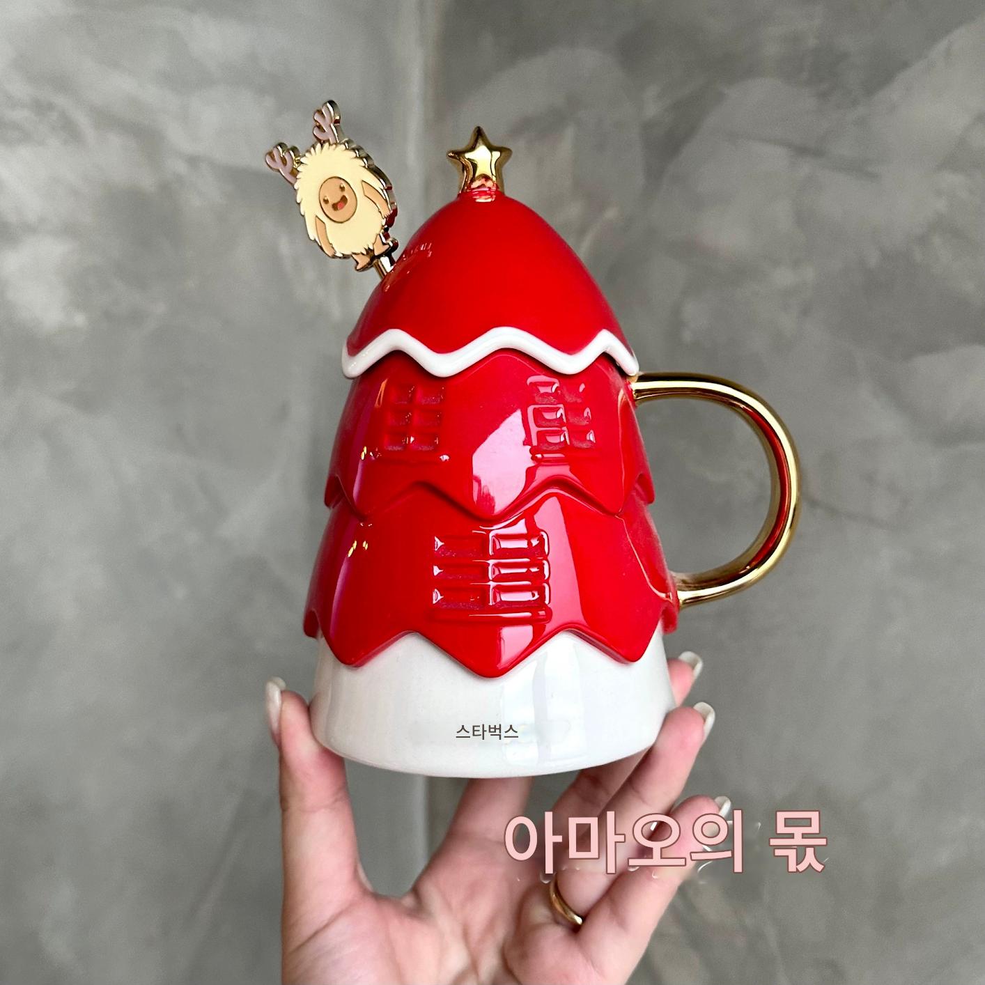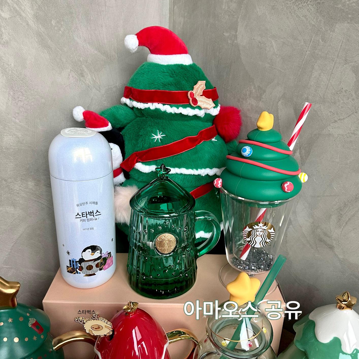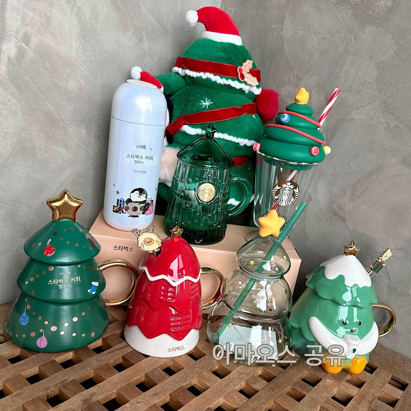 스타벅스 컵 크리스마스 선물 한정판 그린 크리스마스 트리 축제 분위기 세라믹 컵 머그잔
