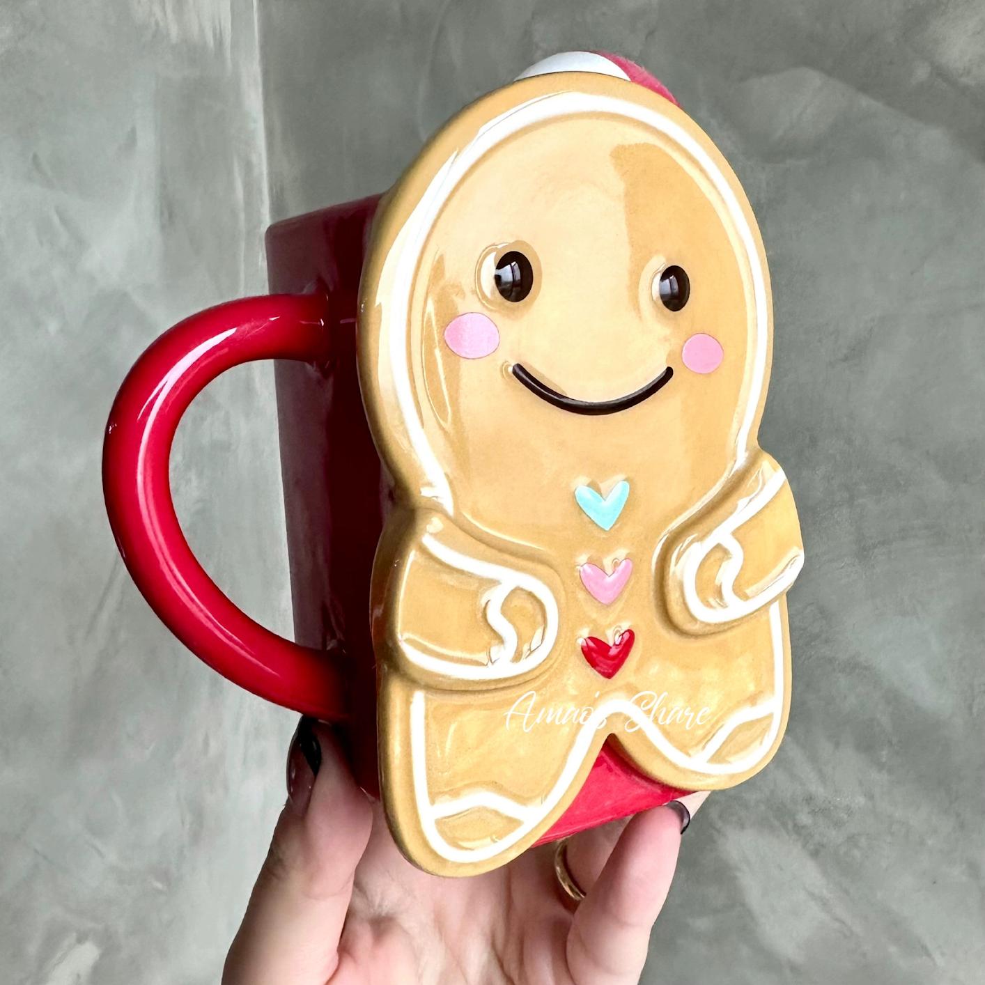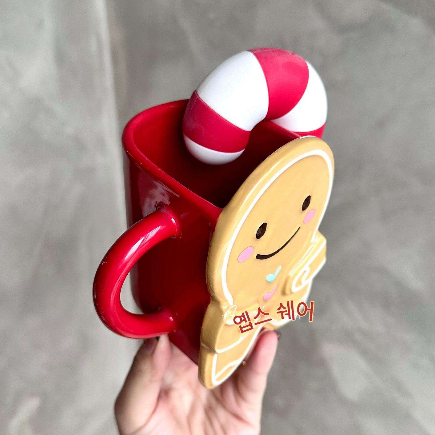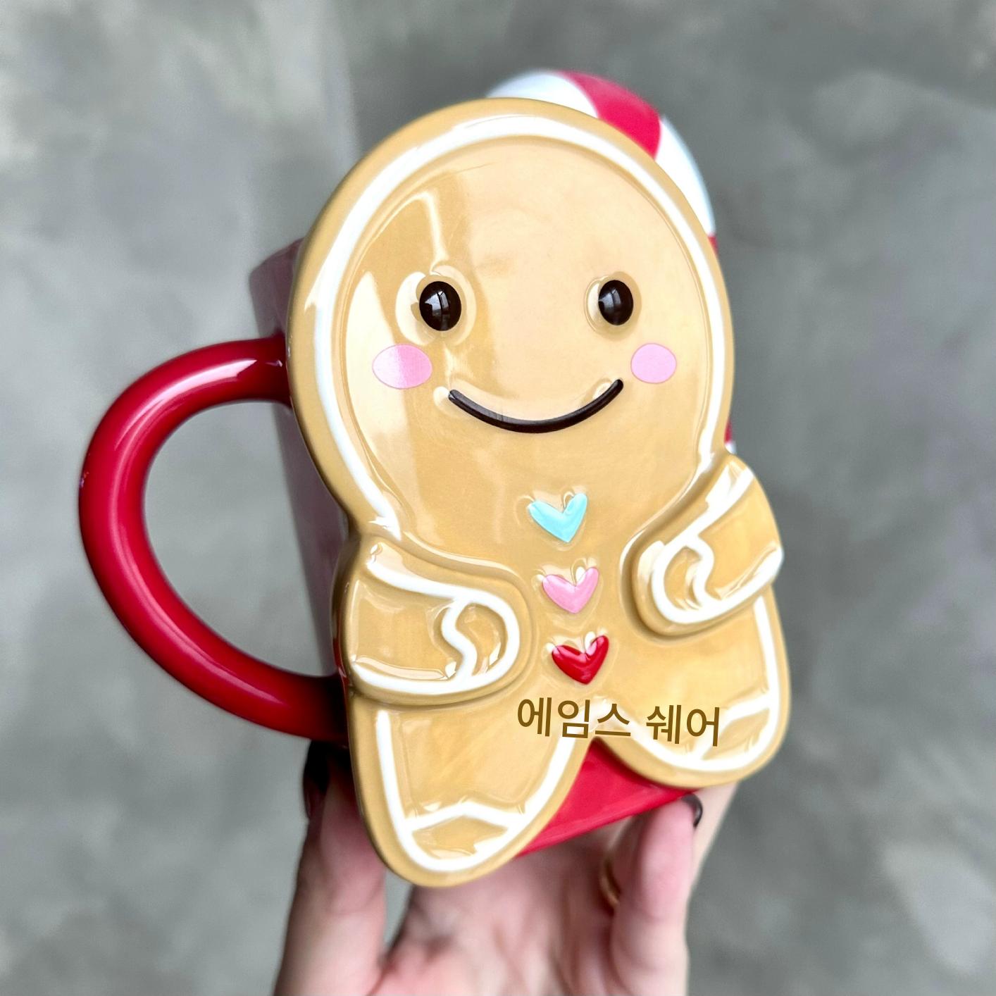 스타벅스 크리스마스 한정판 3D 진저브레드맨 모양 귀여운 지팡이 티 세라믹 머그