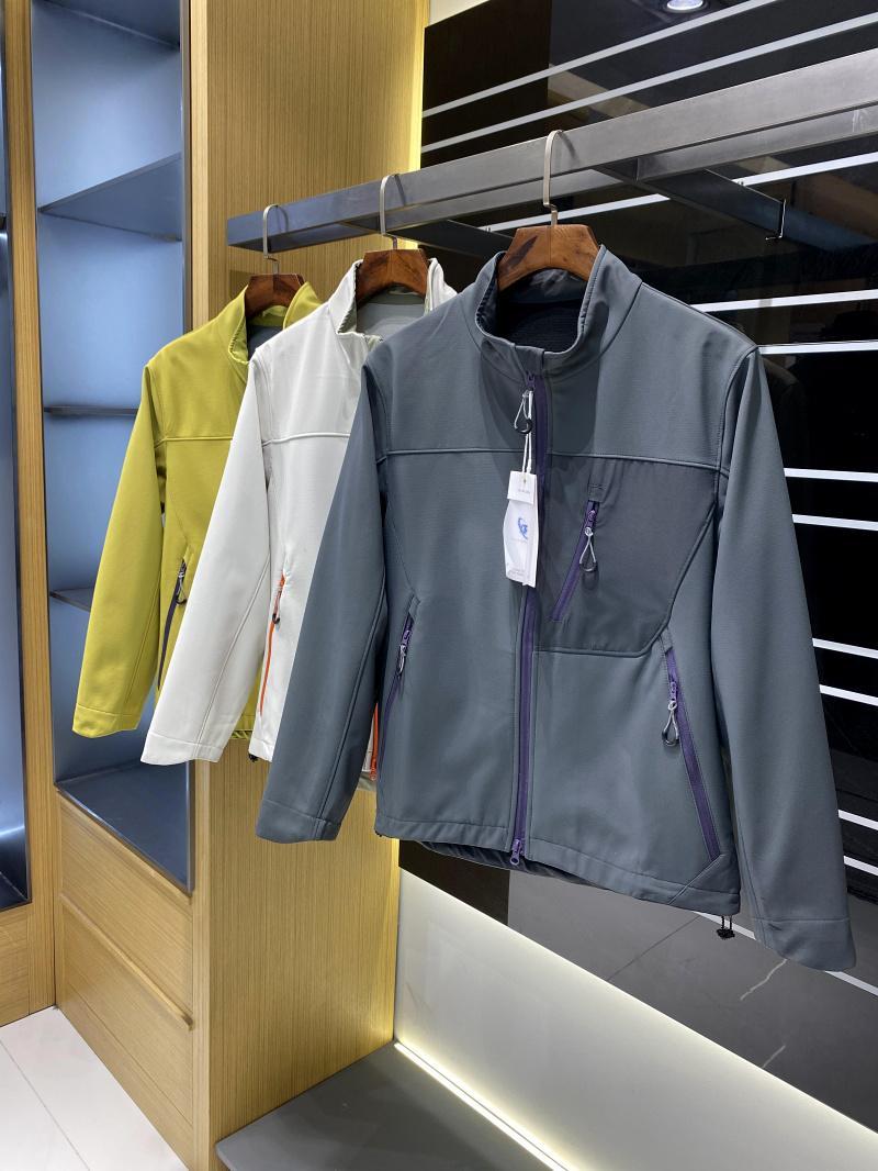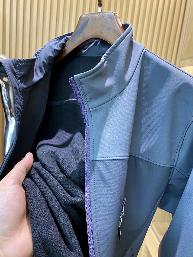 스탠드업 칼라와 대비되는 지퍼가 특징인 고급 남성용 겨울 아웃도어 소프트쉘 플리스 재킷