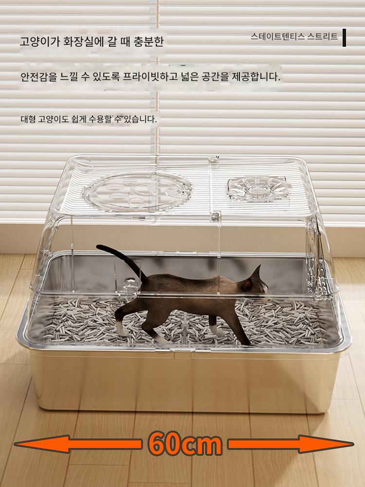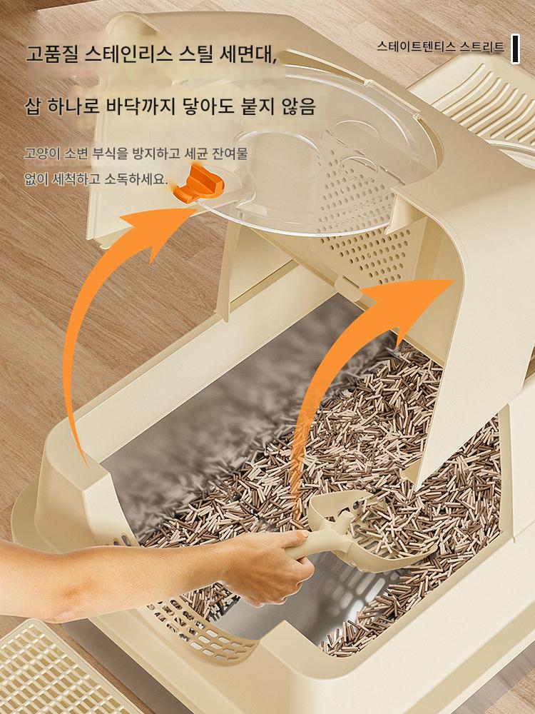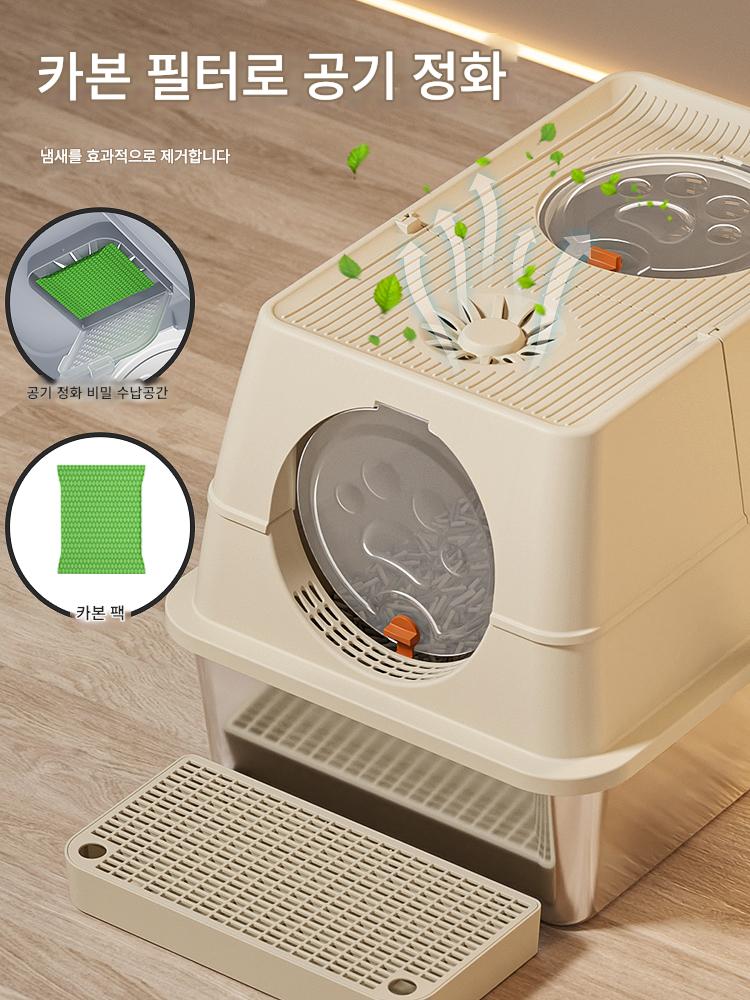 스테인리스 스틸 고양이용 변기 상자 완전 밀폐형 대형 반밀폐형 플립탑 방수 세척 용이 고양이용 변기 상자