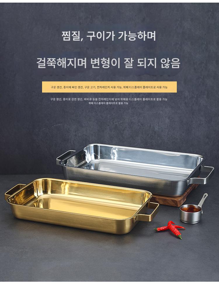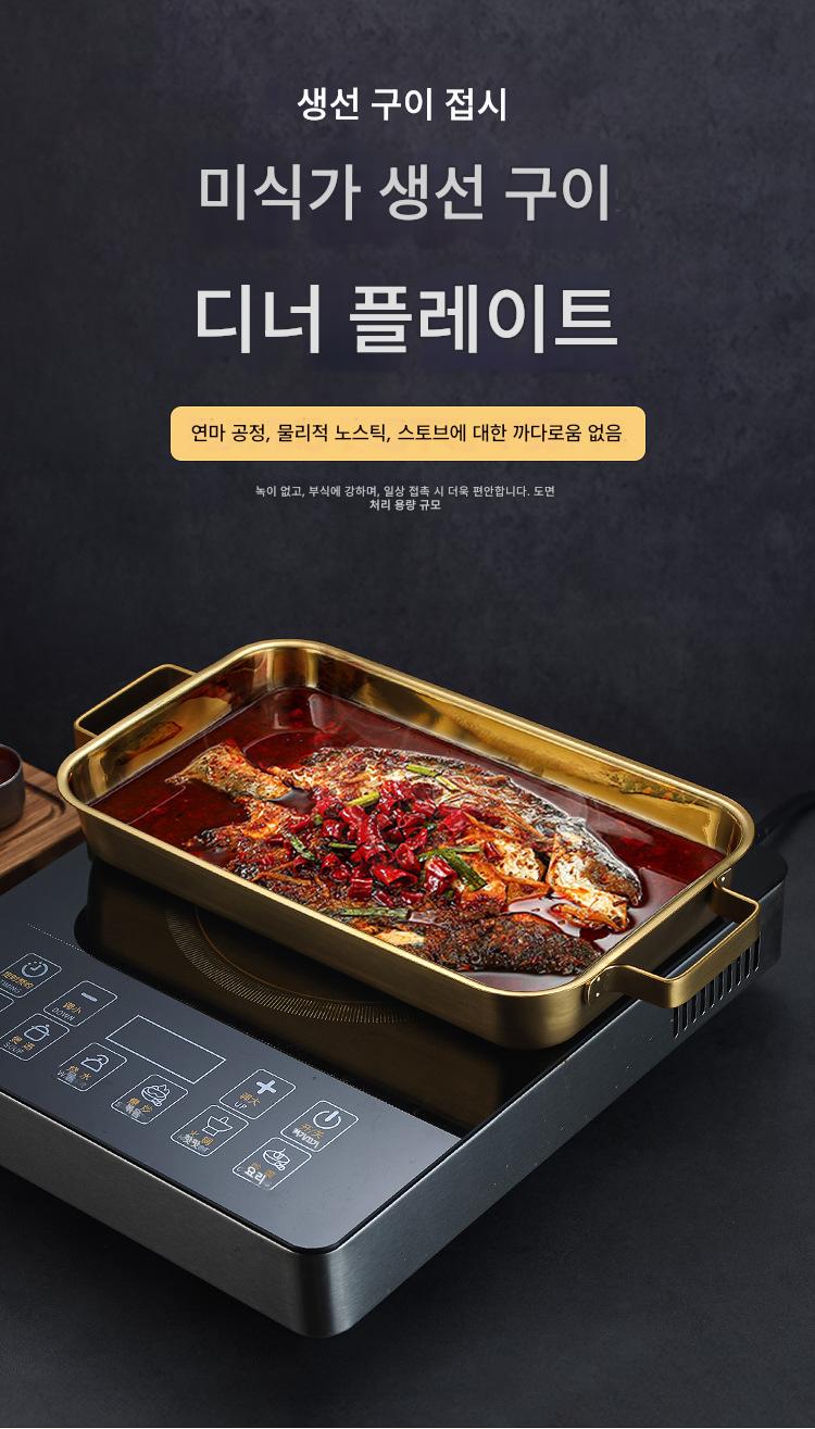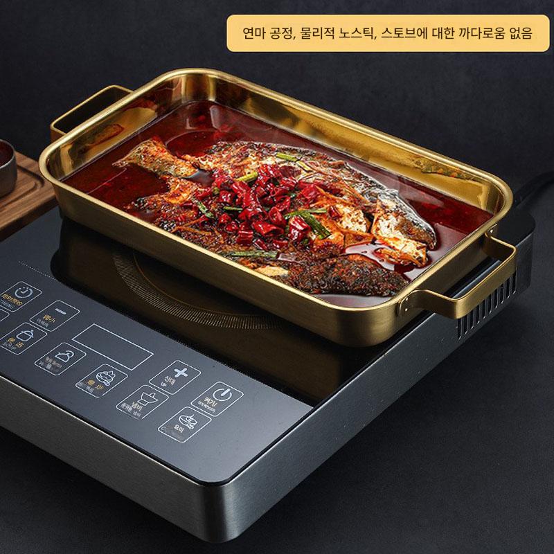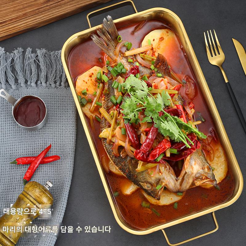 “스테인리스 스틸 구운 생선 접시 한국식 건조 냄비 냄비 그릴 자우어크라우트 생선 그릴 플레이트 골드 플랫 바닥 직사각형 핫팟 인덕션 쿠커”의 첫 상품평을 남겨 주세요