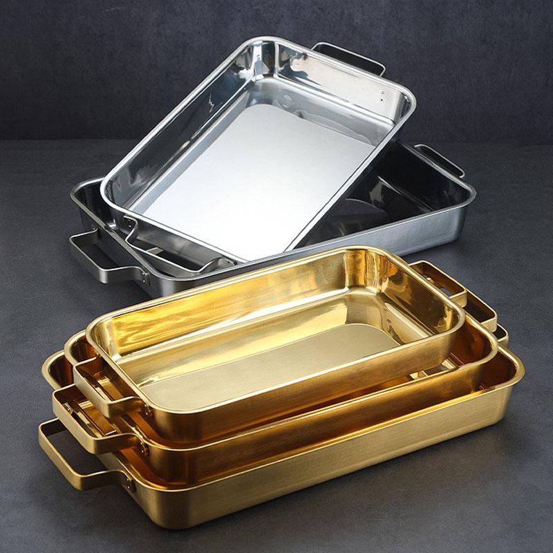 스테인리스 스틸 구운 생선 접시 한국식 건조 냄비 냄비 그릴 자우어크라우트 생선 그릴 플레이트 골드 플랫 바닥 직사각형 핫팟 인덕션 쿠커