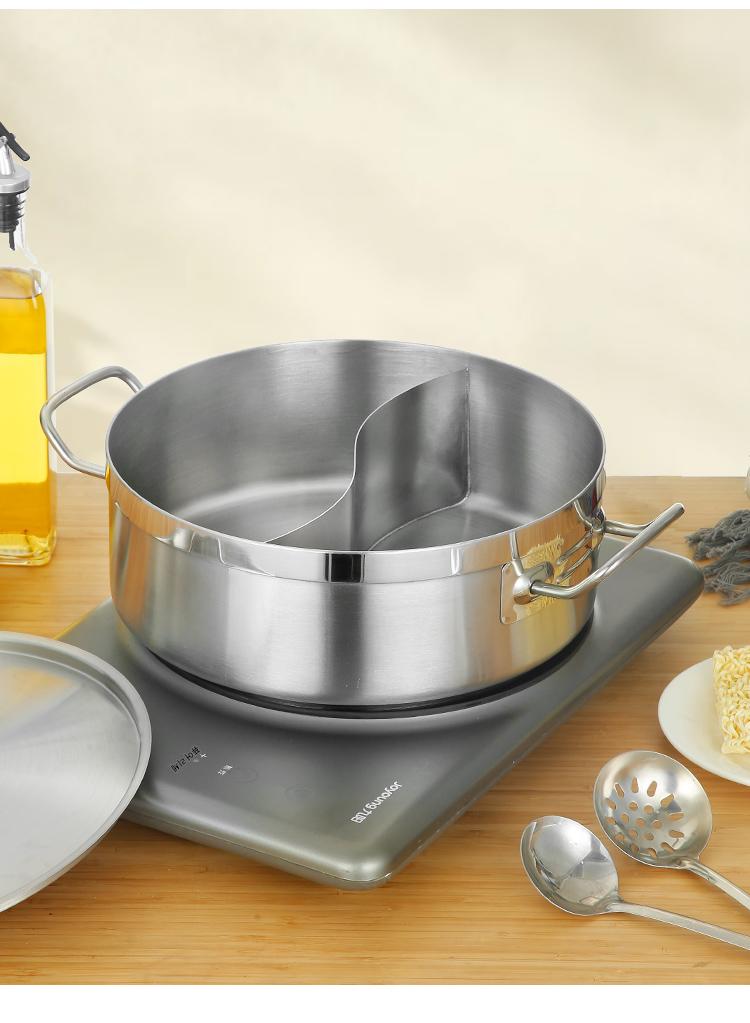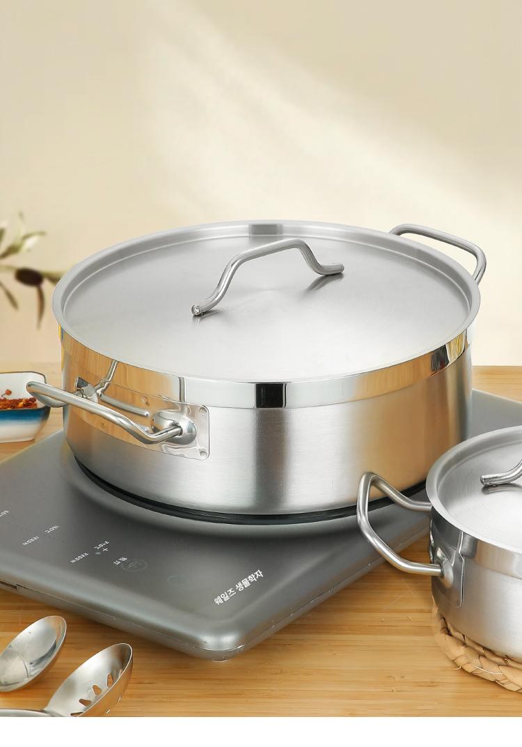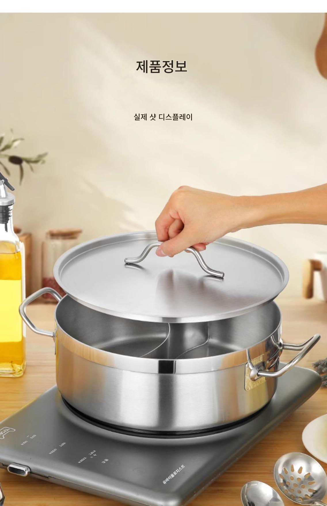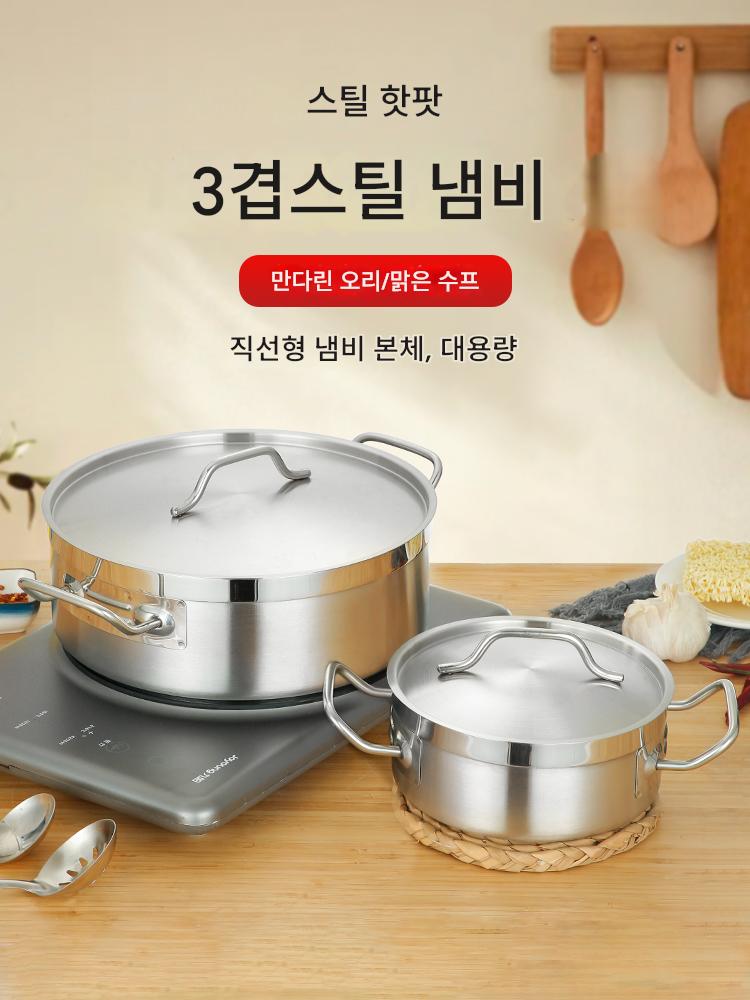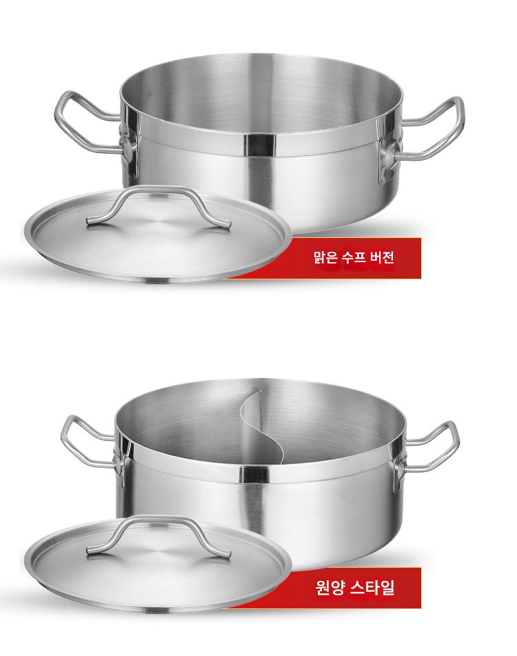 스테인리스 스틸 두껍게 된 합성 바닥 더블 귀 두꺼운 바닥 핫팟 가정용 및 상업용 투명 수프 만다린 오리 냄비 유도 쿠커 가스 범용