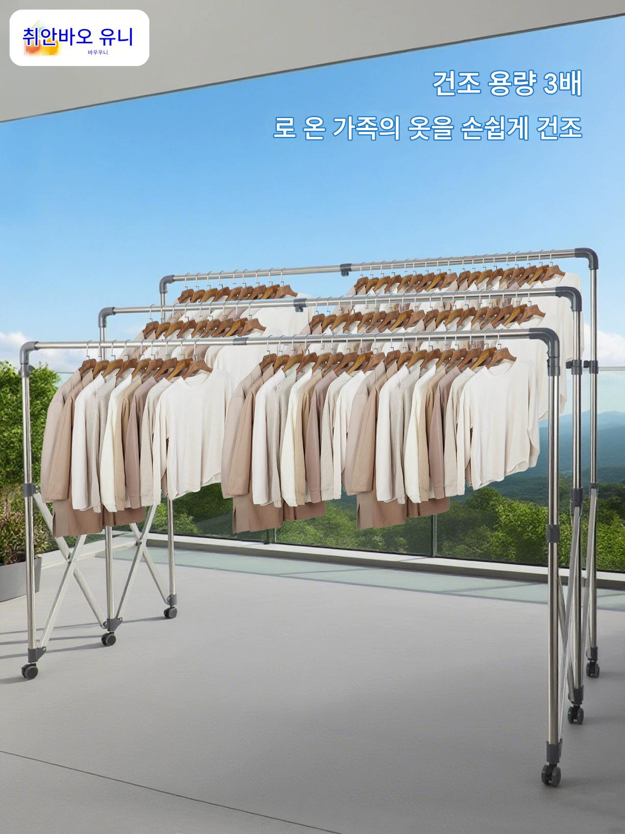 스테인리스 스틸 마당 옷 건조대 바닥 접이식 야외 방풍 지붕 마당 옷 건조대 옥상 이불 건조 유물