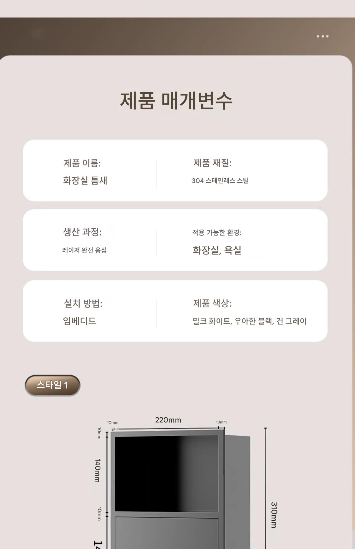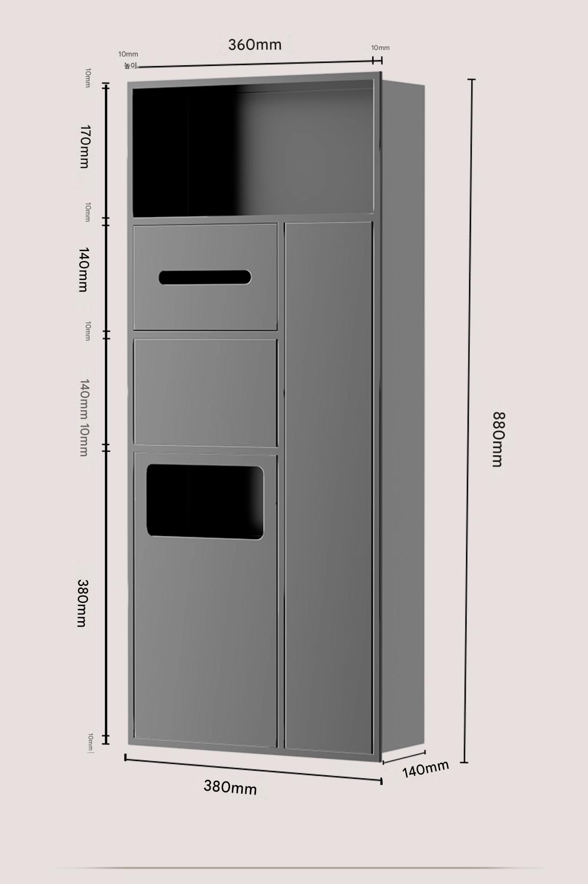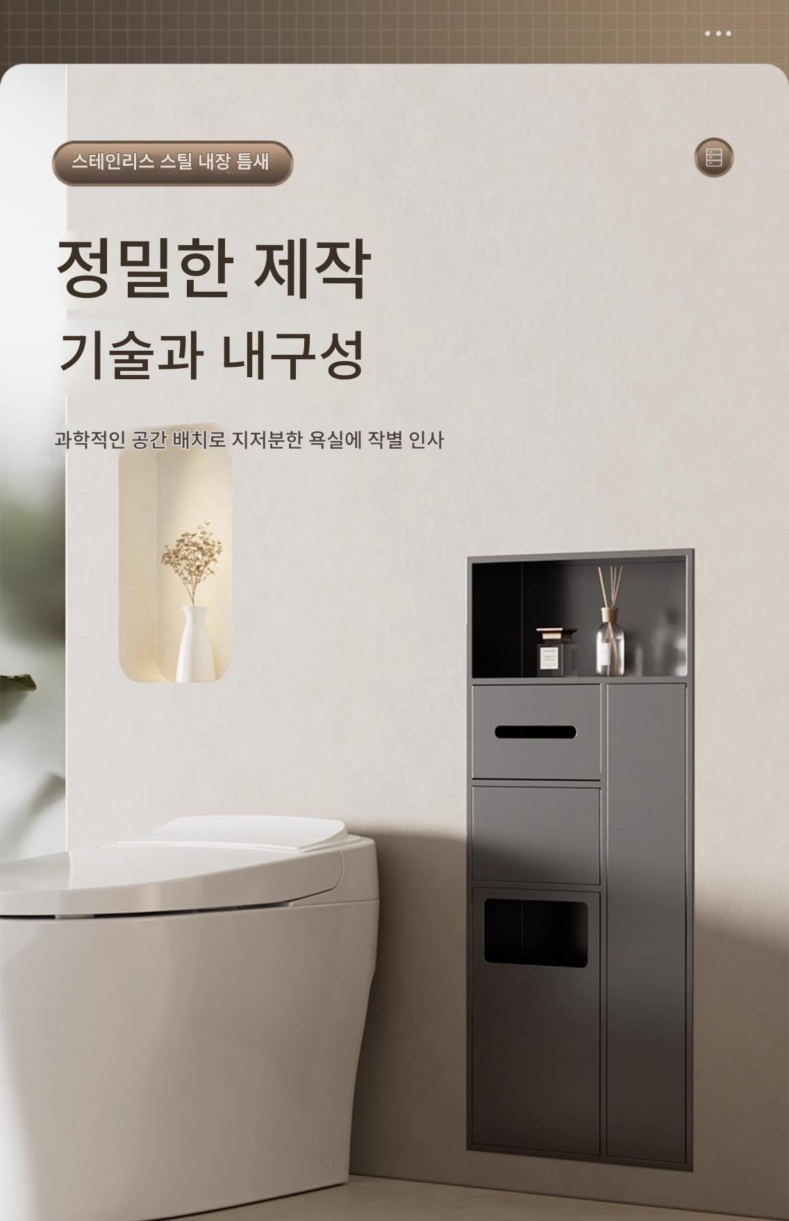 스테인리스 스틸 쓰레기통 틈새에 내장된 숨겨진 욕실 욕실 변기 옆 변기 선반 금속 맞춤형