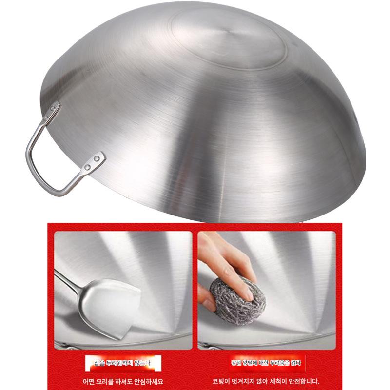 스테인리스 스틸 프라이팬 더블 이어 라운드 바텀 팬 프라이팬 특대형 볶음용 삼각대 상업용 시골 대형 냄비 다양한 스토브에 적합