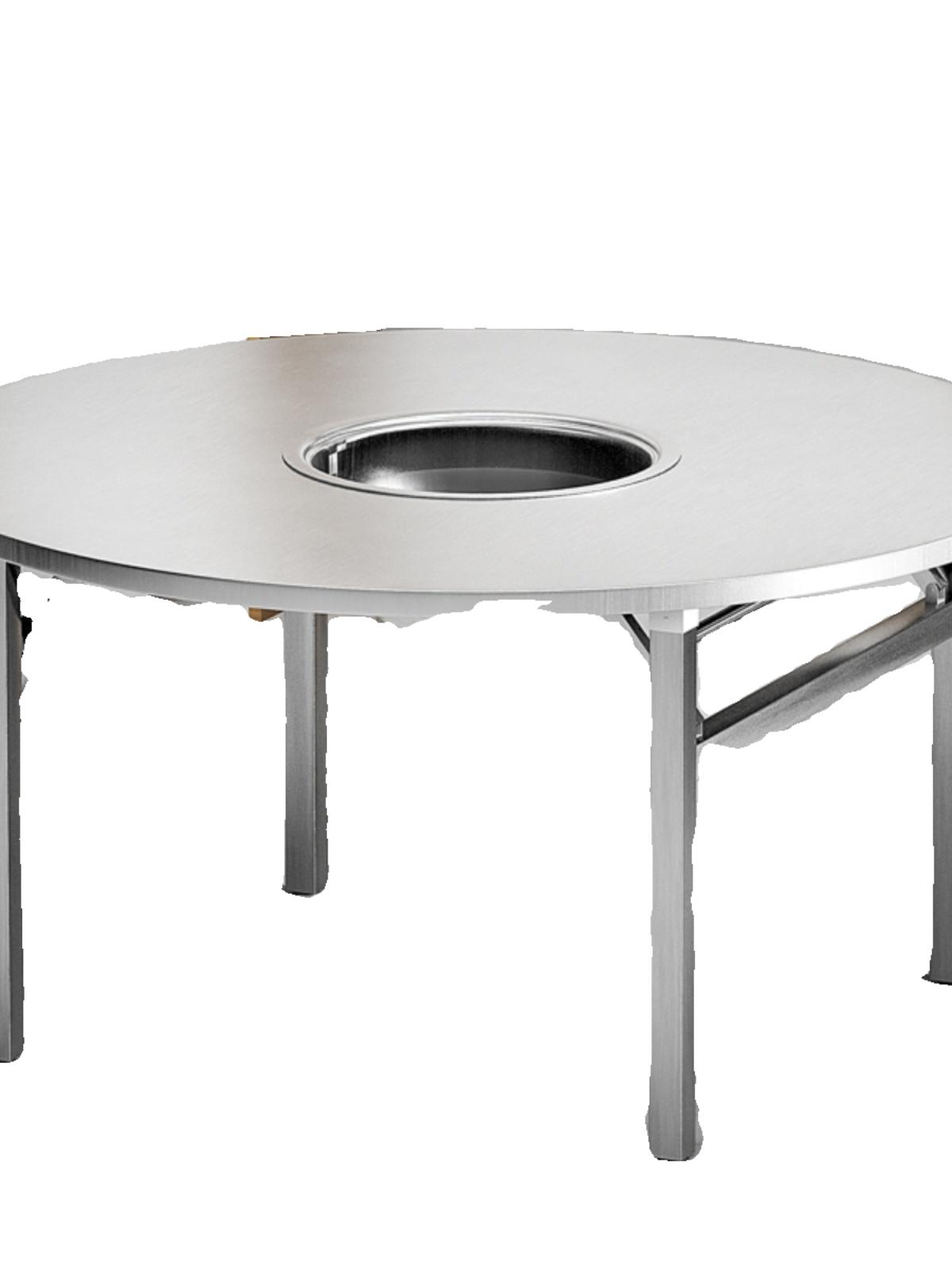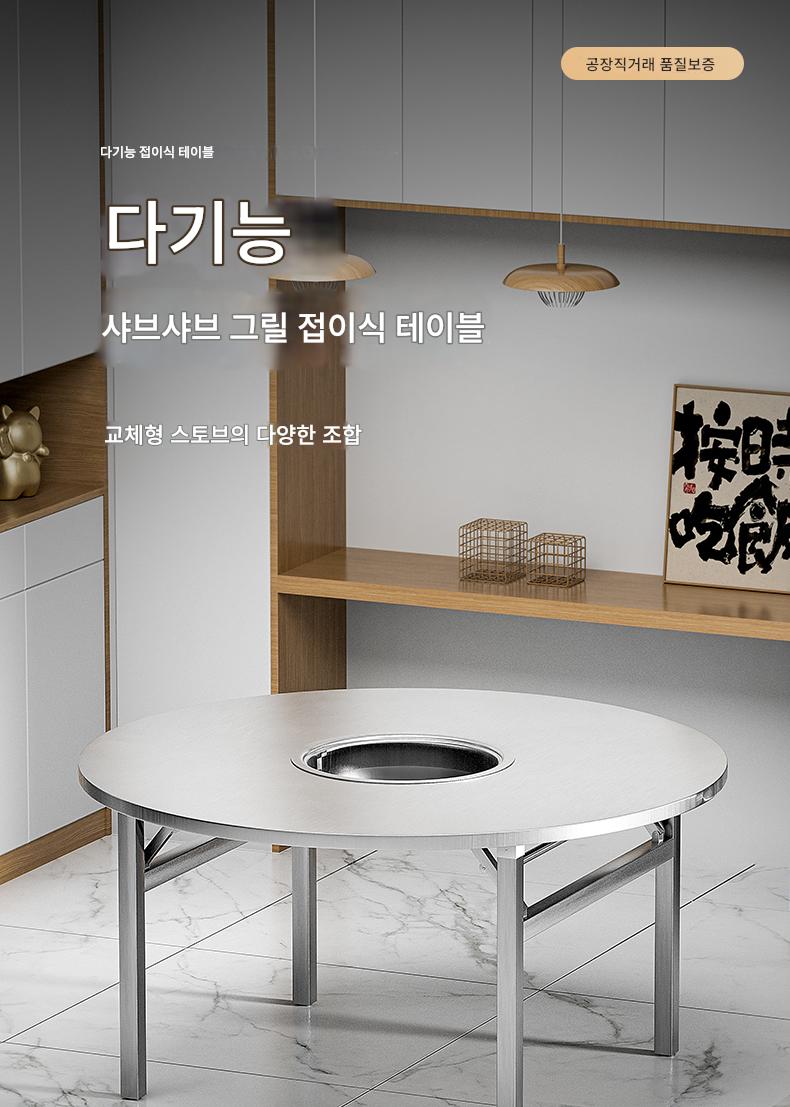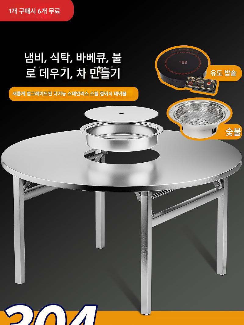 스테인리스 스틸 핫팟 유도 쿠커 통합 천공 원형 테이블 상업용 숯불 스토브 바베큐 가열 야외 바베큐 접이식 식탁
