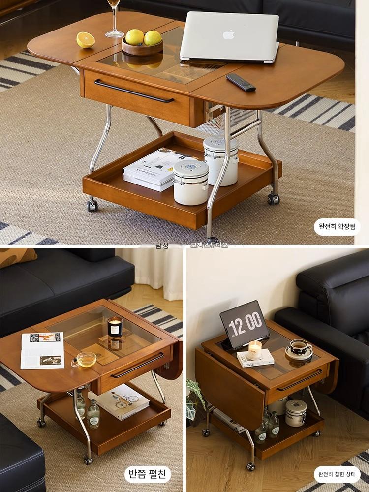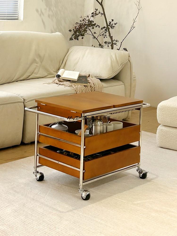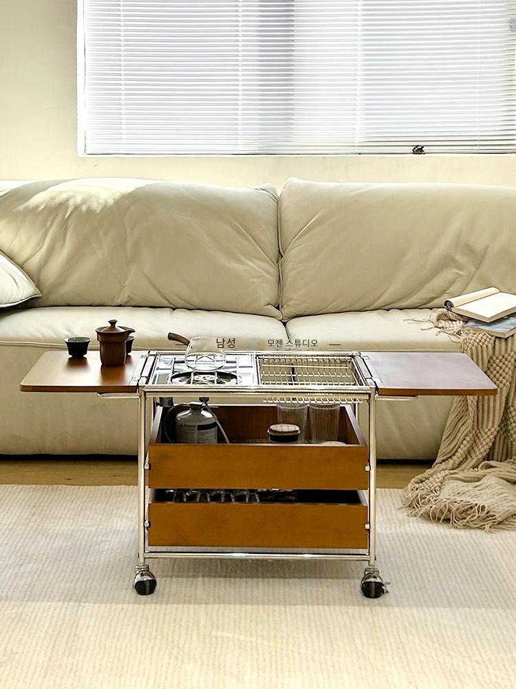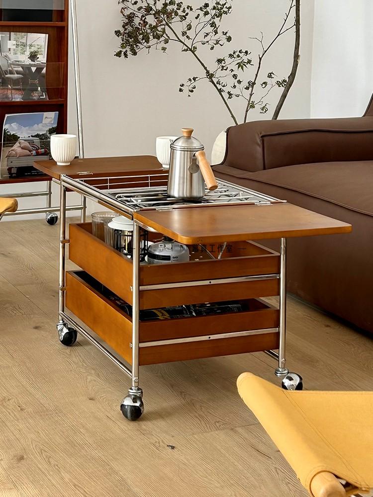 스토브 주변으로 움직일 수 있는 접이식 티테이블, 티테이블, 소파 사이드 테이블, 바퀴가 달린 작은 아파트, 이중 용도 발코니 티테이블 트롤리