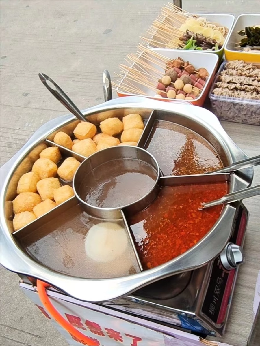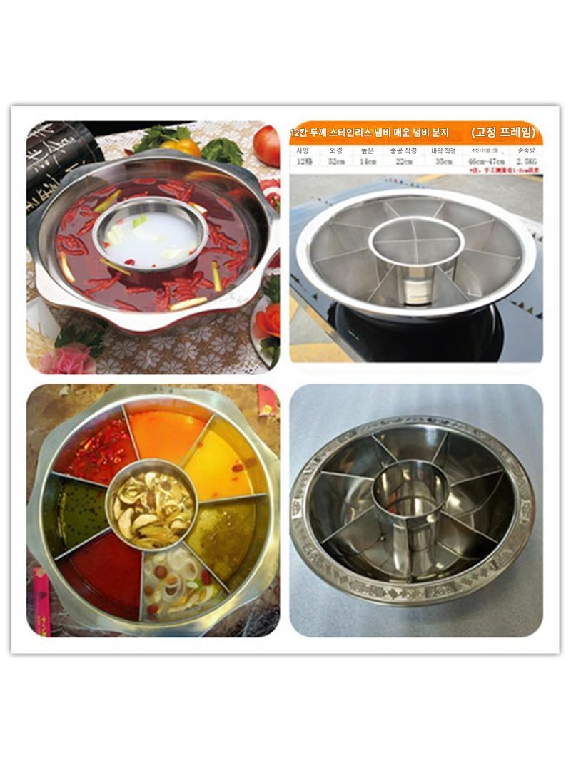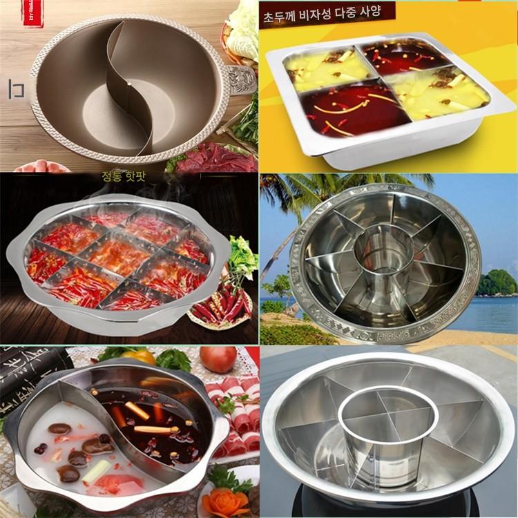 스톨 스테인리스 매운 냄비 대형 매운 냄비 야외 이중 맛 냄비 냄비 구각형 오뎅 냄비