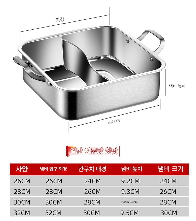 스틸라이스 304 스테인리스 더블 플레이버 냄비 핫팟 냄비 가정용 농축 인덕션 쿠커 스페셜 샤브샤브 핫팟 냄비 대용량