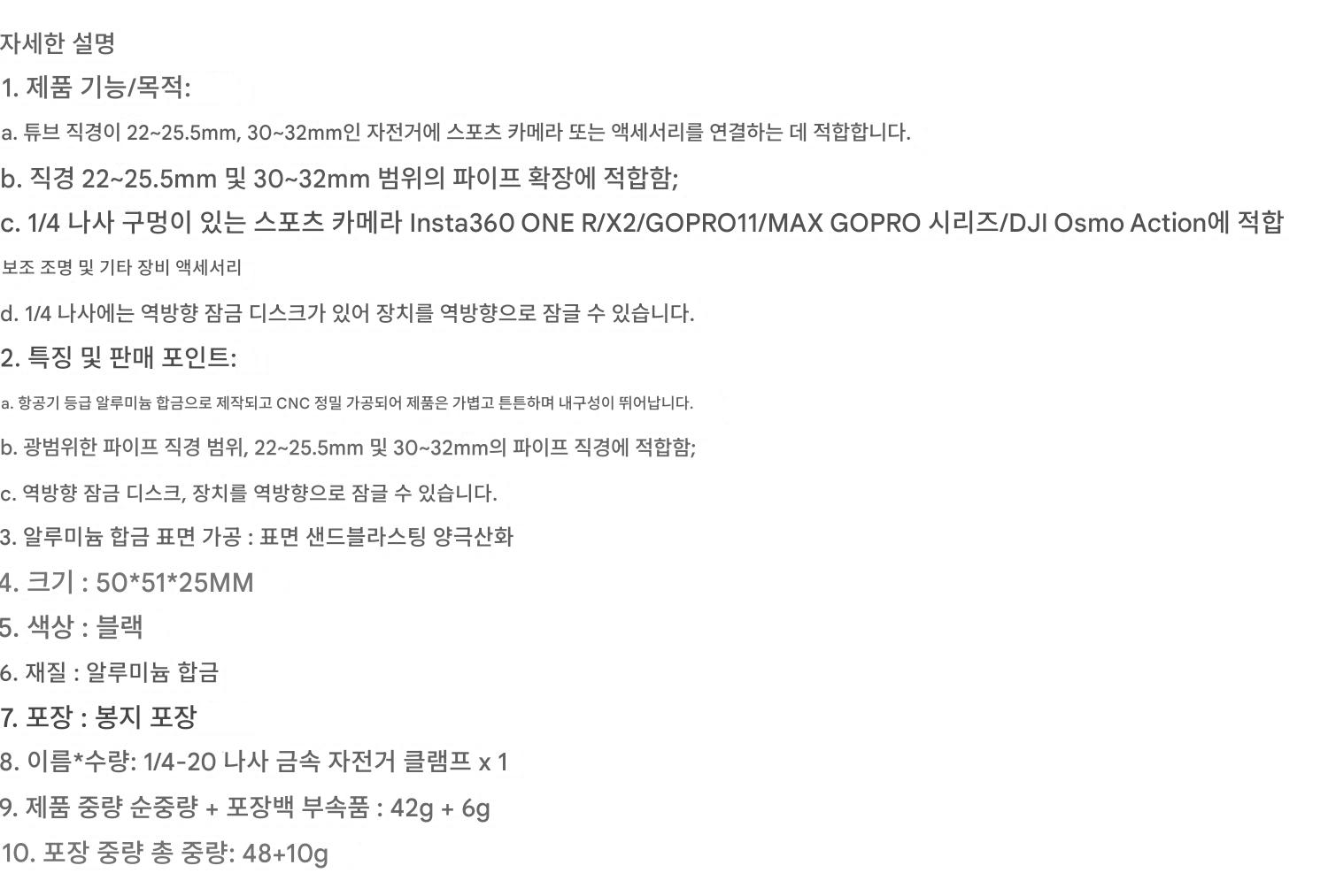 스포츠 카메라 사진 자전거 클램프 팬 헤드 자전거 클램프 브라켓 파이프 직경 22~32mm 핸들바 파이프 자전거 클램프에 적합