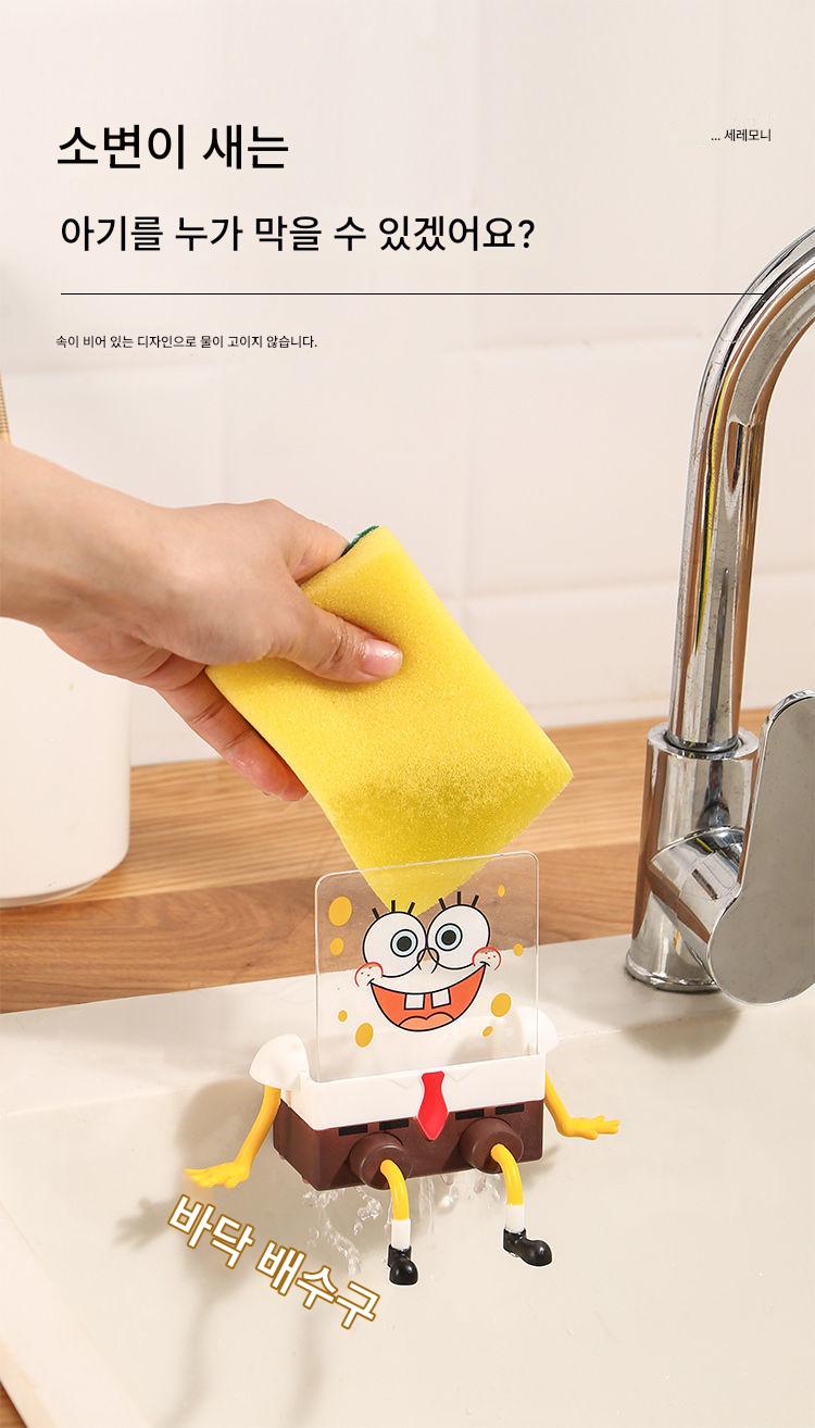 스폰지밥 네모바지 배수대 주방 설거지 세면대 설거지대 만화 냄비 세척 설거지대