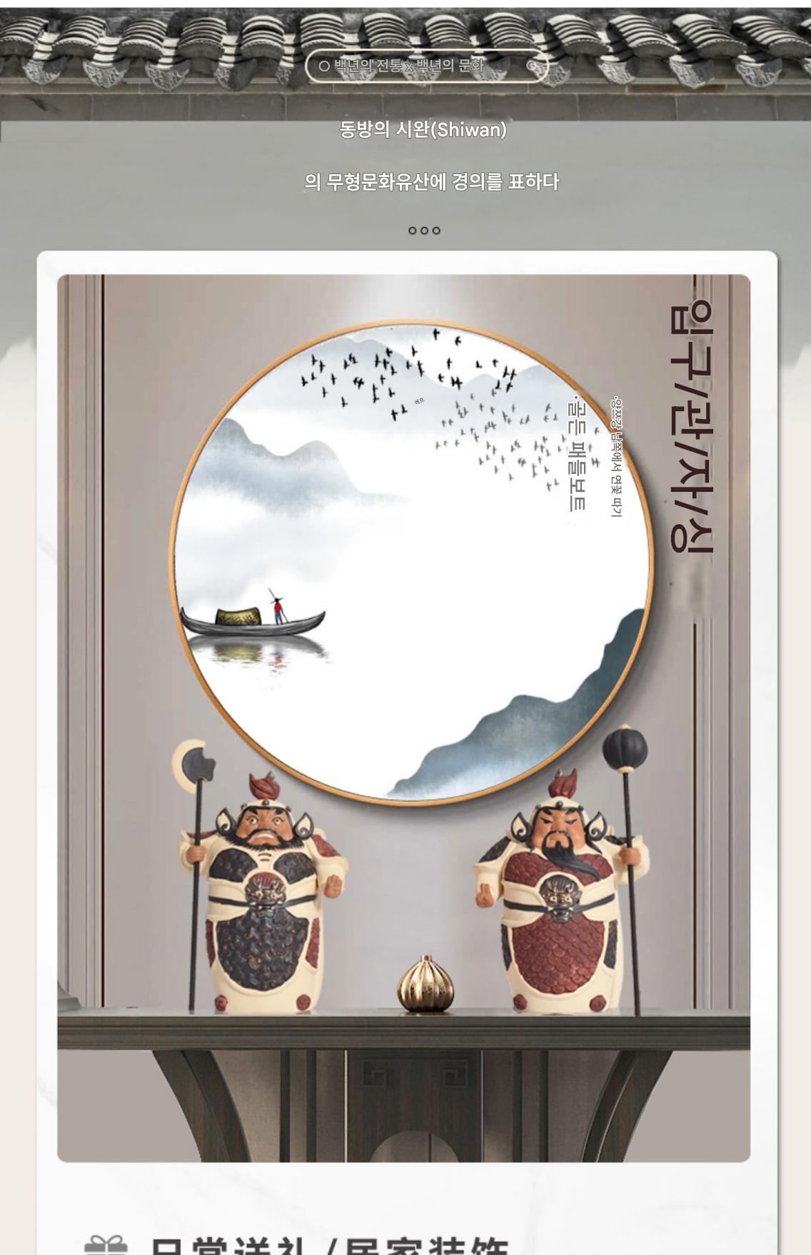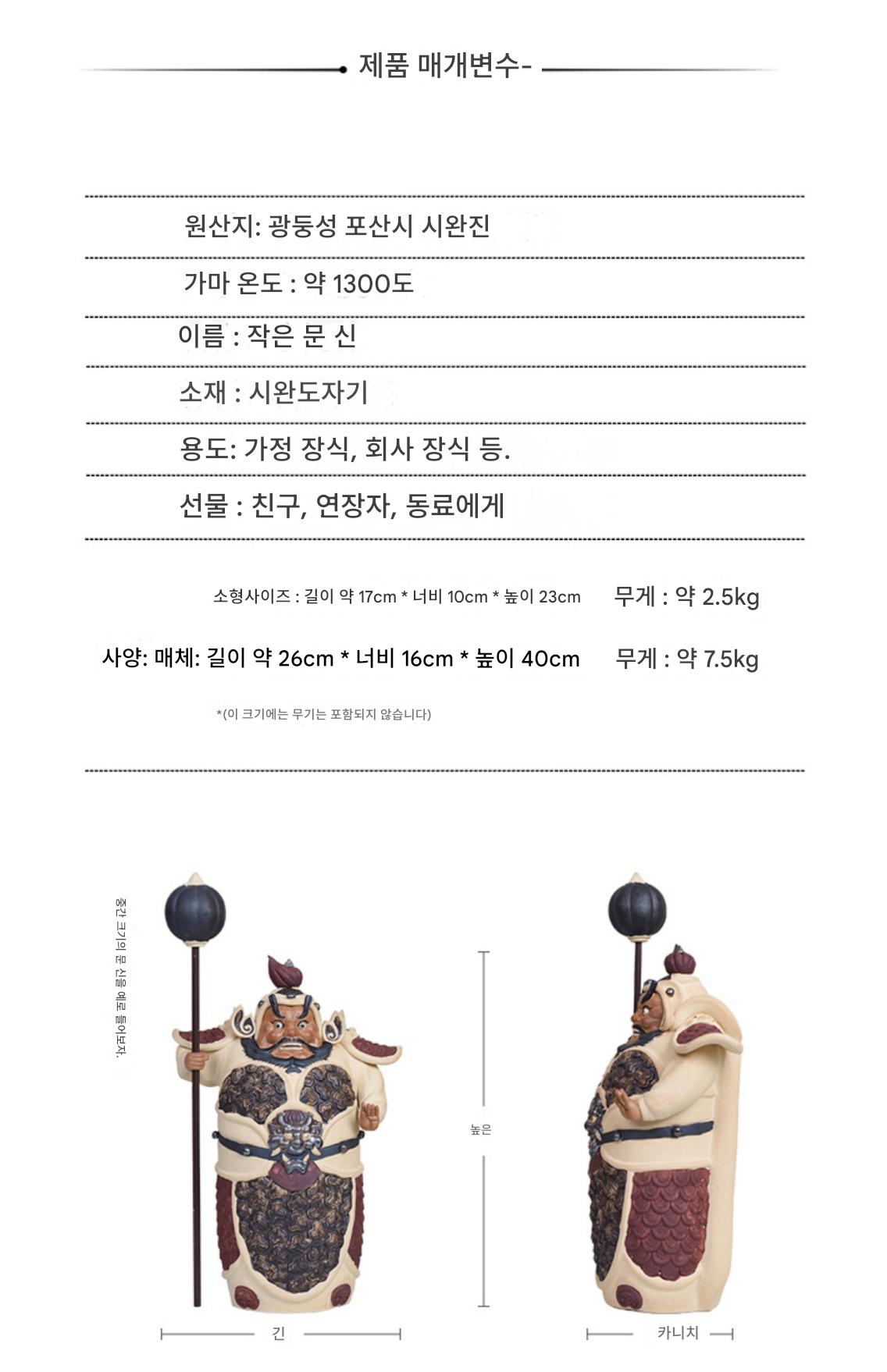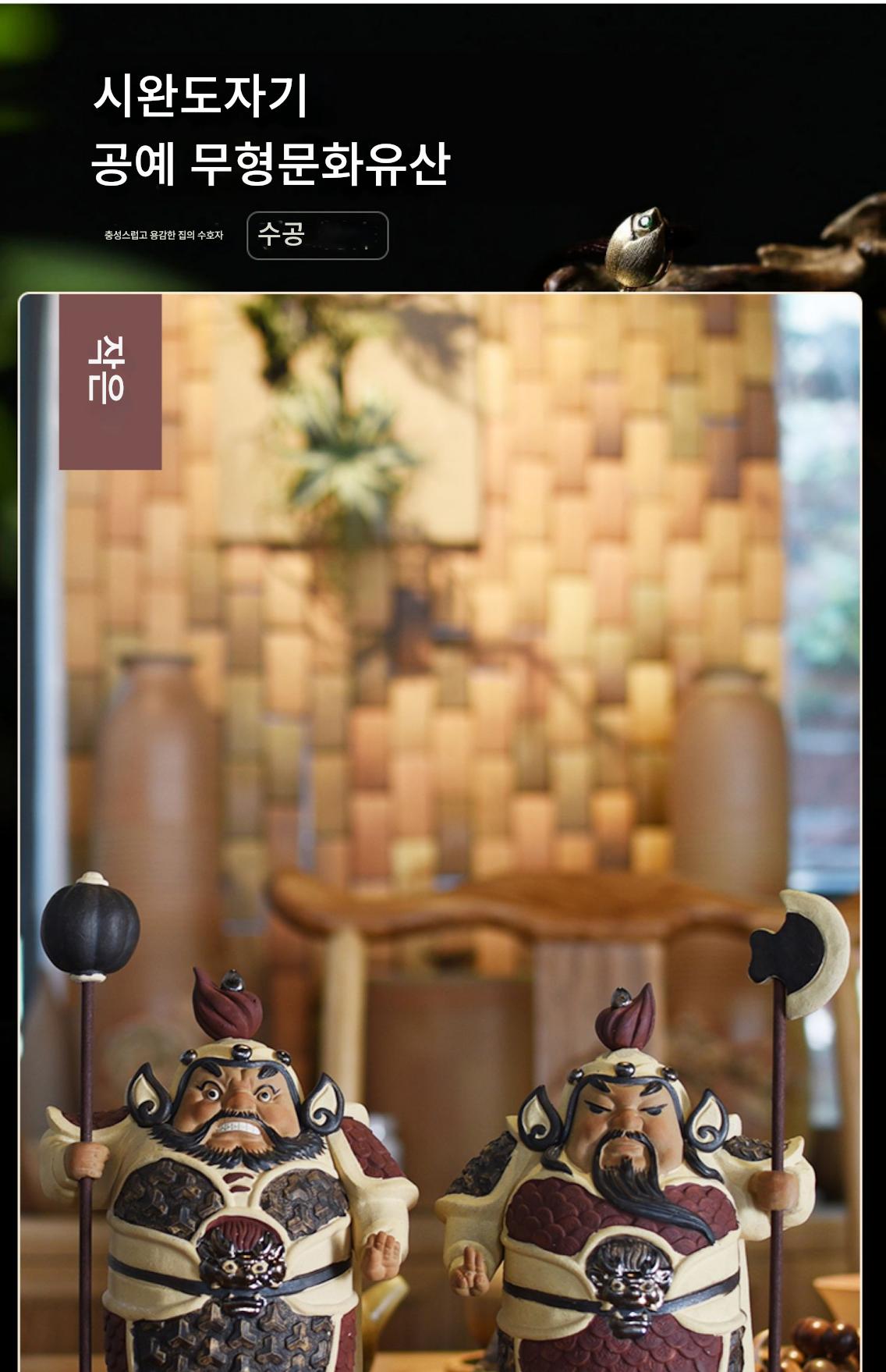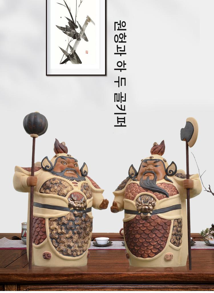 시완 도자기 인형 헝하 두 장군 문 신 집 거실 현관 한자 장식품 이사 선물