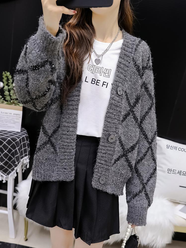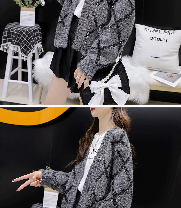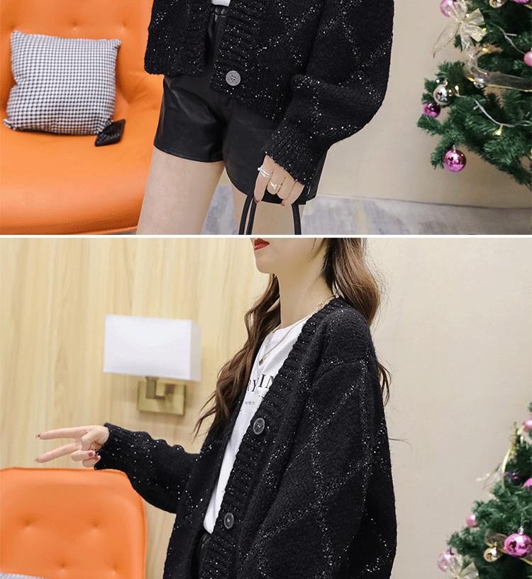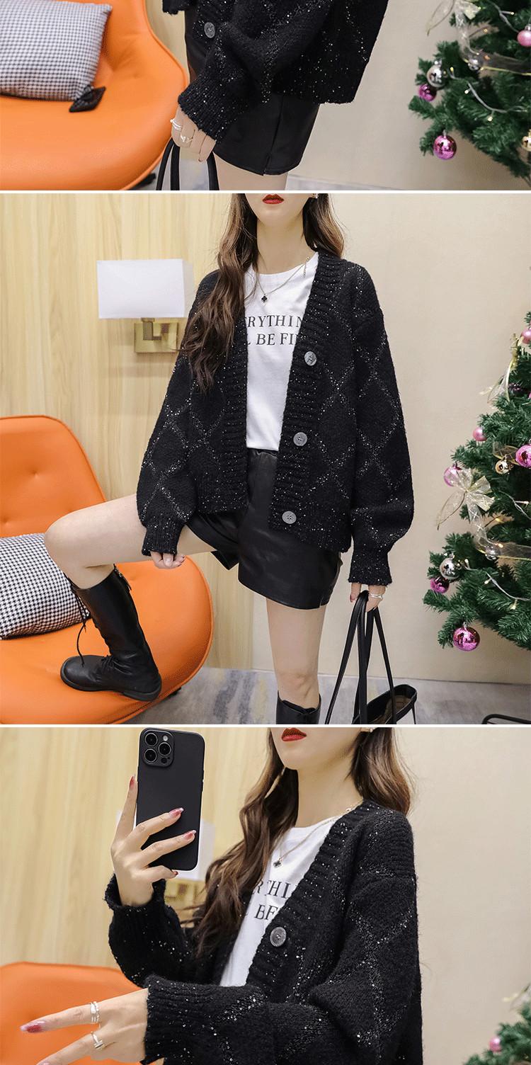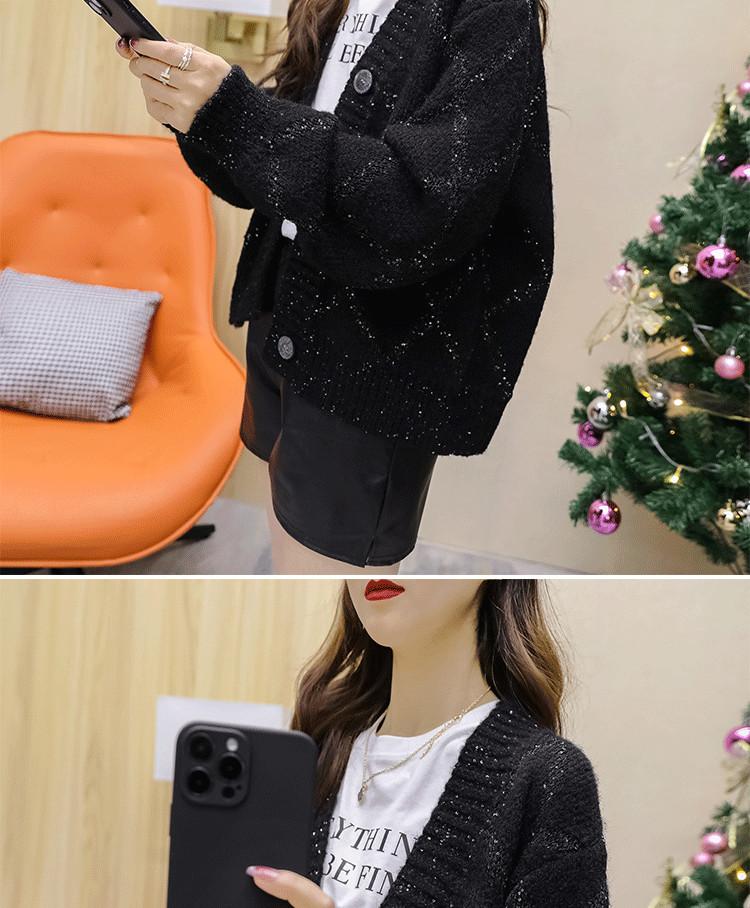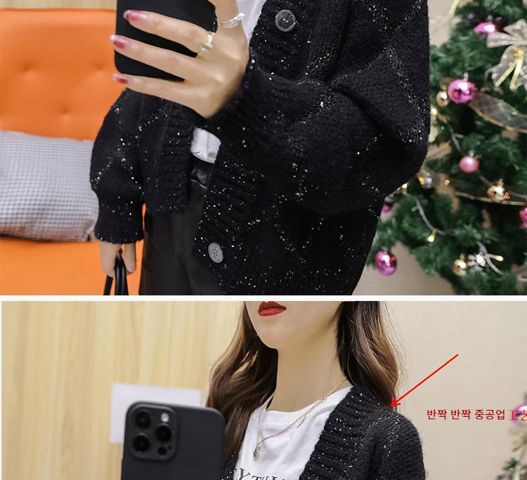 시원하고 세련된 두꺼운 스웨터 카디건 여성용 V넥 스팽글 헤비듀티 올매치 니트 스웨터 이너 코트 봄 가을 겨울