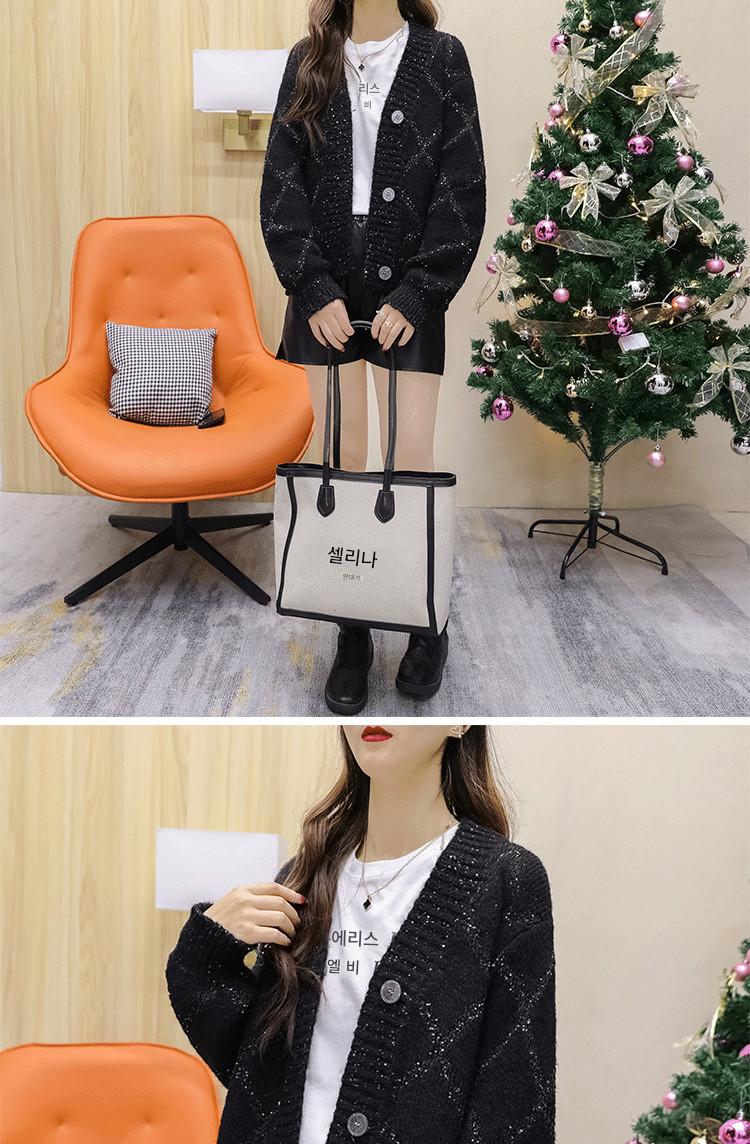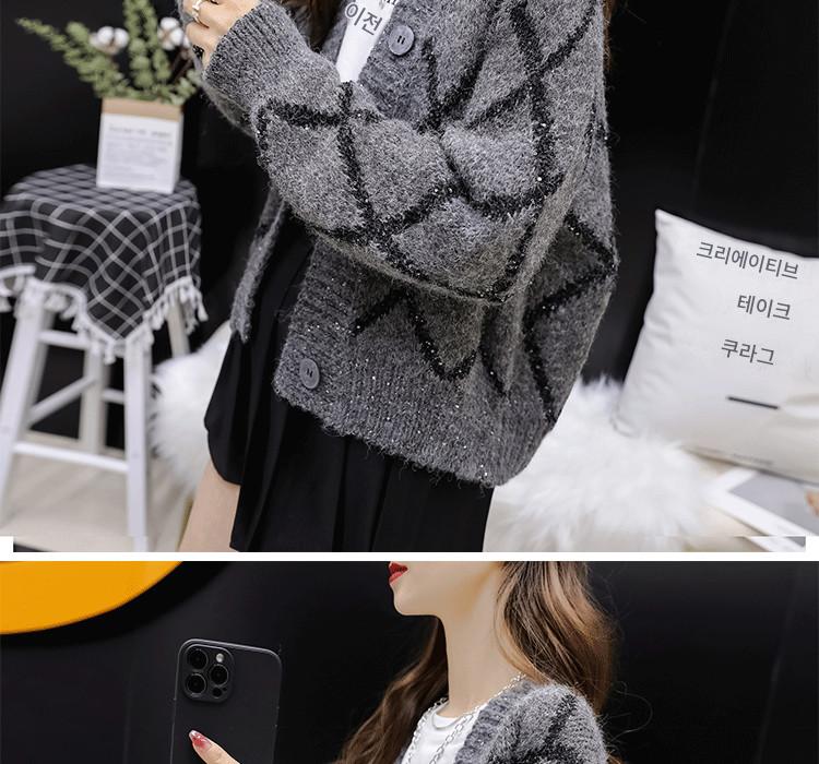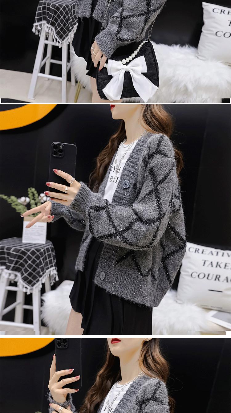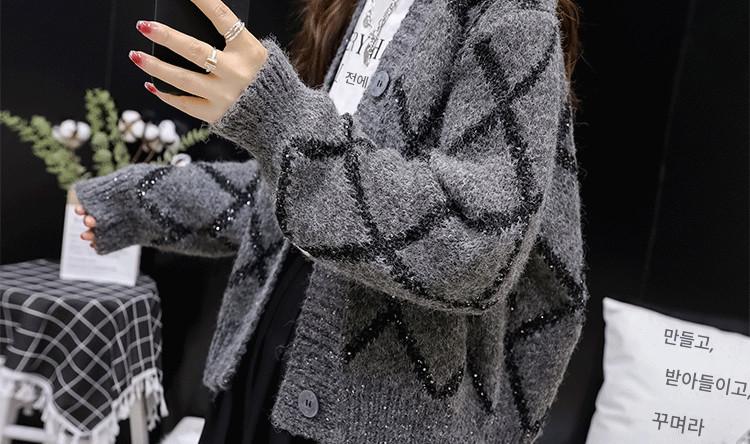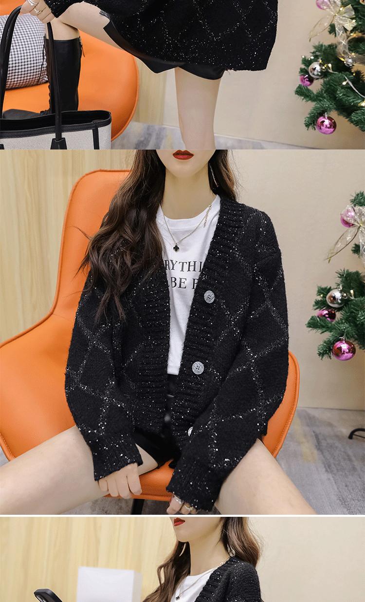 시원하고 세련된 두꺼운 스웨터 카디건 여성용 V넥 스팽글 헤비듀티 올매치 니트 스웨터 이너 코트 봄 가을 겨울