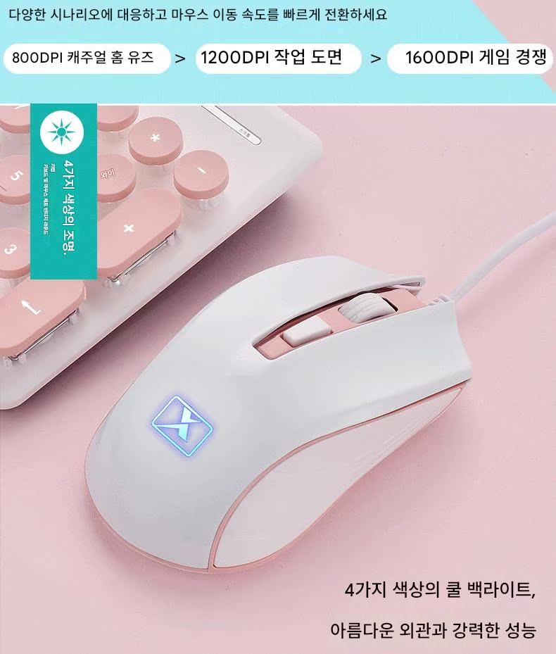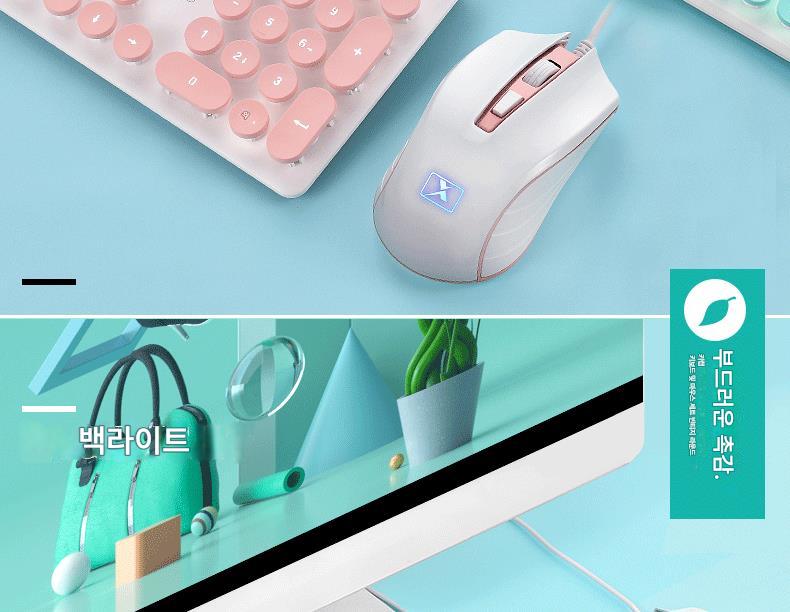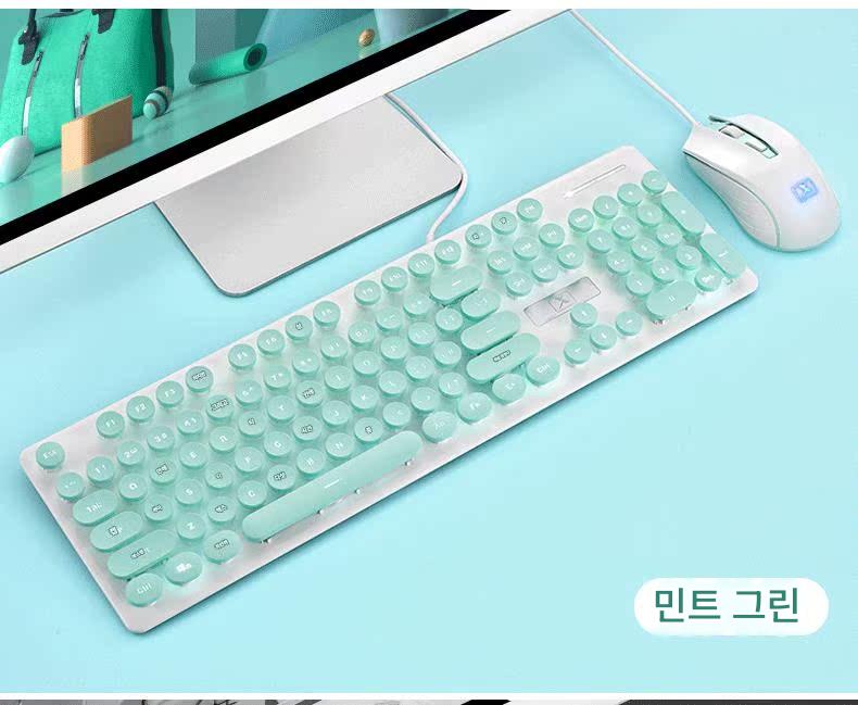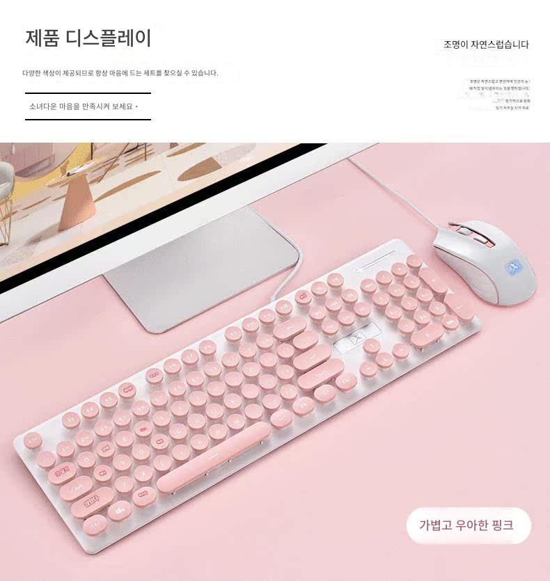 신맹 기계식 느낌 키보드 마우스 세트 유선 게임 사무실 홈 비즈니스 여자 노트북 데스크탑