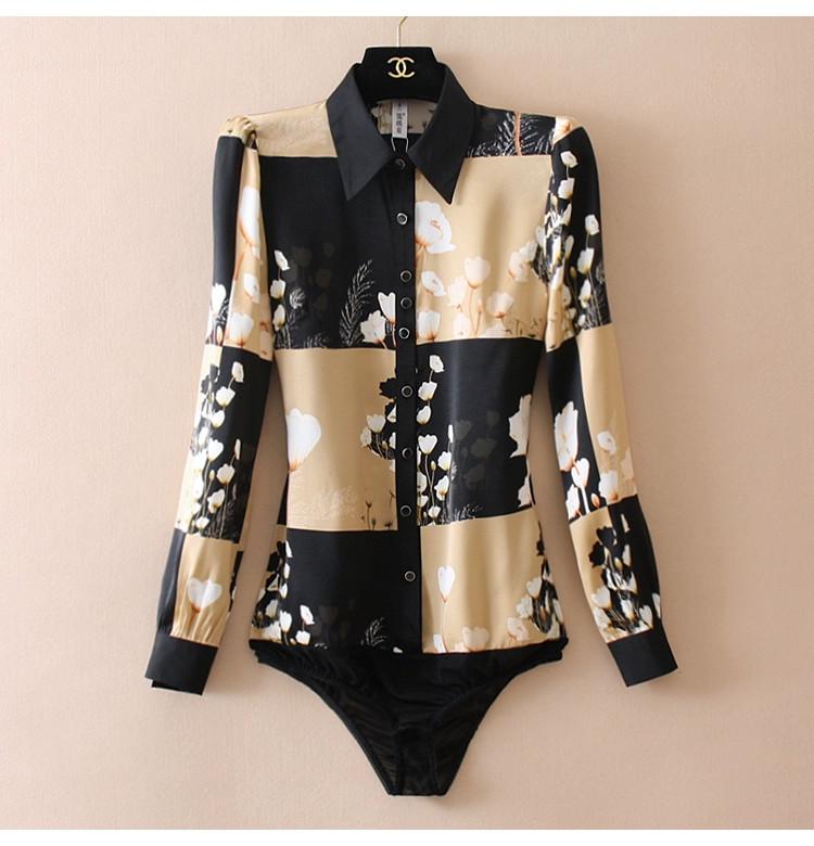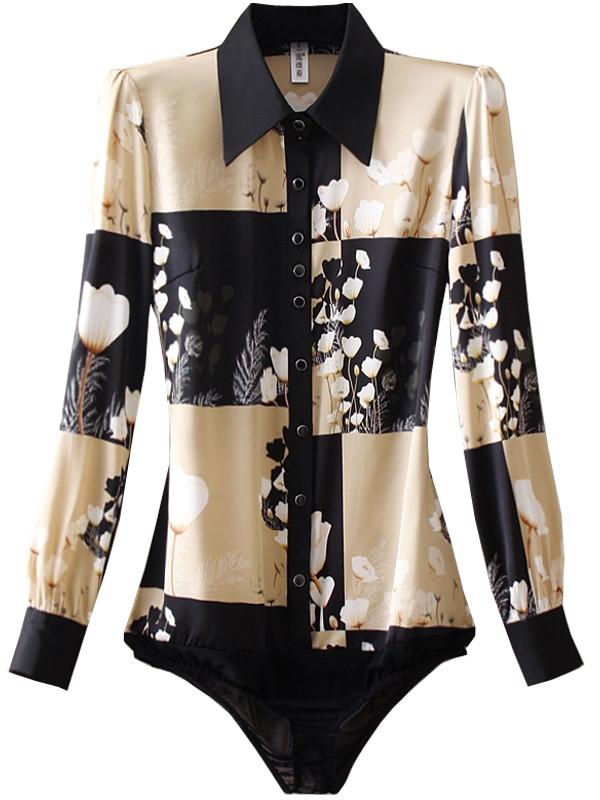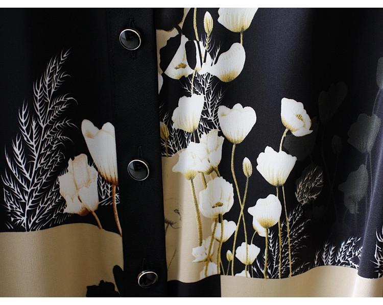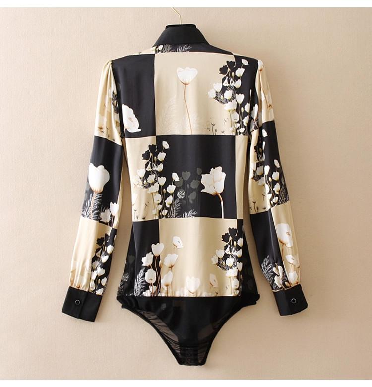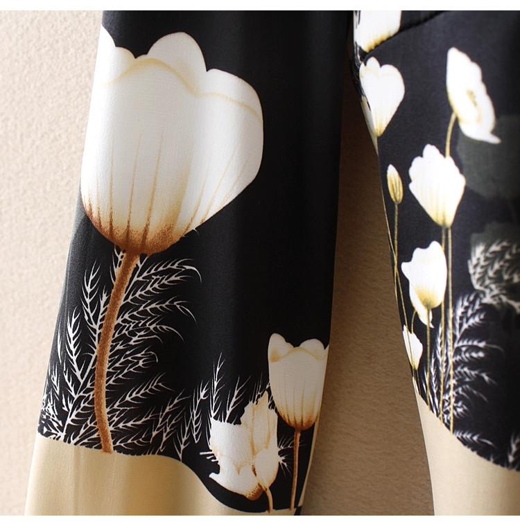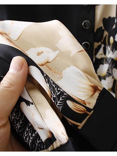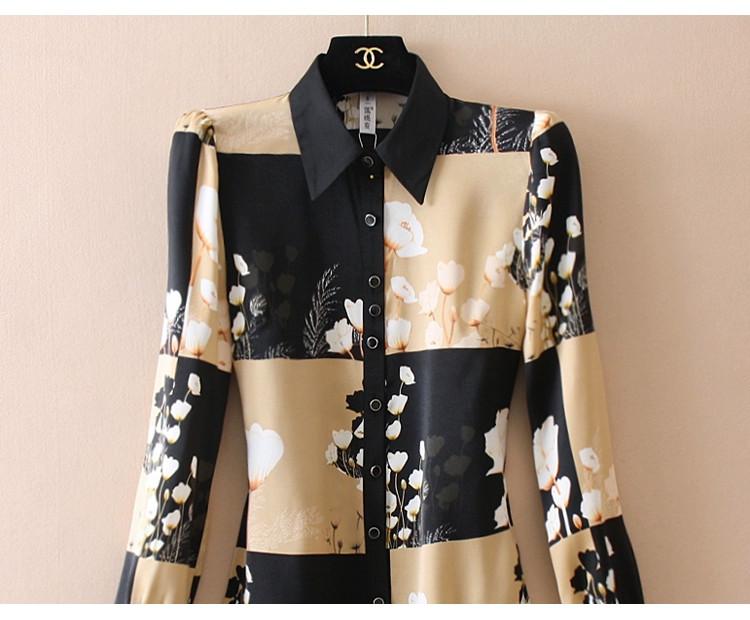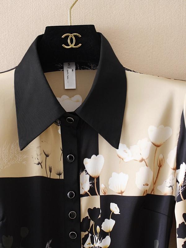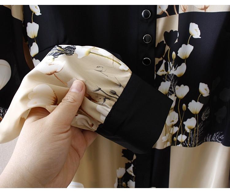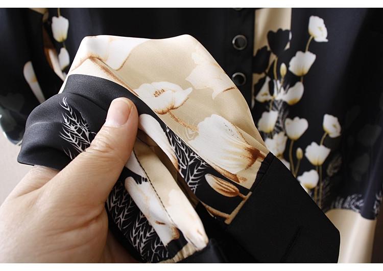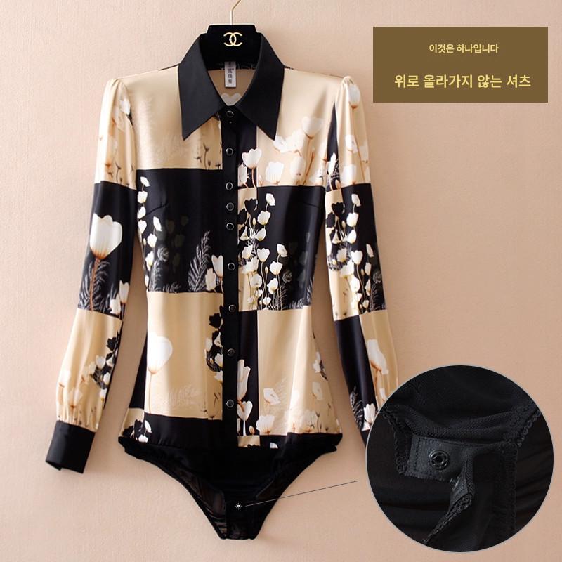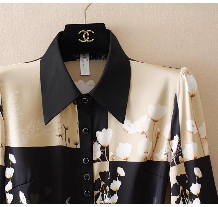 신축성 있는 새틴 안티실크 유럽 및 미국 꽃무늬 쉬폰 탑 셔츠 노출 방지 원피스 고급 셔츠