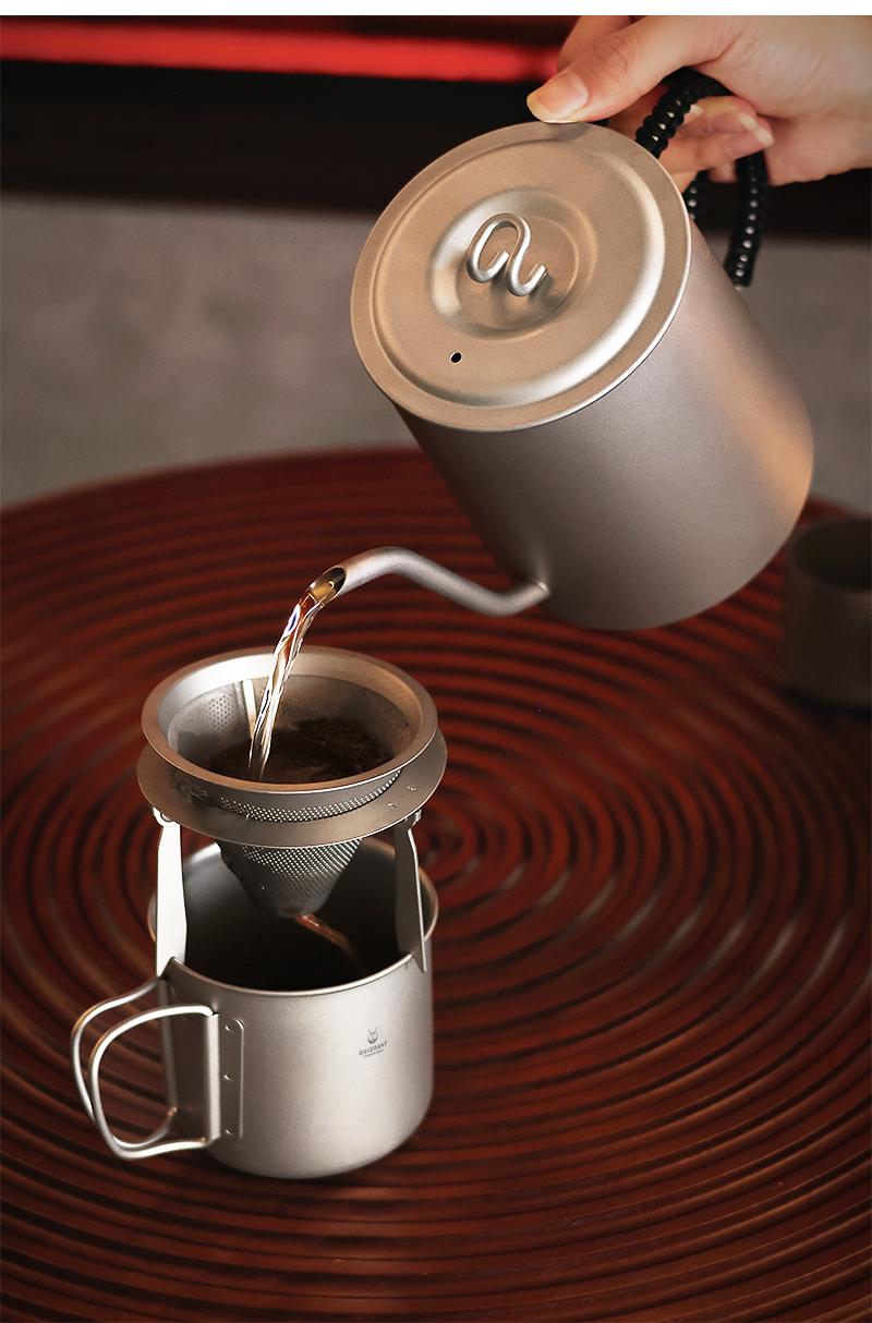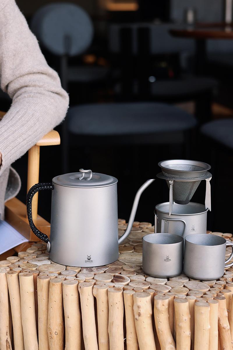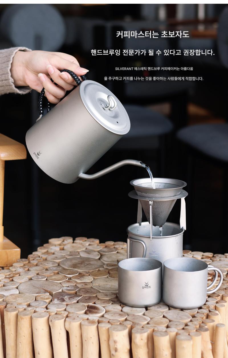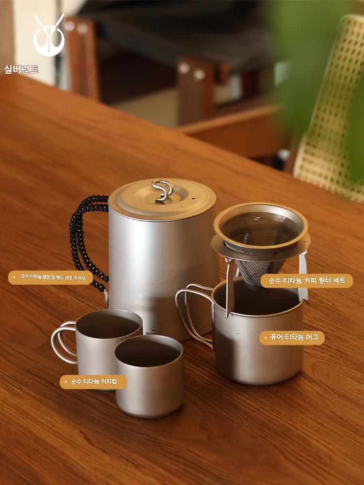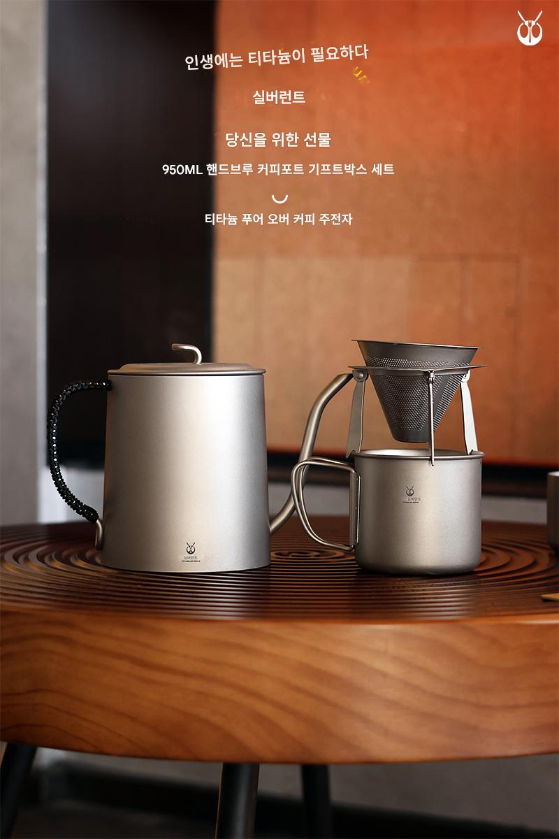 실버 앤트 퓨어 티타늄 커피 포트 컵 세트 야외 핸드 포어드 가정용 드립 필터 브라켓 롱 마우스 950ML