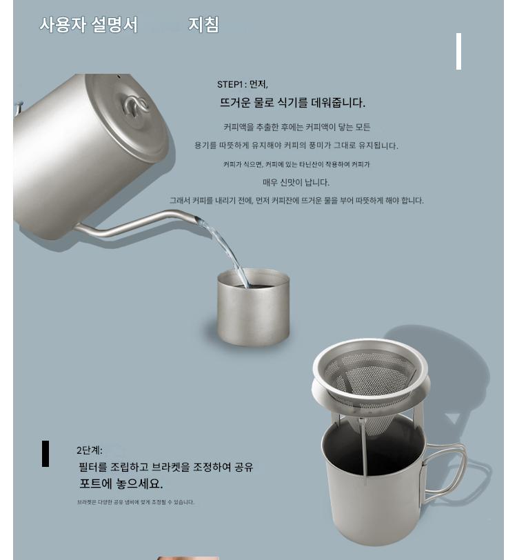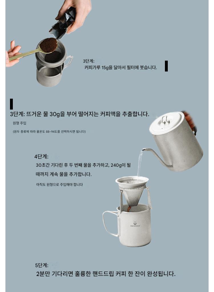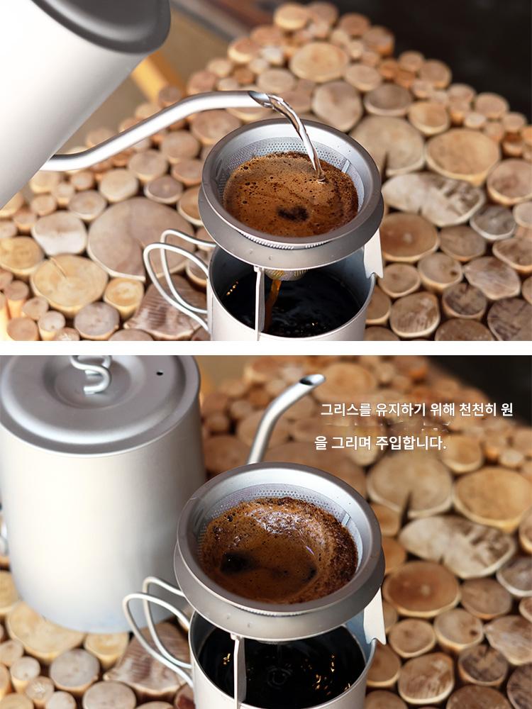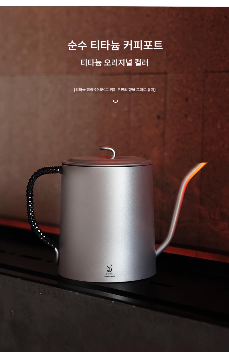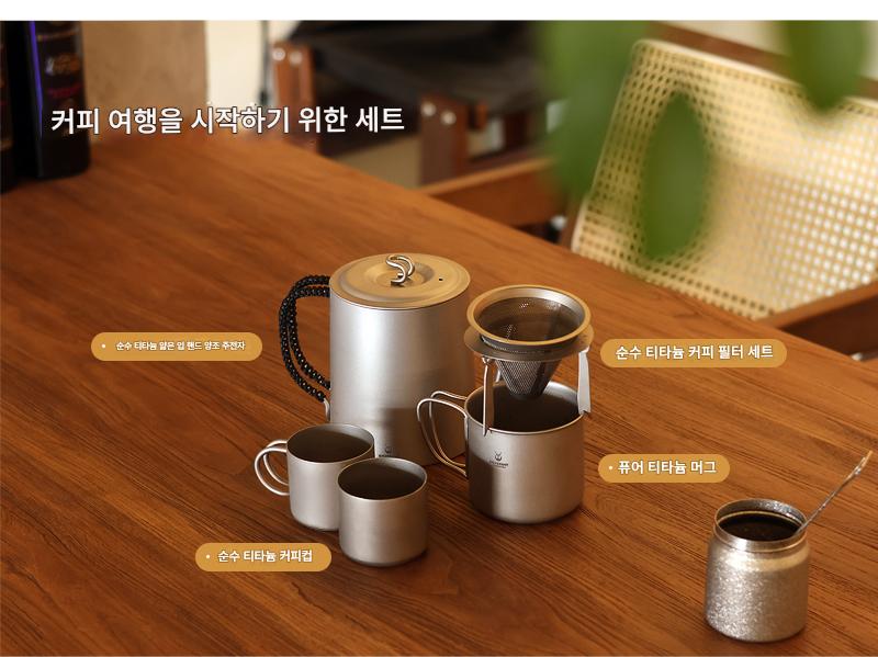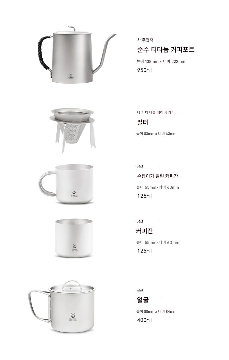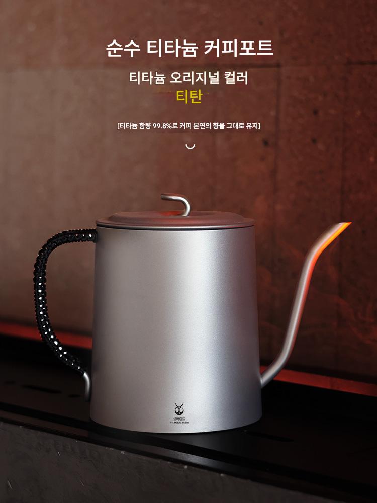 실버 앤트 퓨어 티타늄 커피 포트 컵 세트 야외 핸드 포어드 가정용 드립 필터 브라켓 롱 마우스 950ML