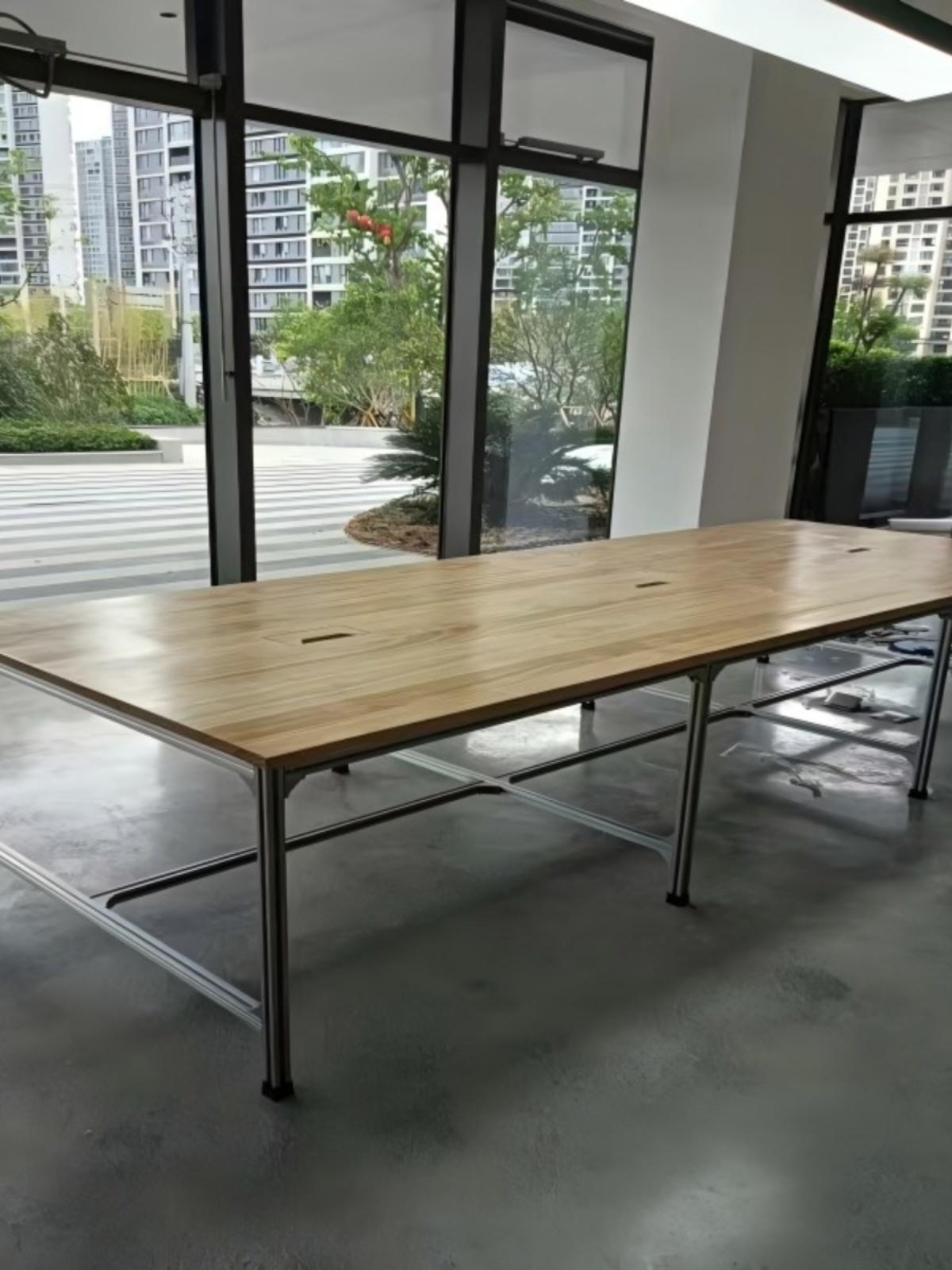 심플한 알루미늄 자작나무 작업대 협상 테이블 상업용 책상 컴퓨터 테이블 사무실 긴 테이블