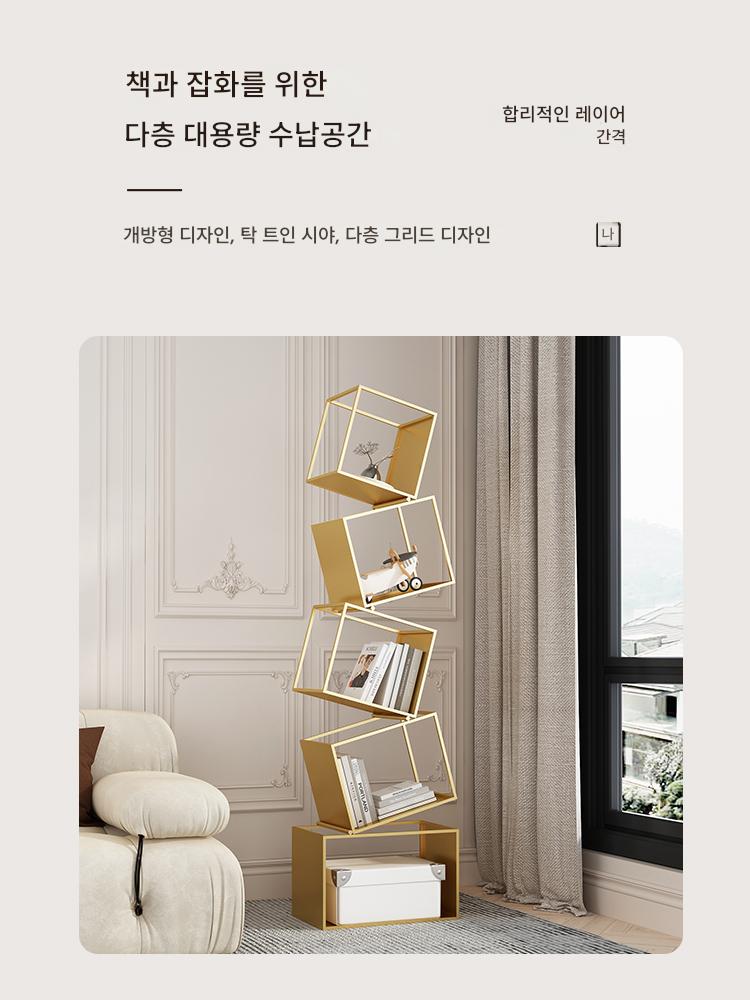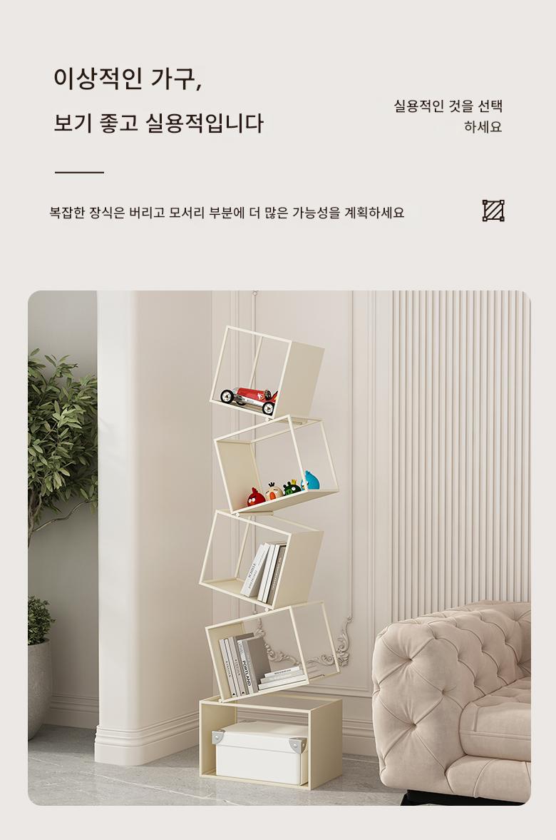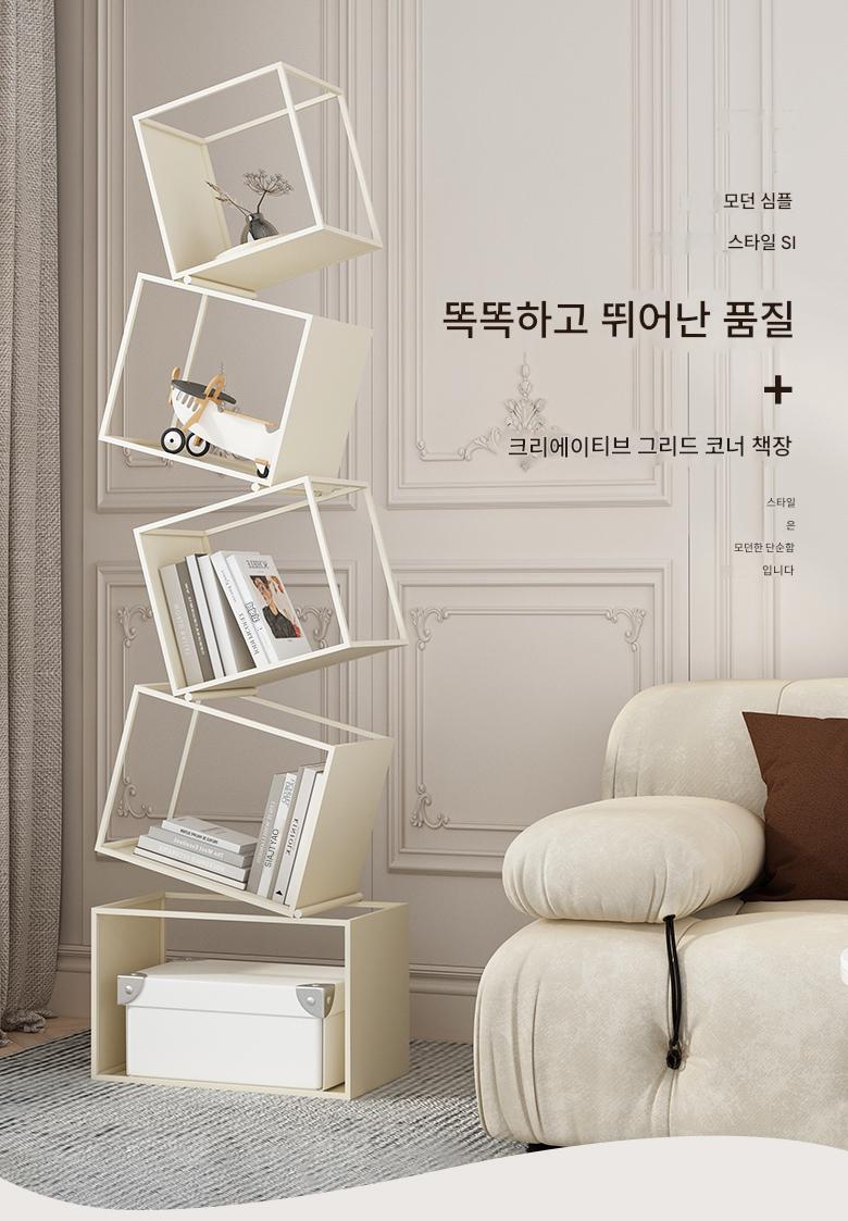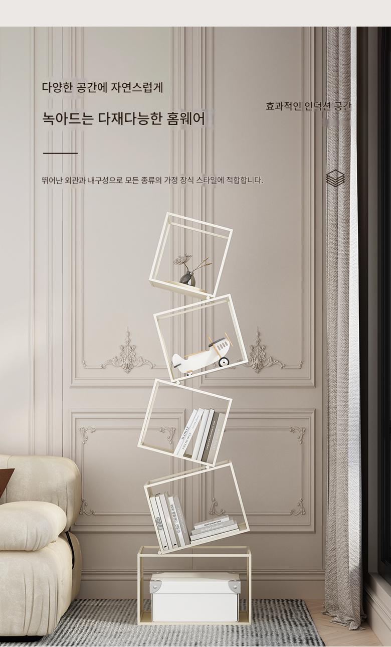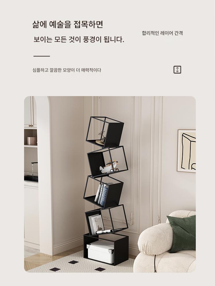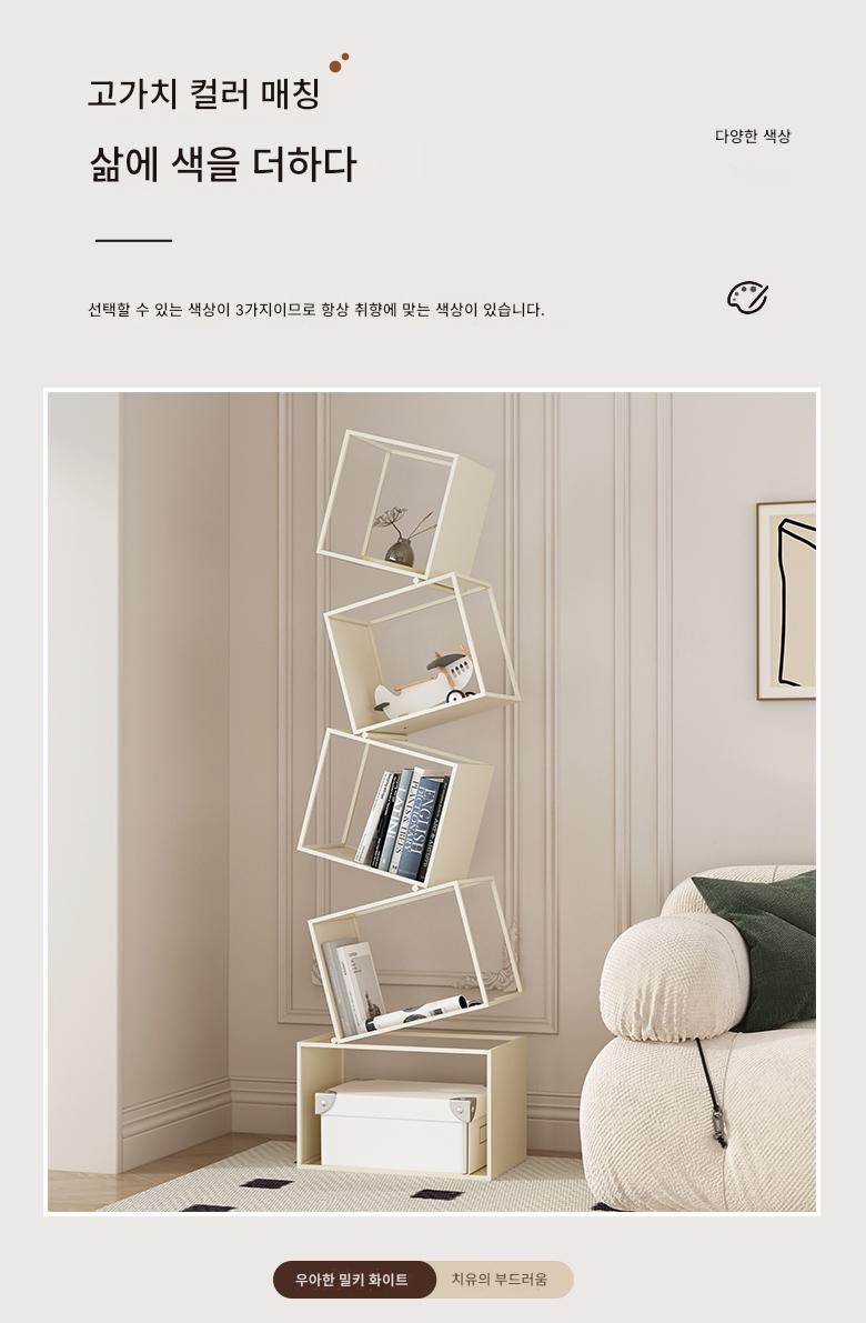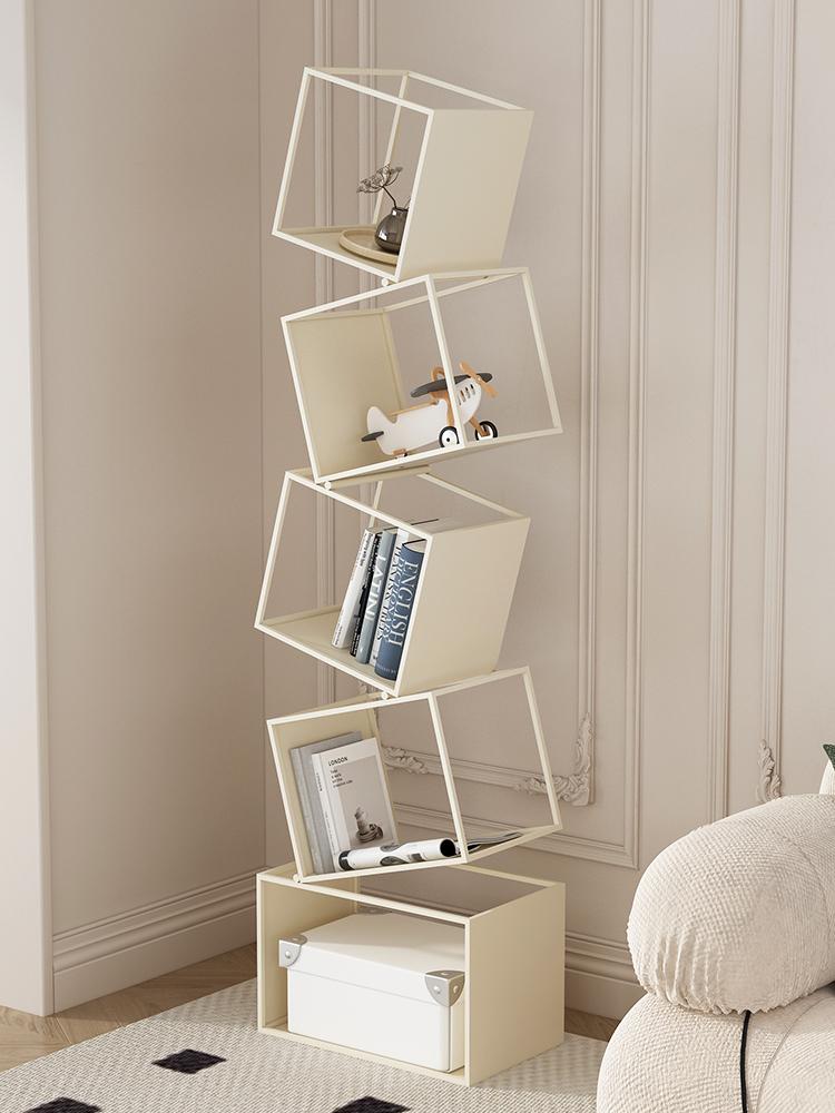 심플한 크림 스타일 수직 책장 바닥 선반 보관 선반 거실 선반 철제 디스플레이 랙 벽면에 통합