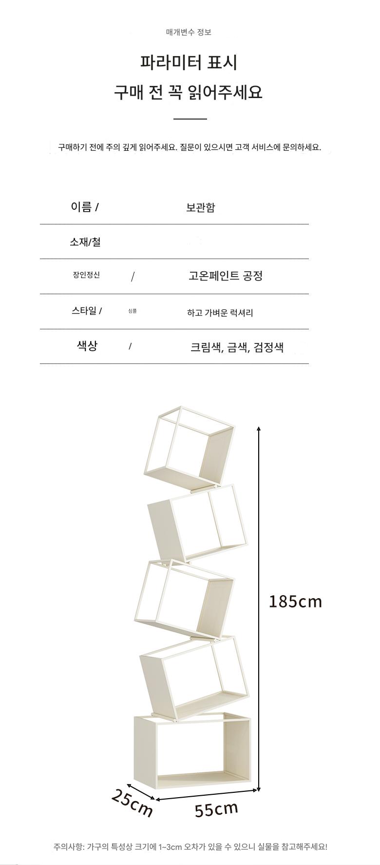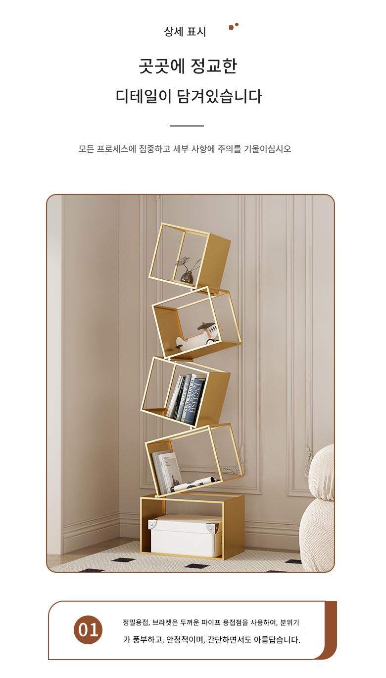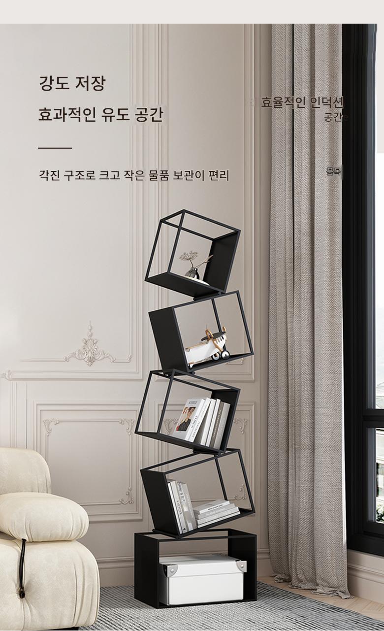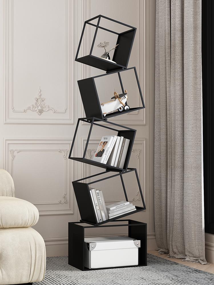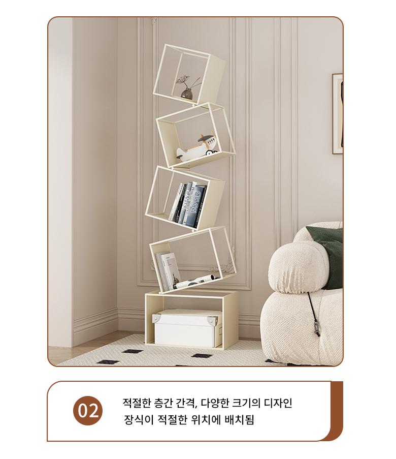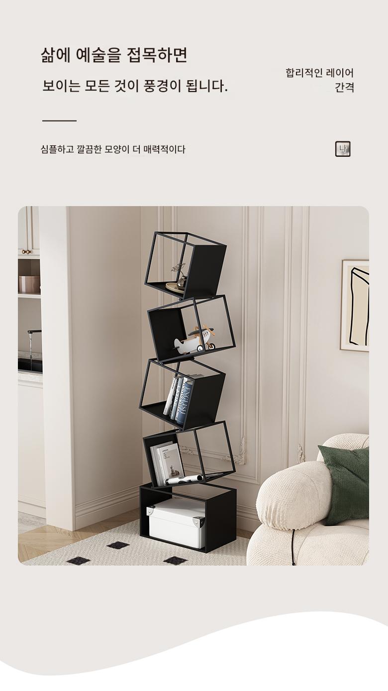 심플한 크림 스타일 수직 책장 바닥 선반 보관 선반 거실 선반 철제 디스플레이 랙 벽면에 통합