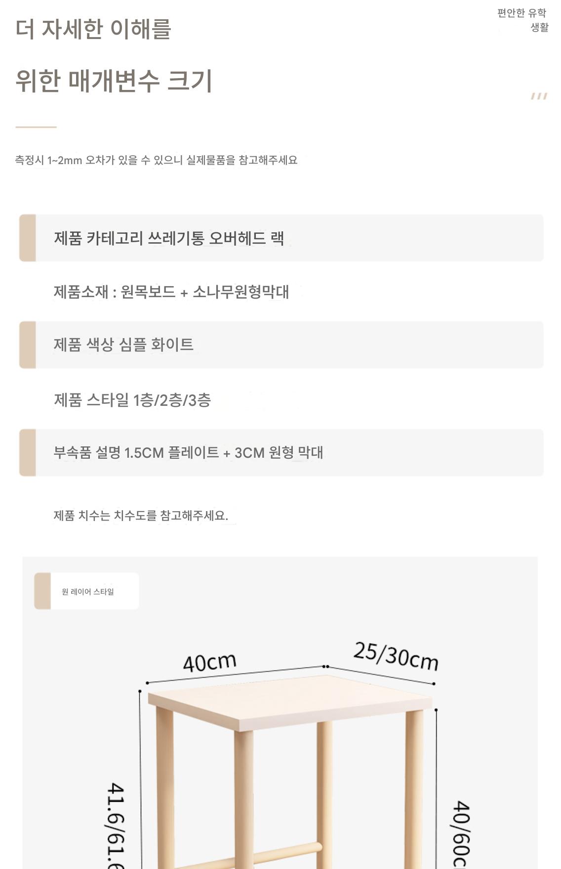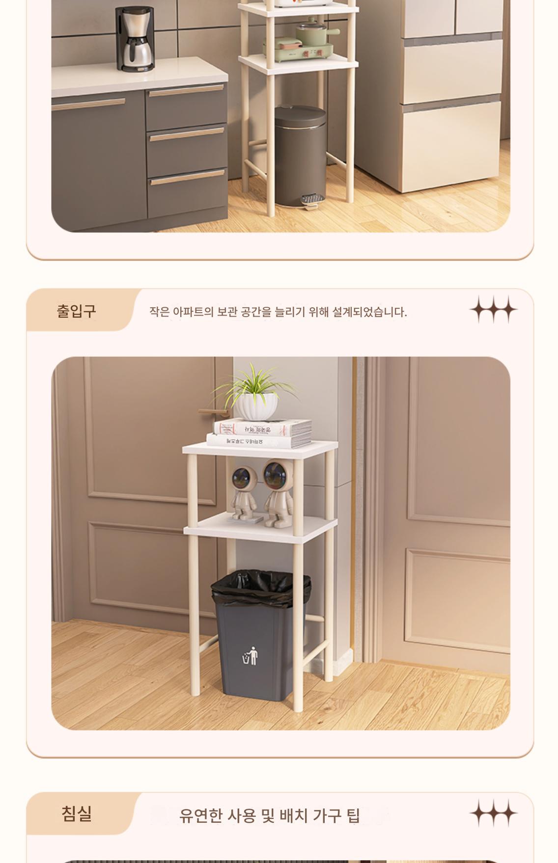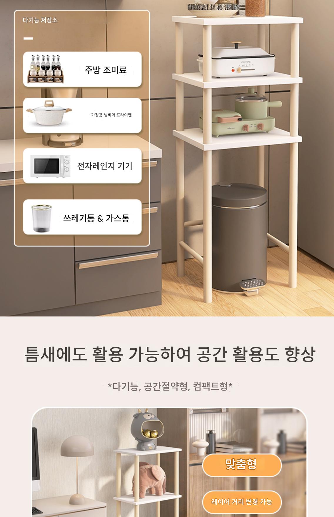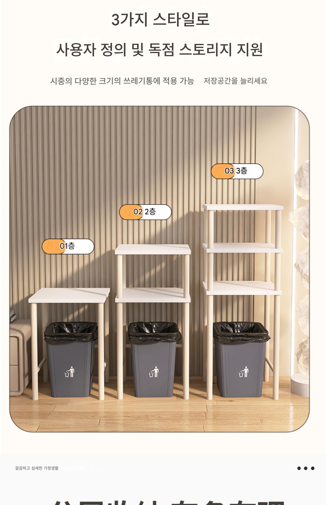 쓰레기통 선반 주방 틈새 바닥 다층 보관 선반 거실 하이풋 버킷 물 저장 선반