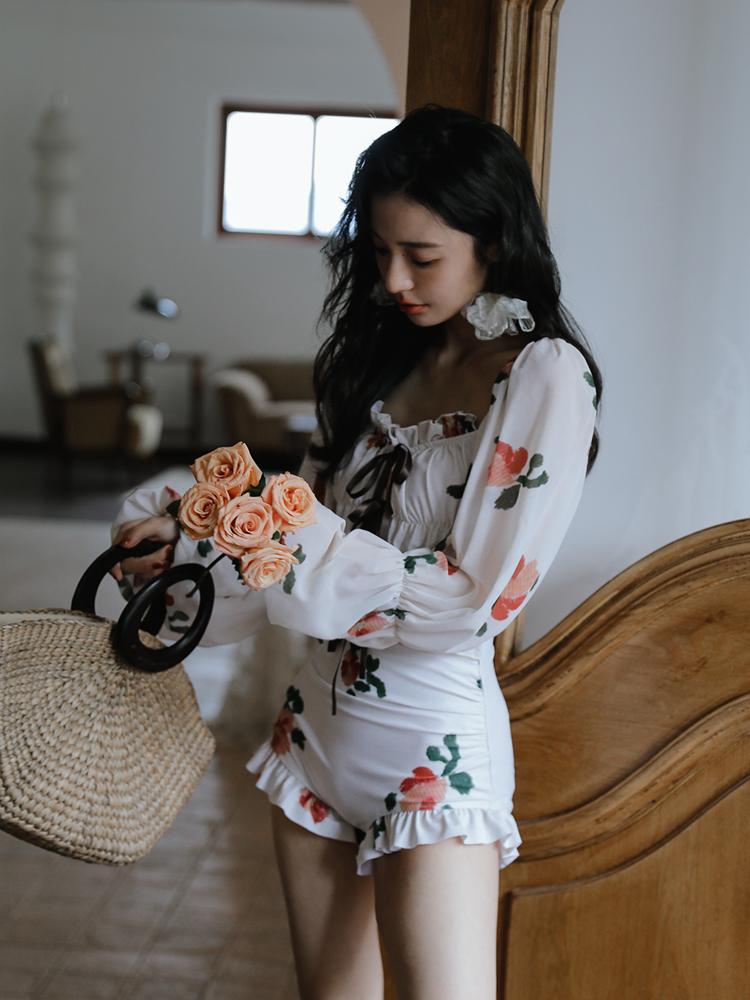 아레조안 레트로 수영복 여성 원피스 등 없는 섹시 삼각형 긴팔 2025년 신상품 싼야 해변 휴가
