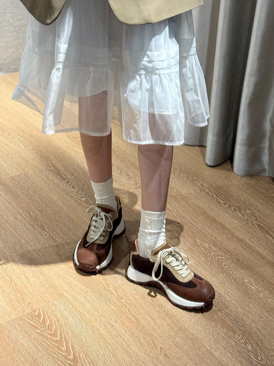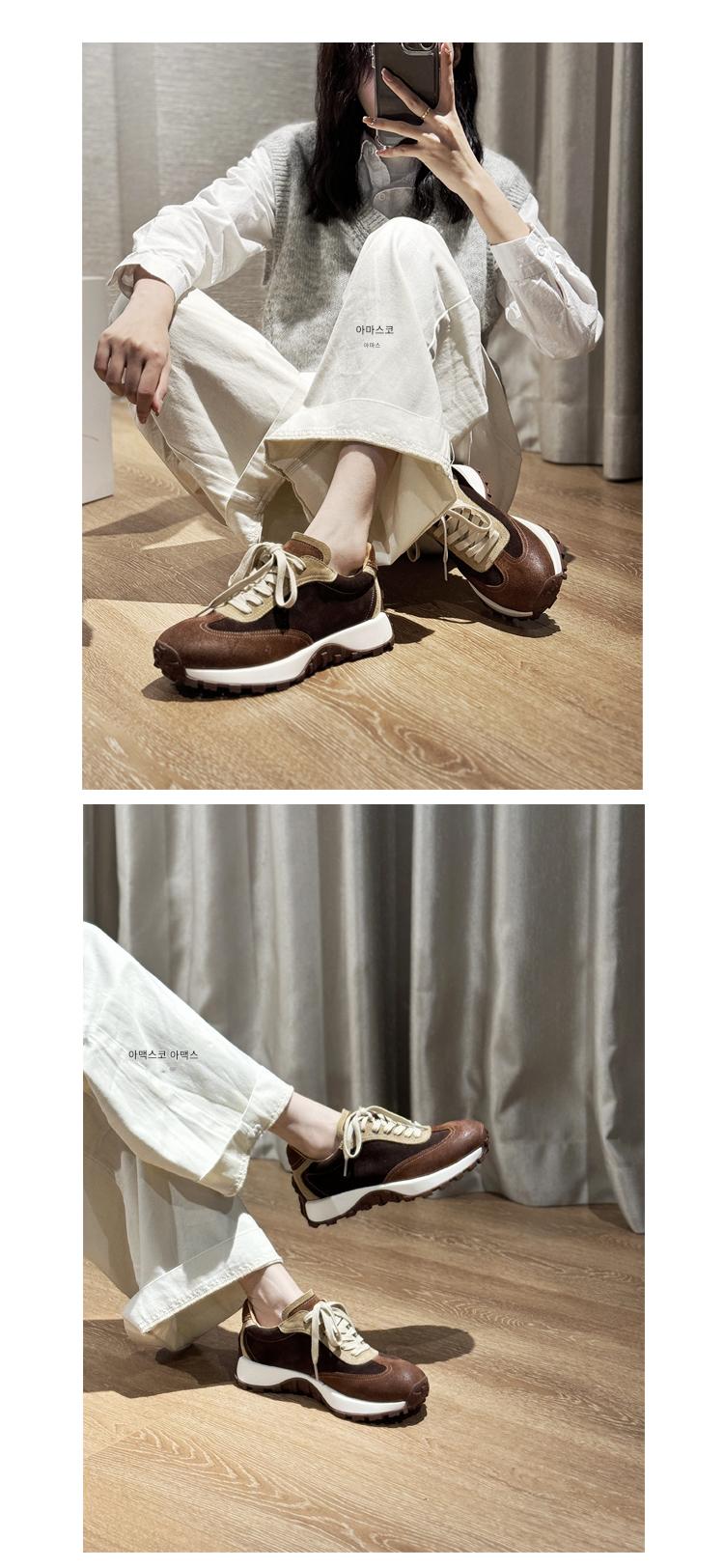 아르마스 정품 가죽 포레스트 슈즈 여성 봄 가을 메일라드 두꺼운 밑창 플랫 슈즈 올매치 컬러 매칭 스포츠 캐주얼 슈즈