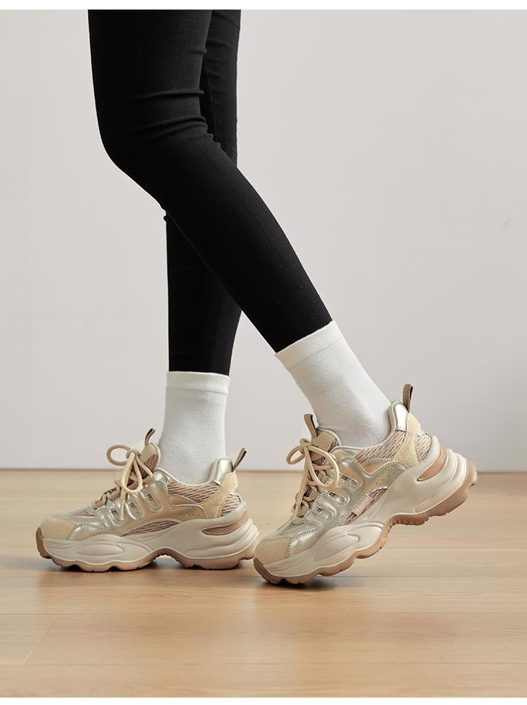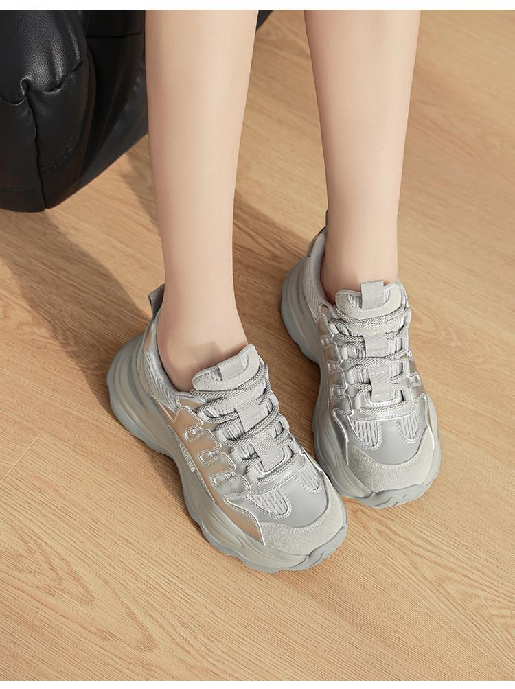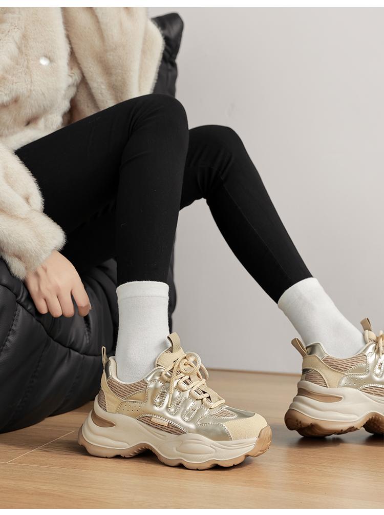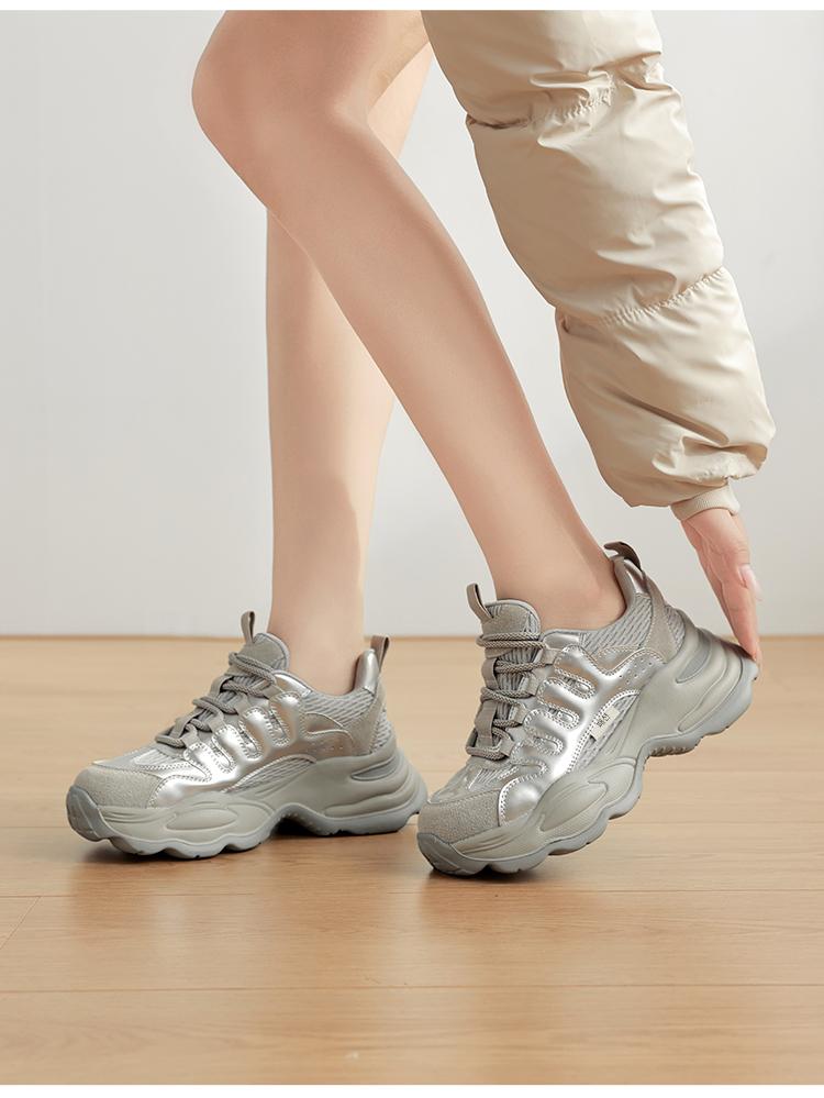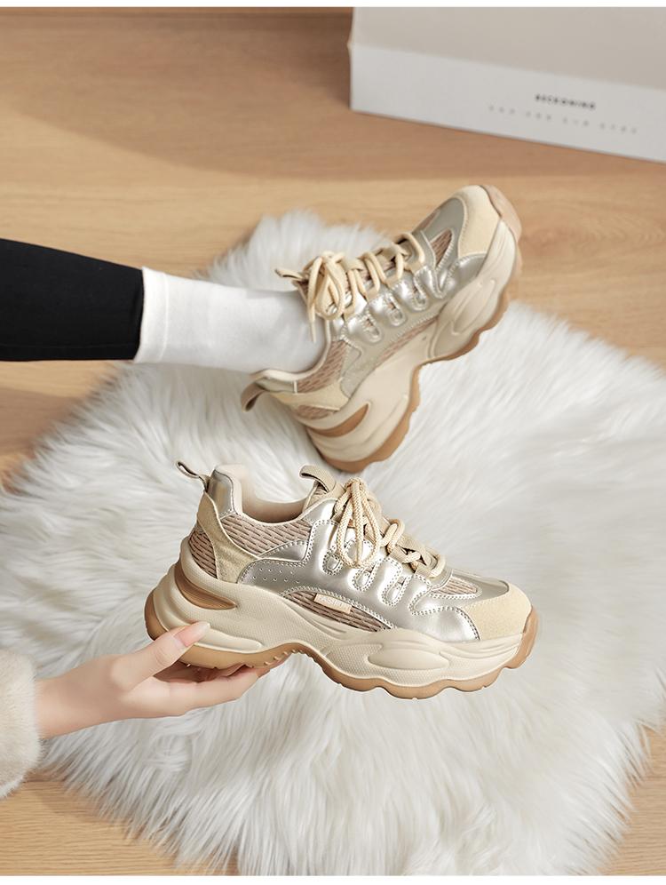 아빠신발 내부 키높이 여성화 2025 봄 신상 두꺼운 밑창 스포츠화 인기 키높이 신발 와이드 레그 팬츠