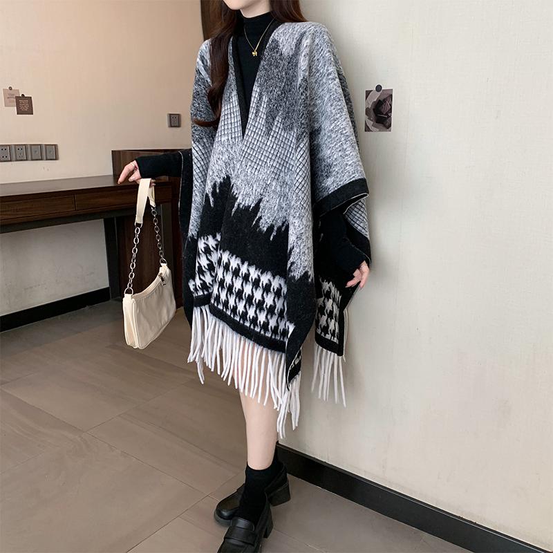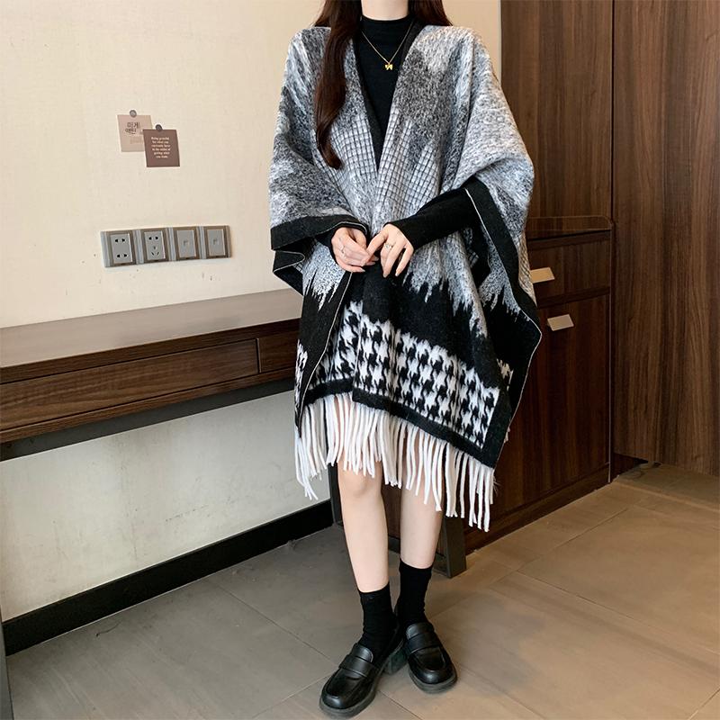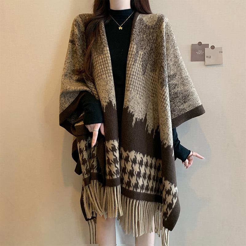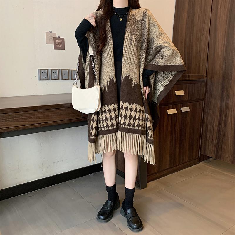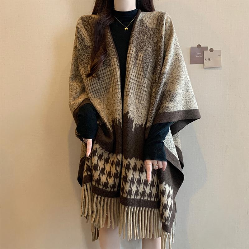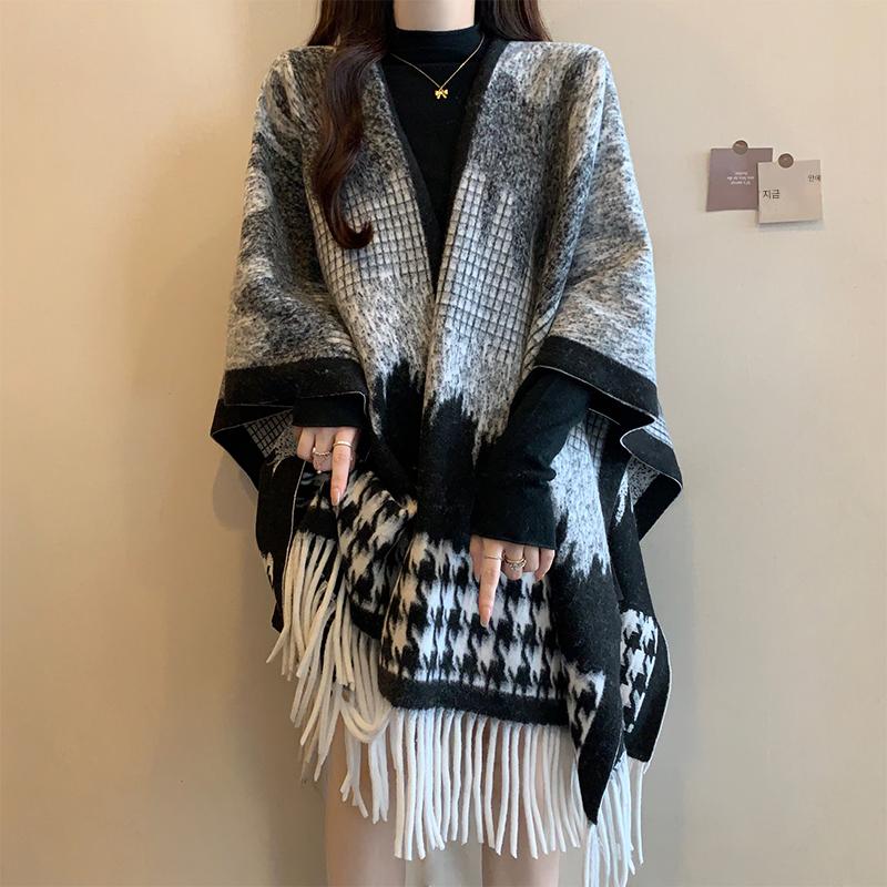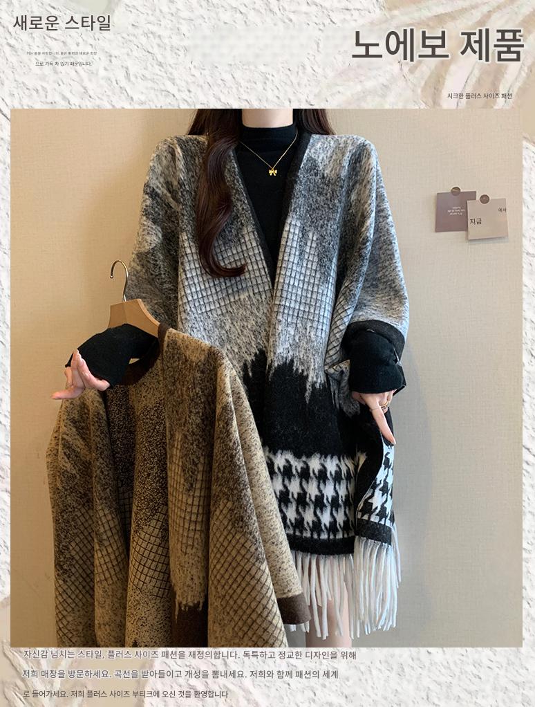 아우터 웨어 숄 케이프 스웨터 코트 여성 봄 가을 2025 대형 팻 mm 고급 루즈 레트로 태슬 탑