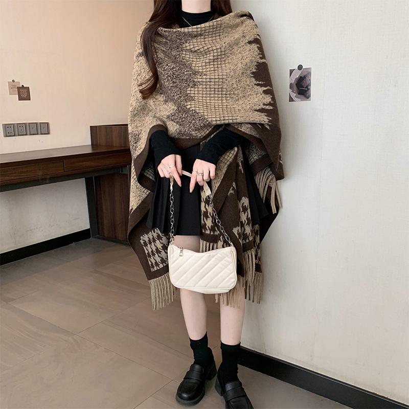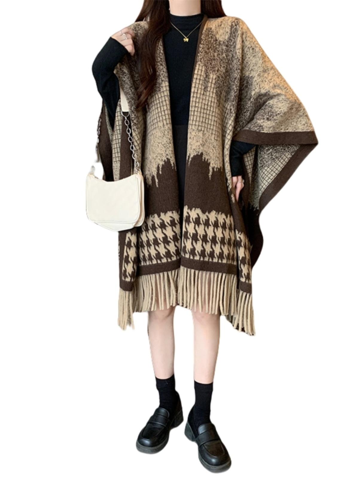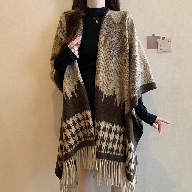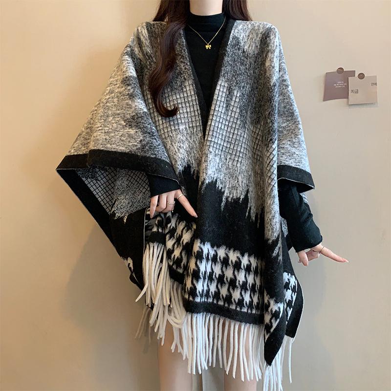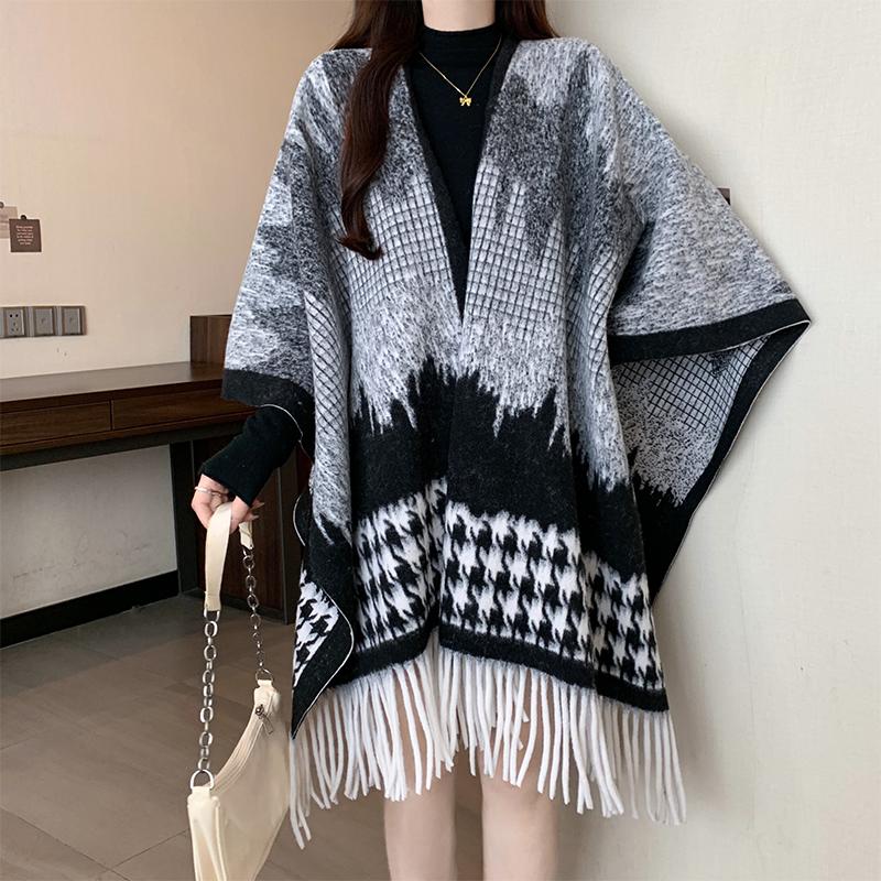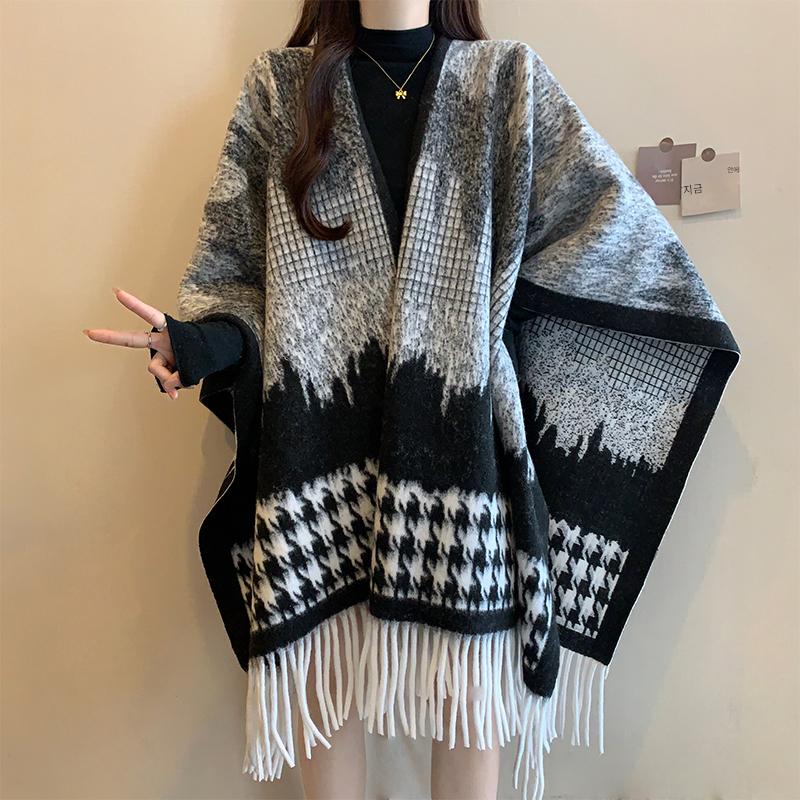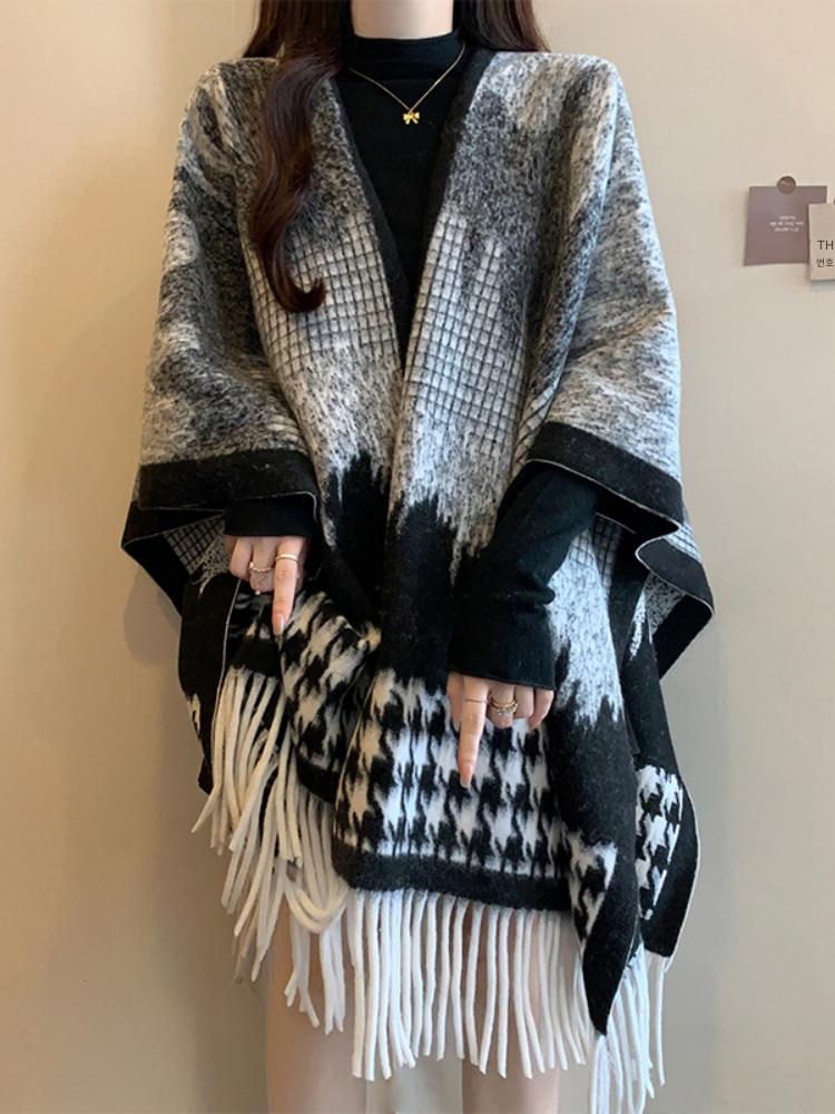 아우터 웨어 숄 케이프 스웨터 코트 여성 봄 가을 2025 대형 팻 mm 고급 루즈 레트로 태슬 탑