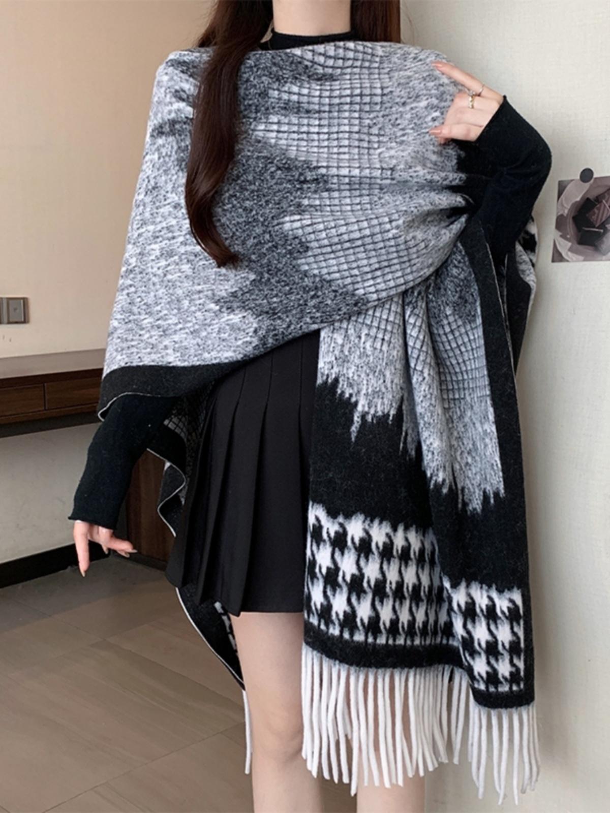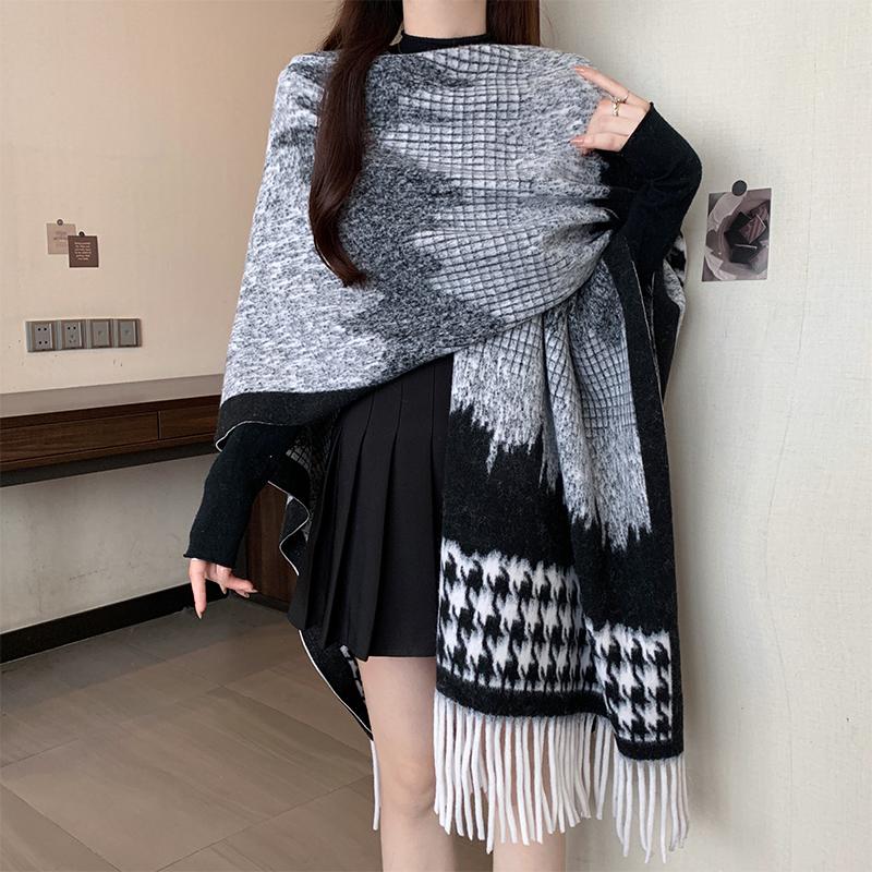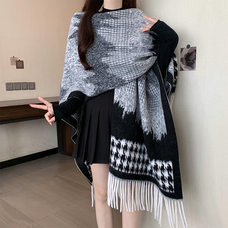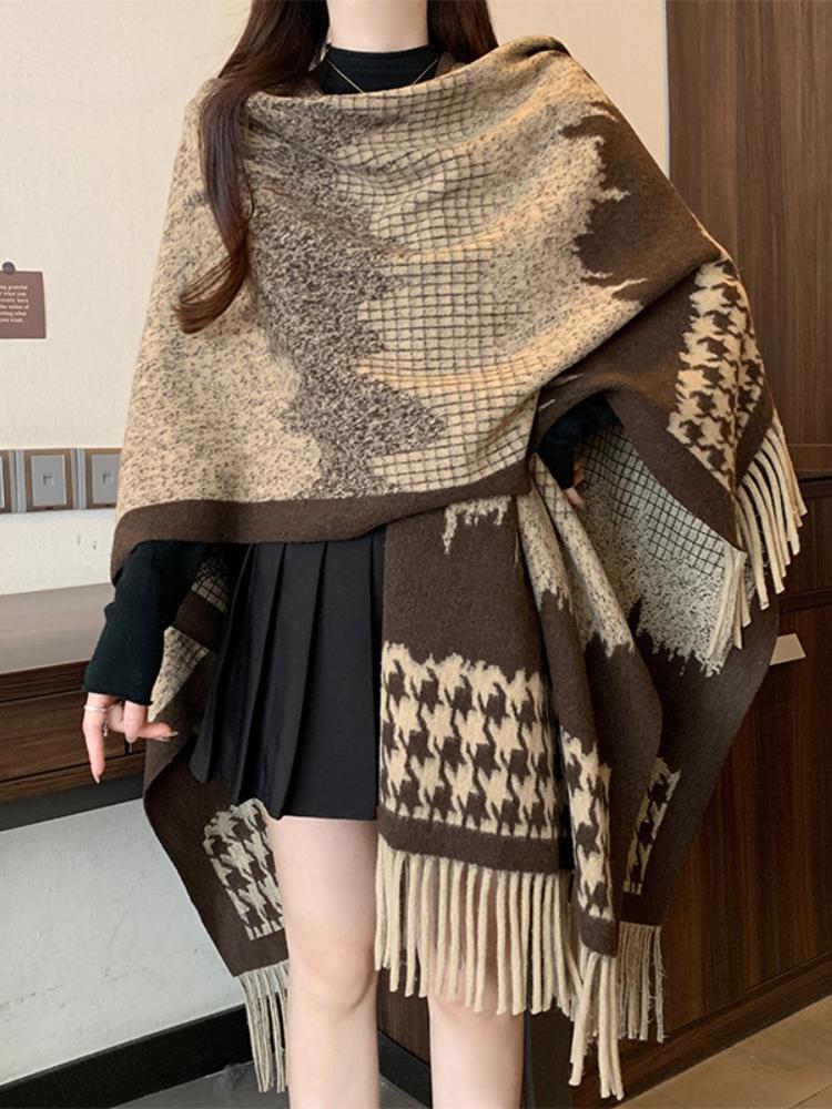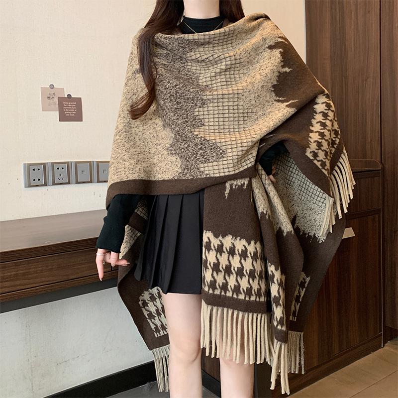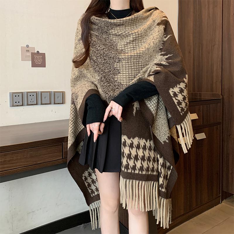 아우터 웨어 숄 케이프 스웨터 코트 여성 봄 가을 2025 대형 팻 mm 고급 루즈 레트로 태슬 탑