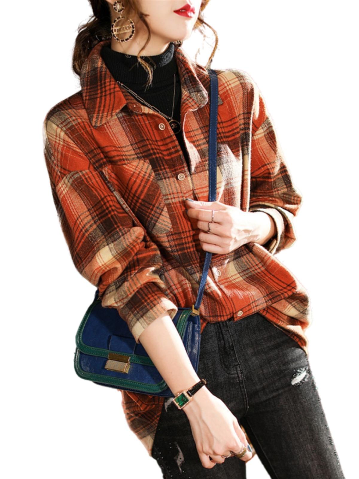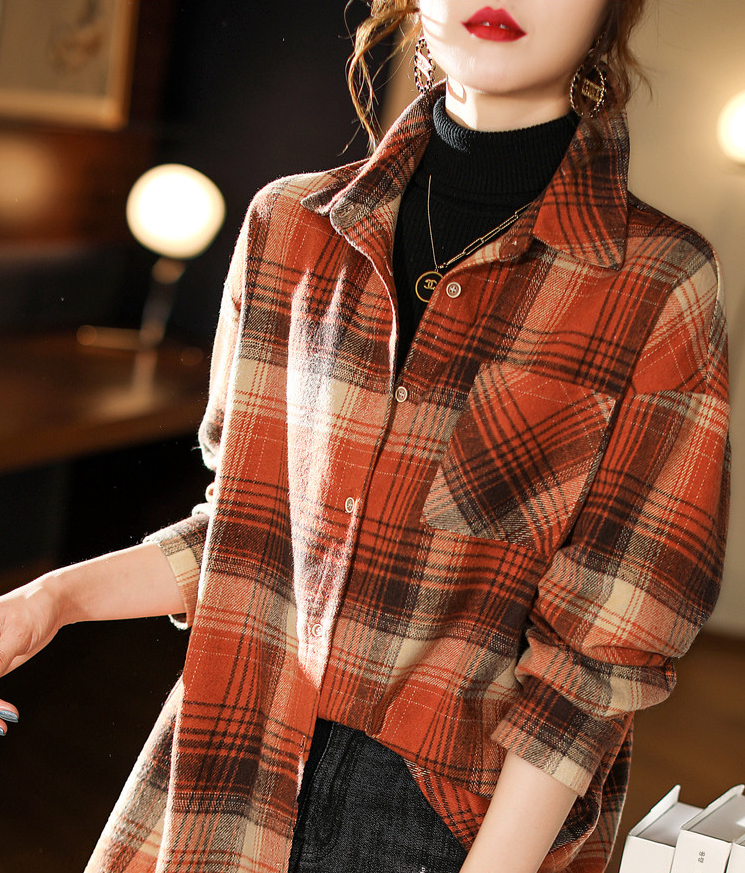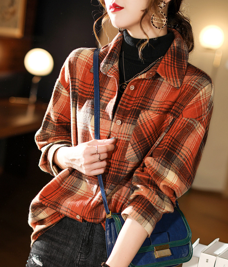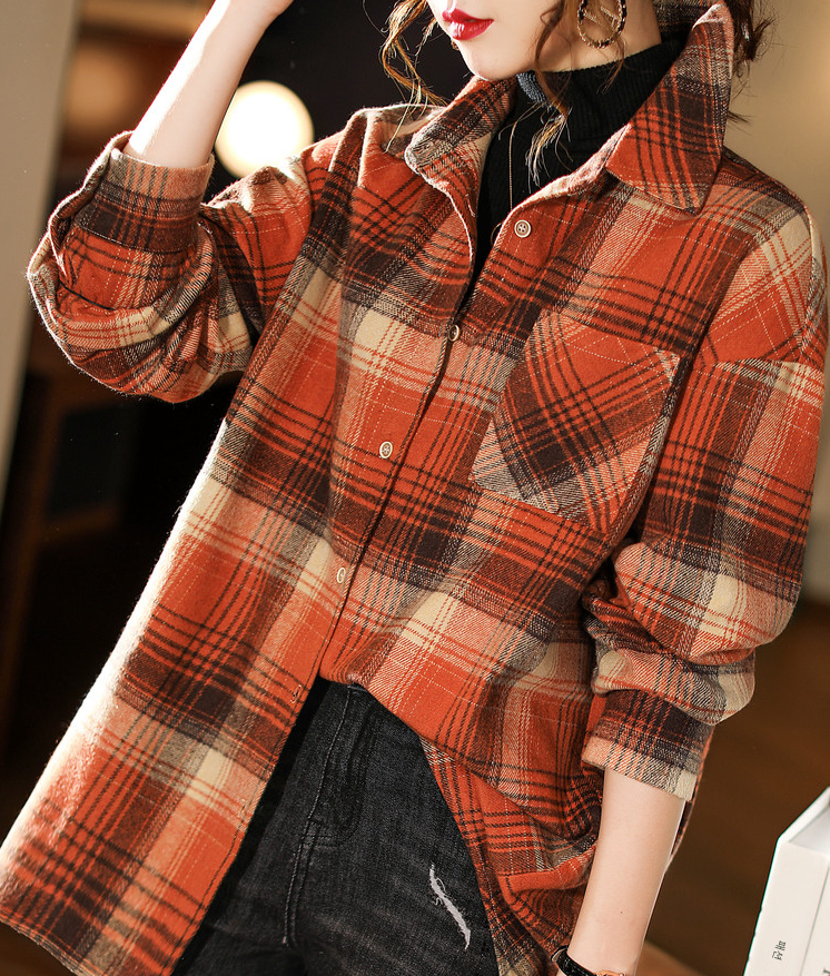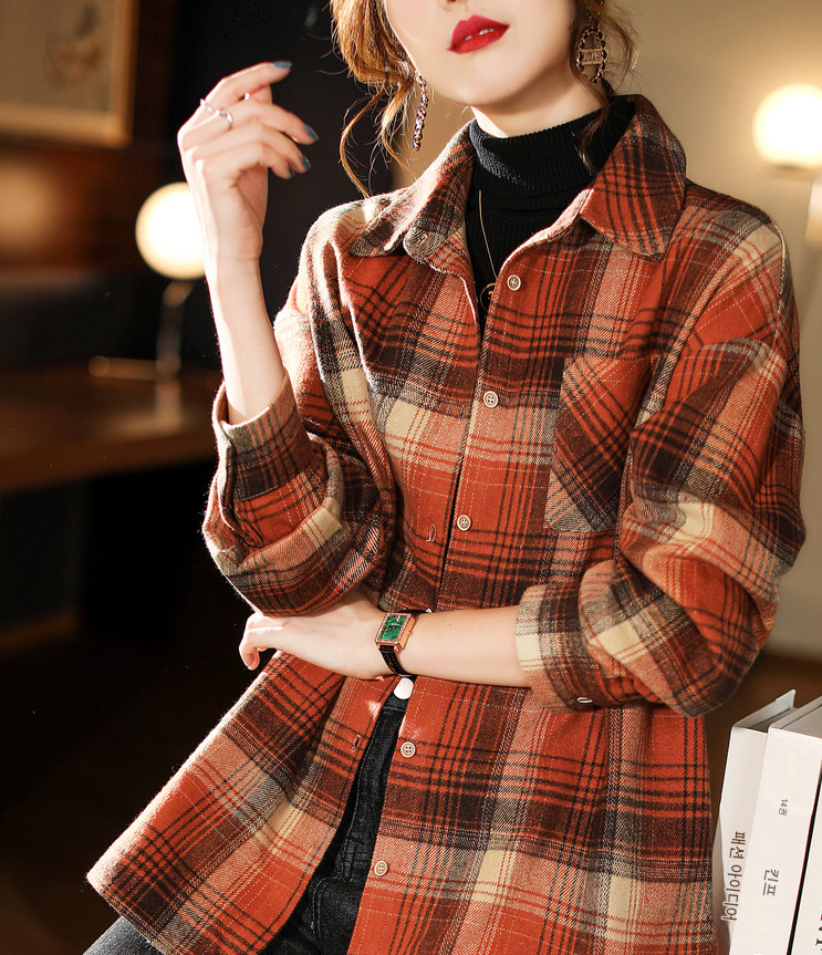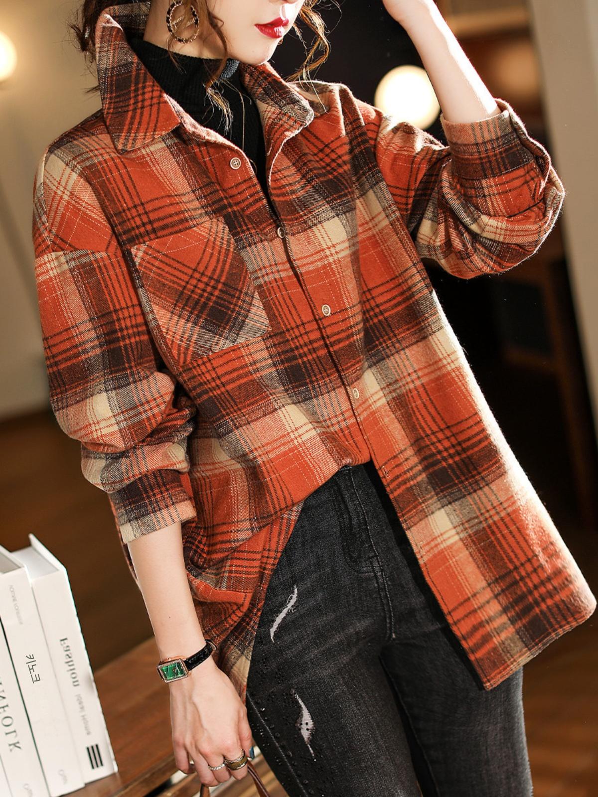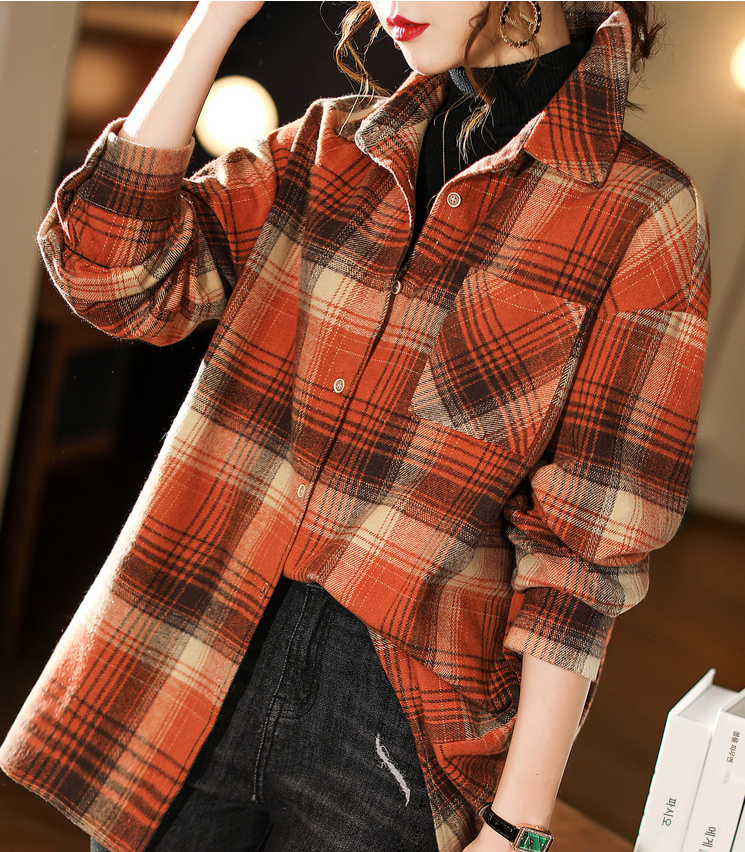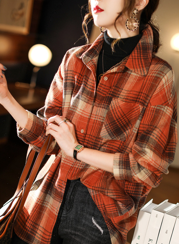 아울렛 카운터 외국 무역 대형 브랜드 클리어런스 세일 봄 가을 얇은 복고풍 플레드 셔츠 느슨한 재킷 여성