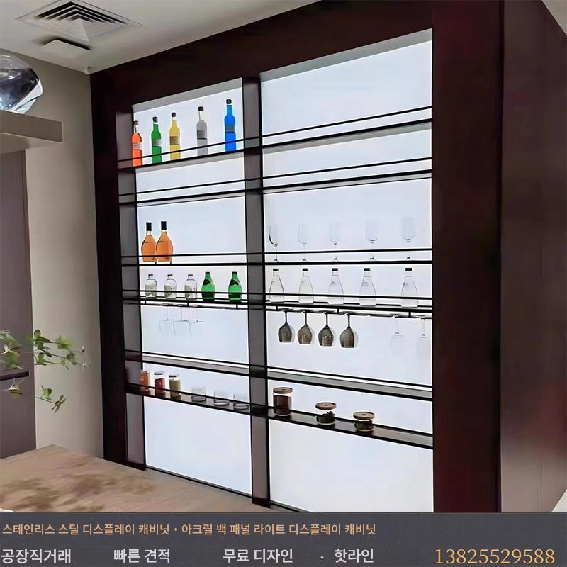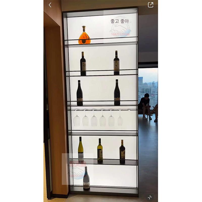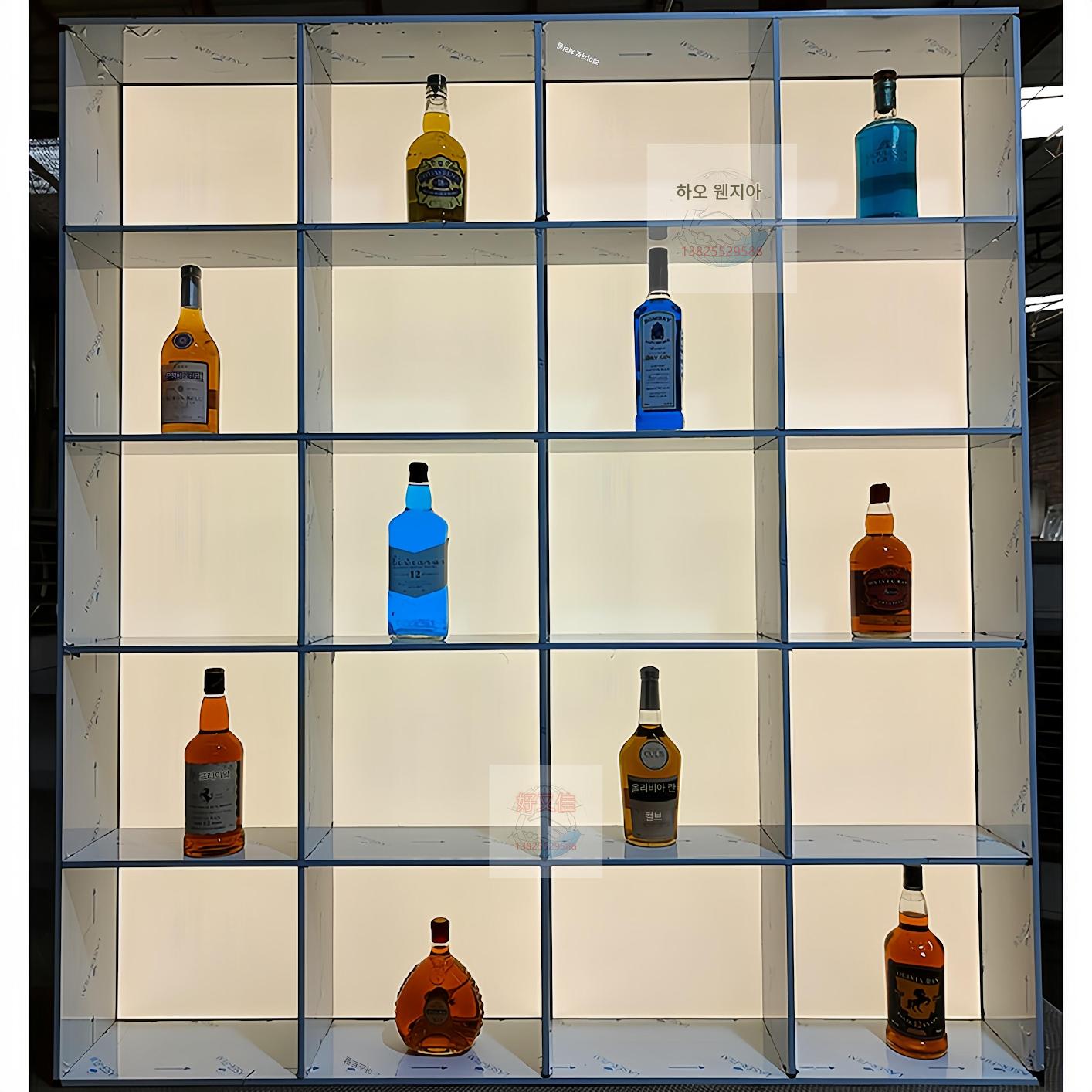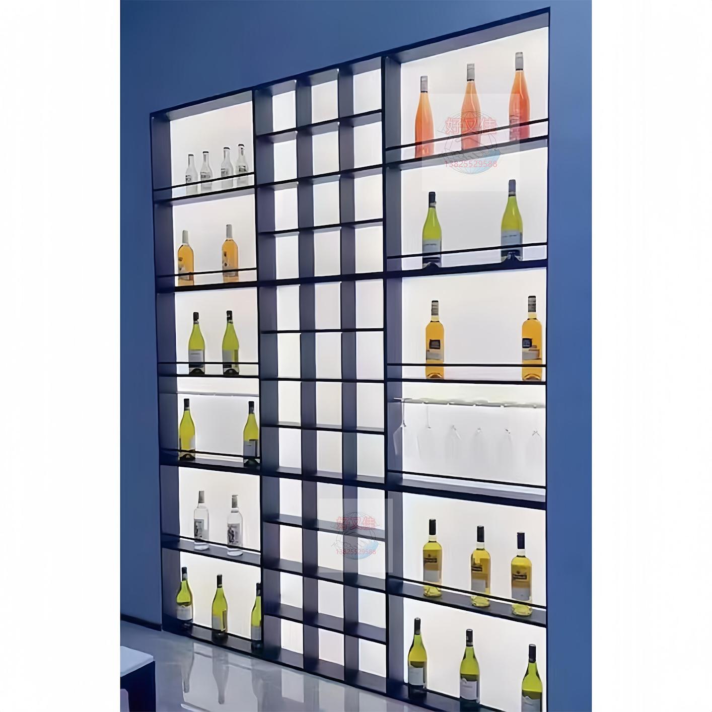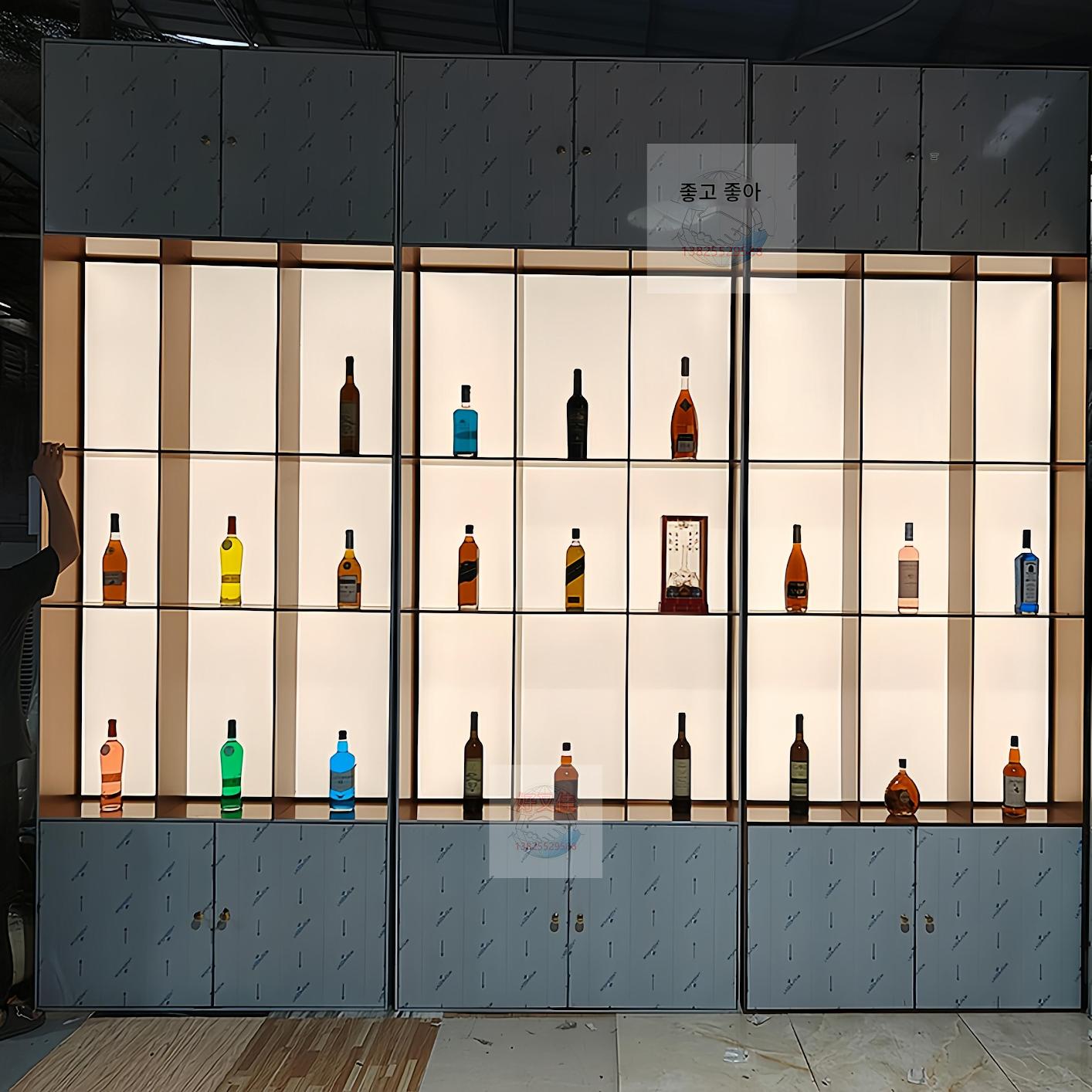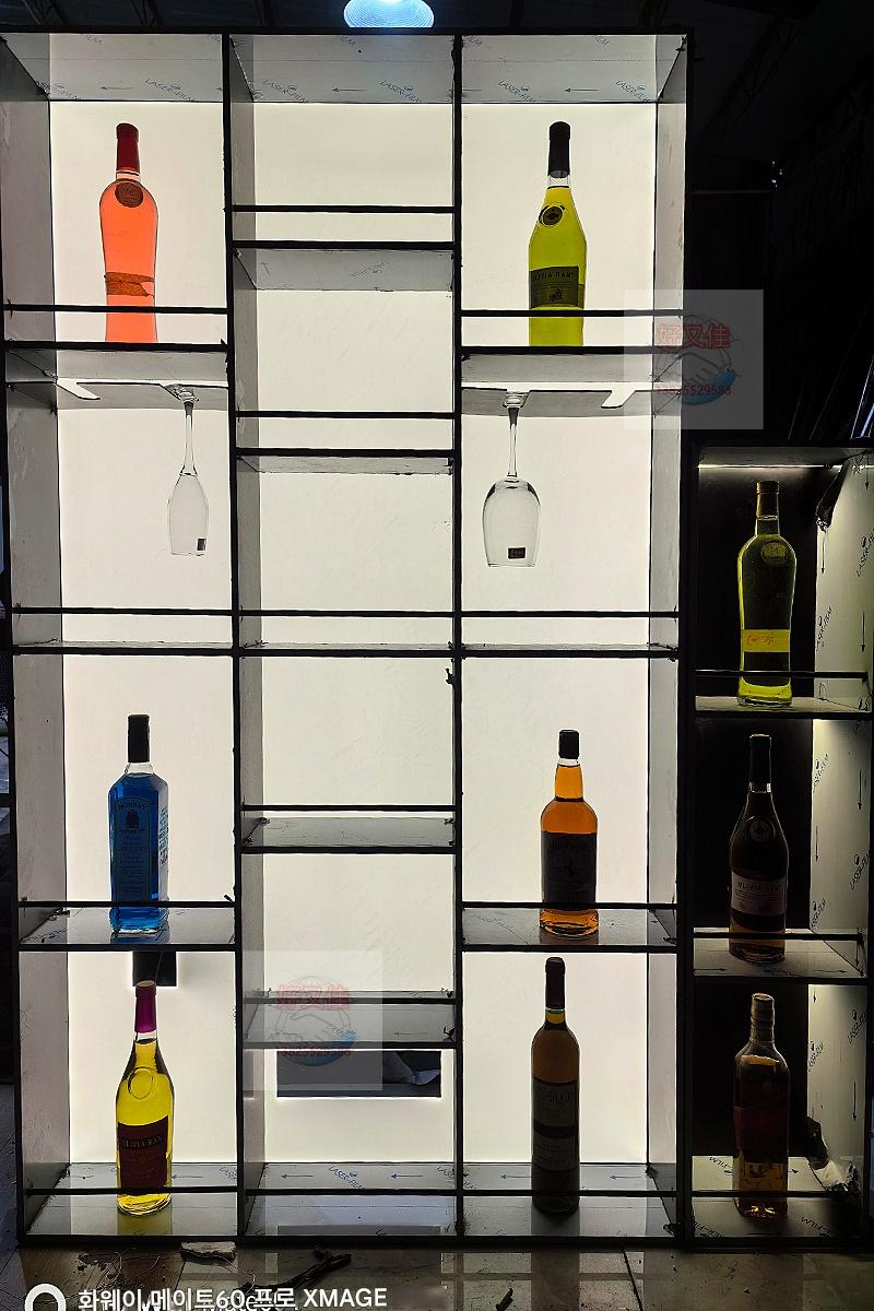 아크릴 발광 백 플레이트 스테인리스 스틸 금속 디스플레이 캐비닛 고급 호텔 클럽 와인 캐비닛 와인 랙