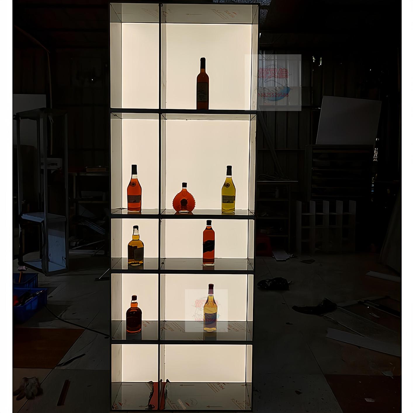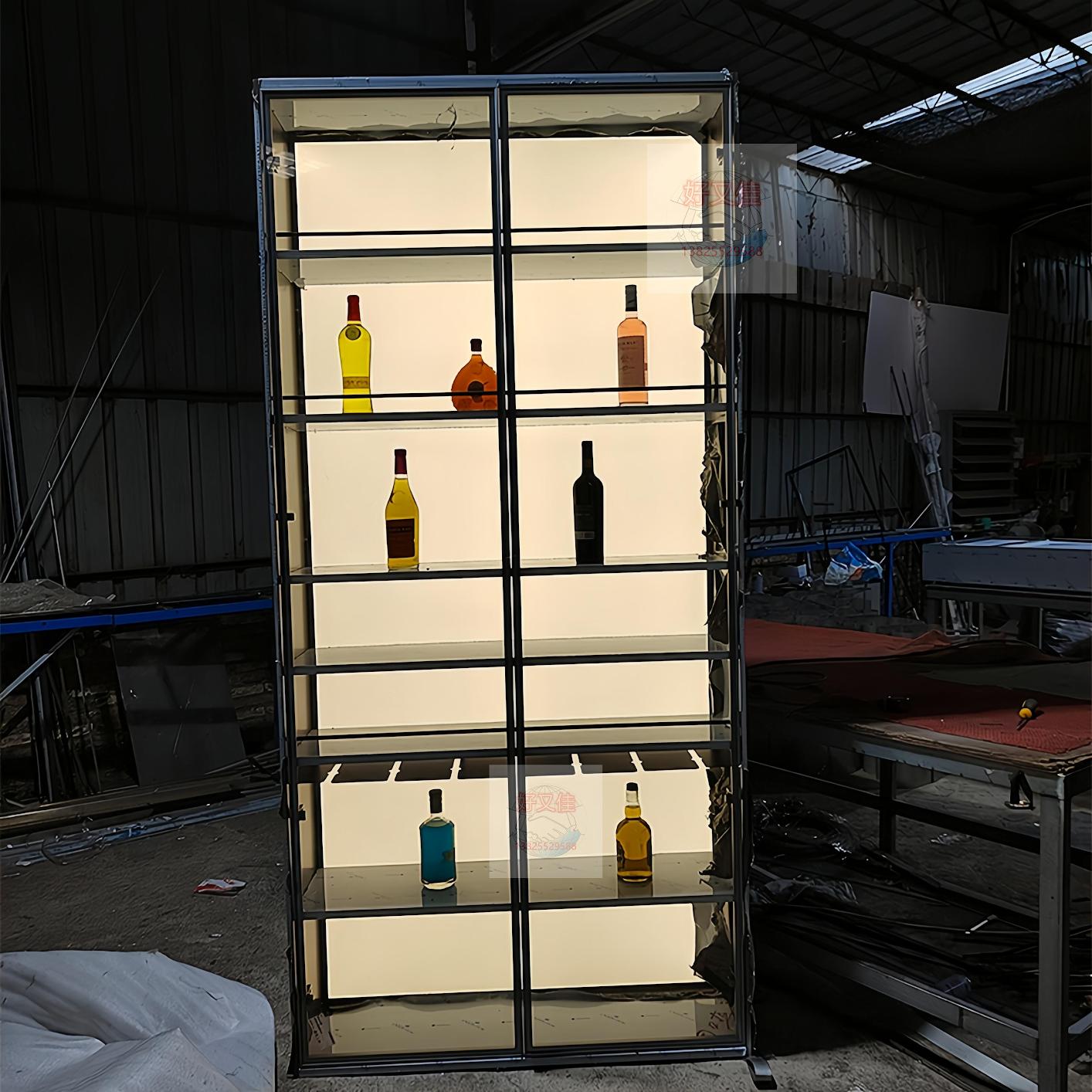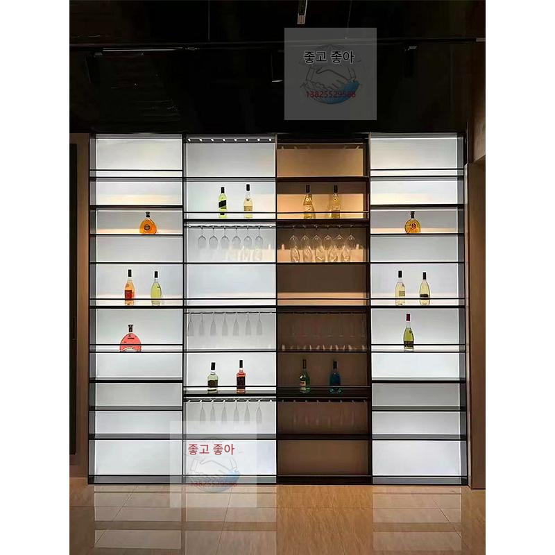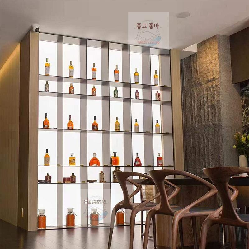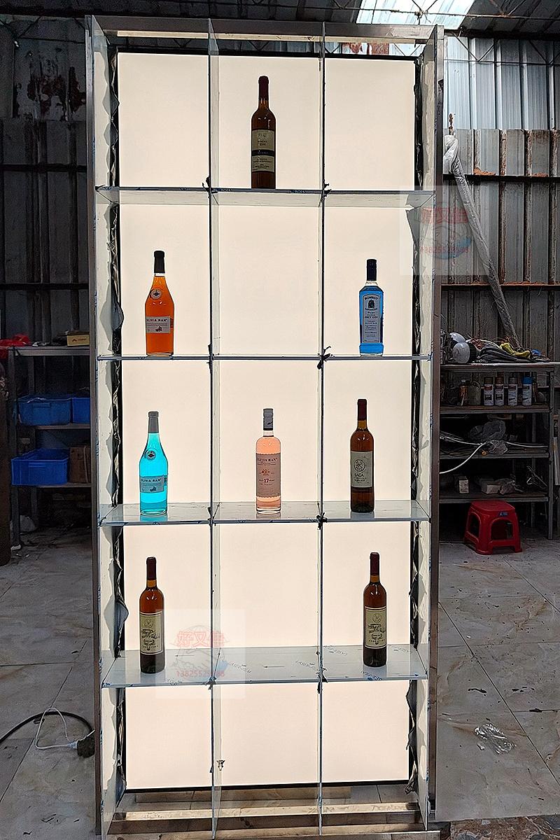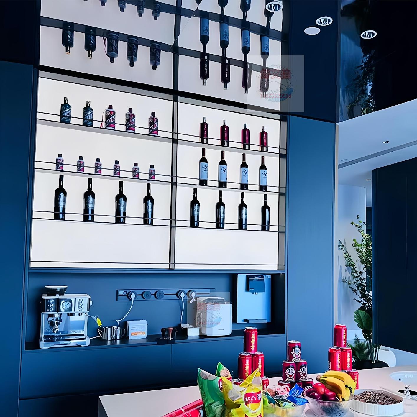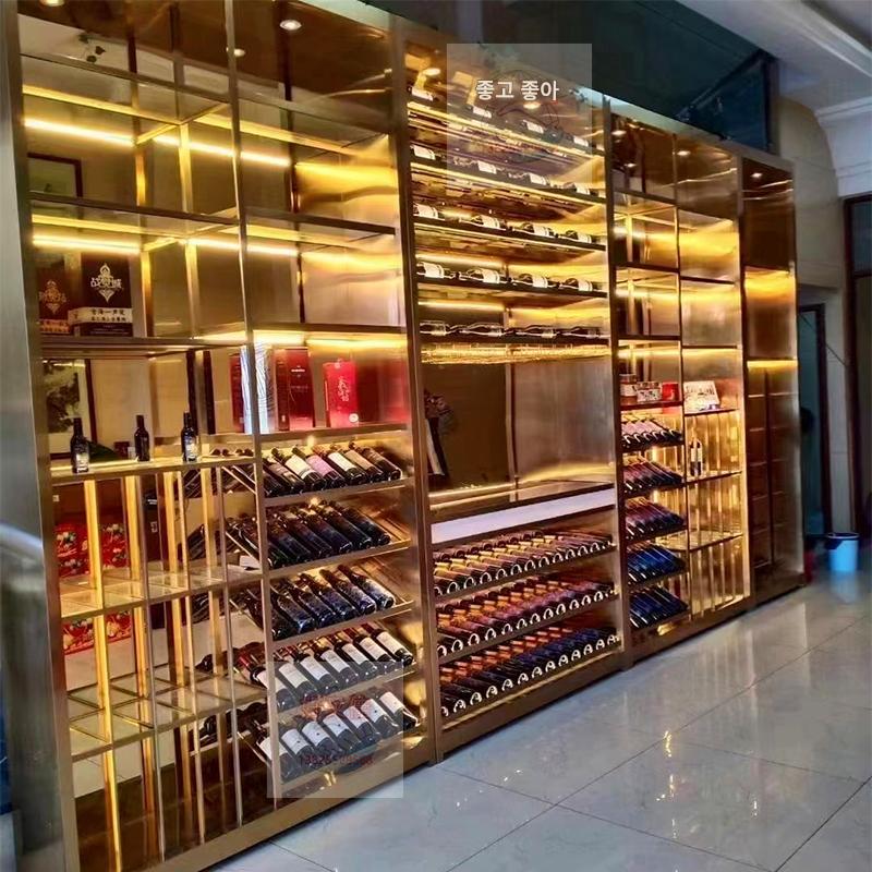 아크릴 발광 백 플레이트 스테인리스 스틸 금속 디스플레이 캐비닛 고급 호텔 클럽 와인 캐비닛 와인 랙