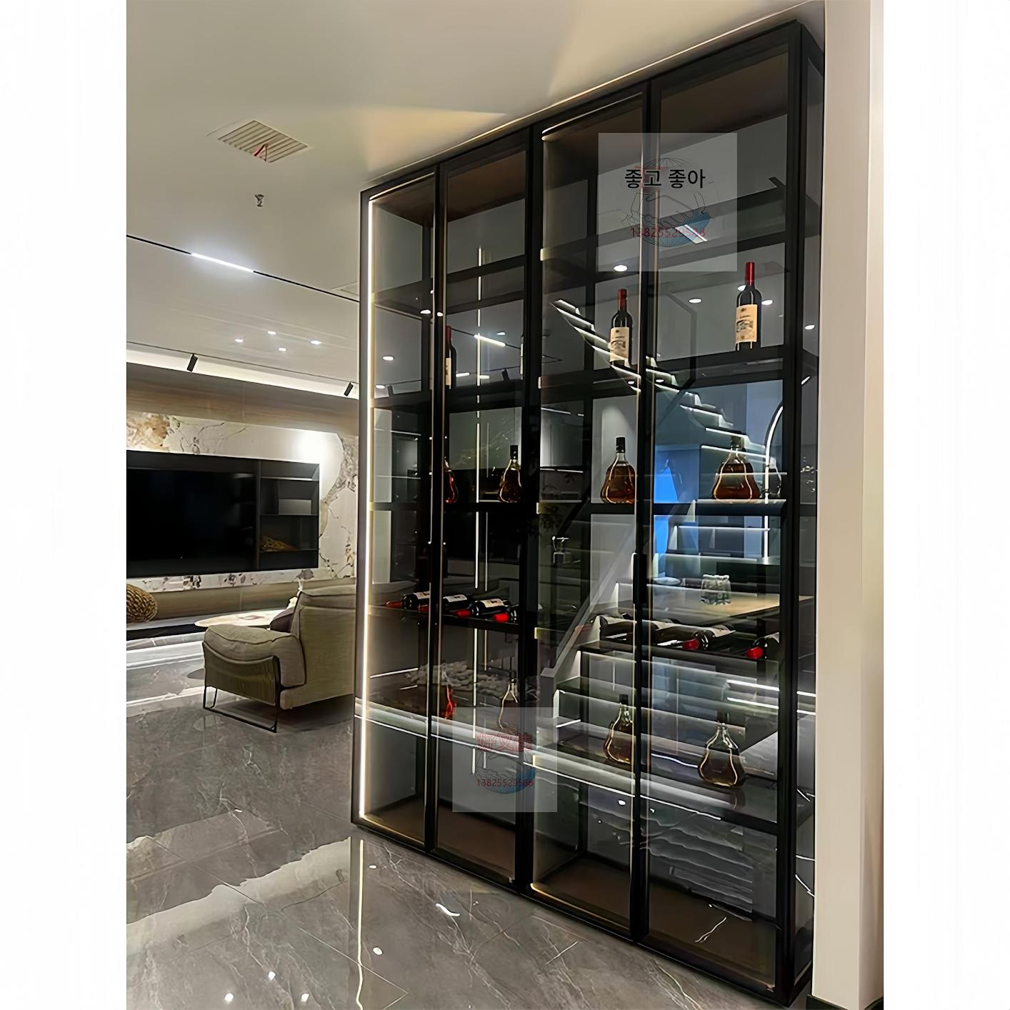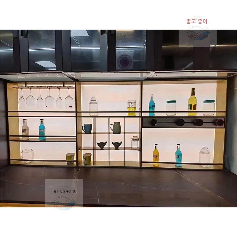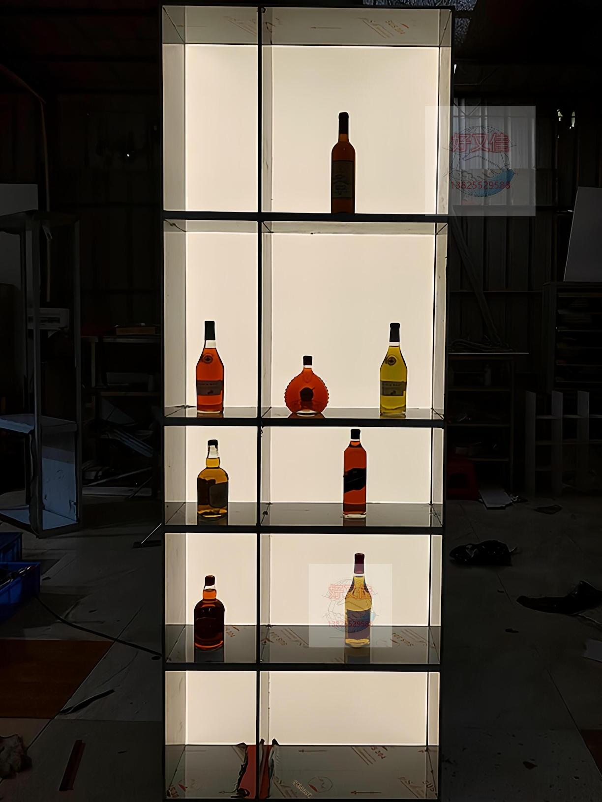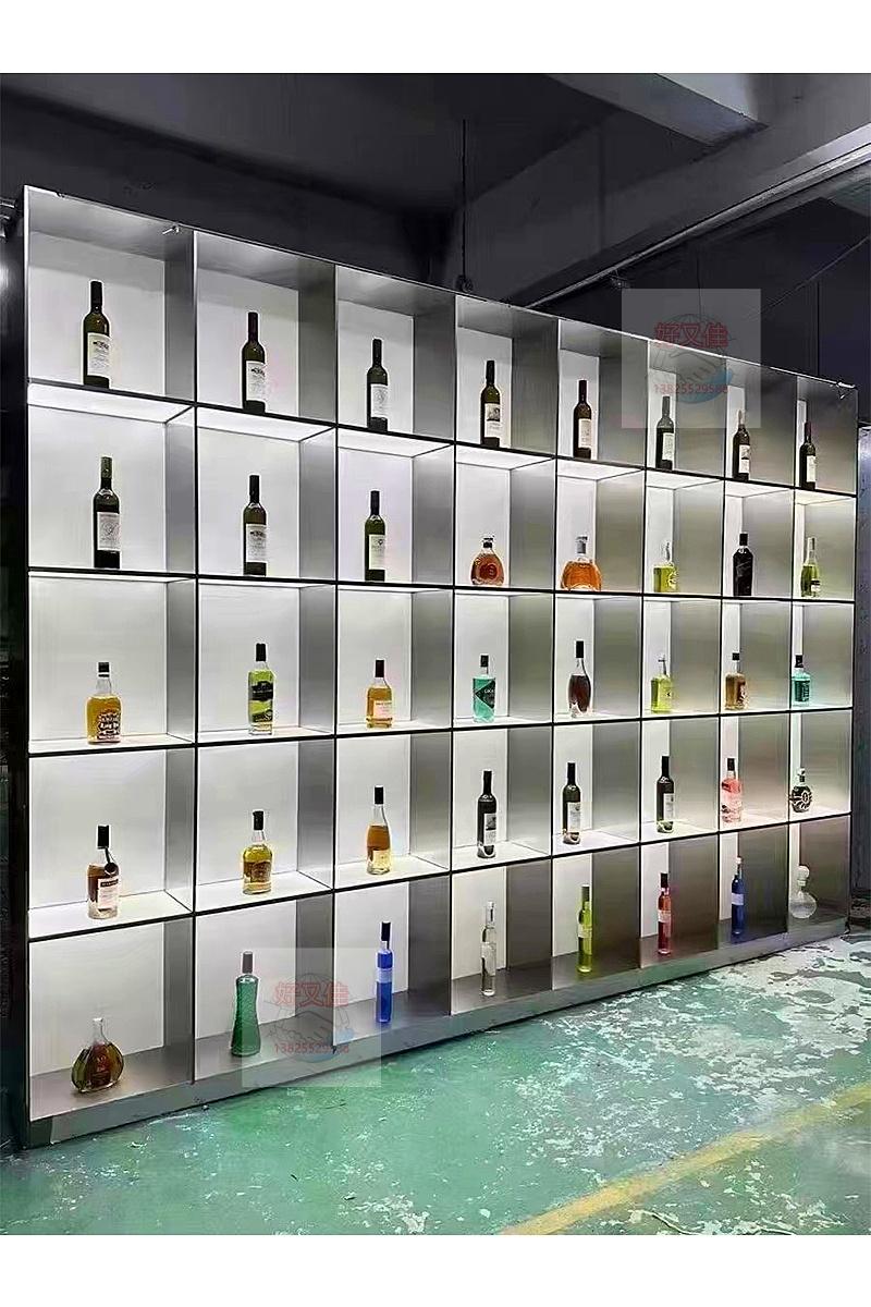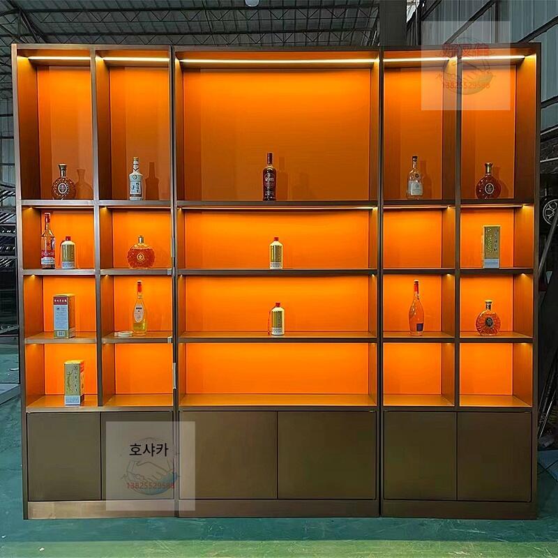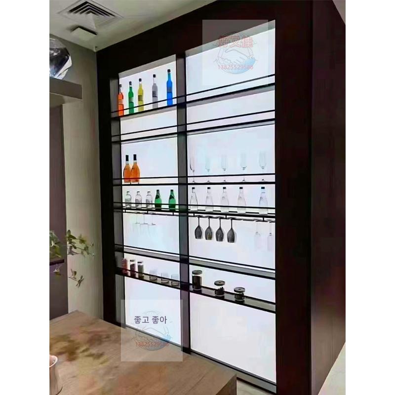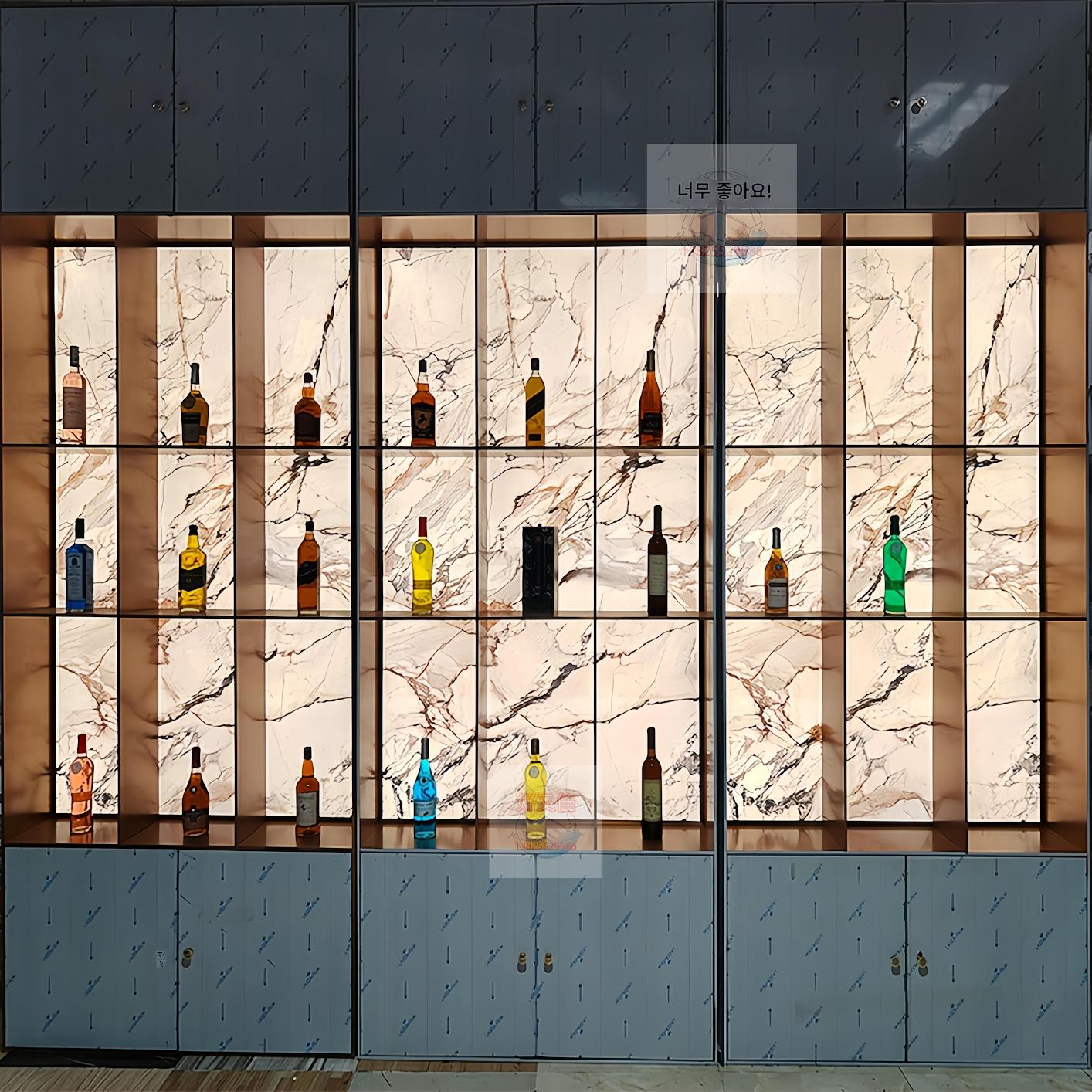 아크릴 발광 백 플레이트 스테인리스 스틸 금속 디스플레이 캐비닛 고급 호텔 클럽 와인 캐비닛 와인 랙