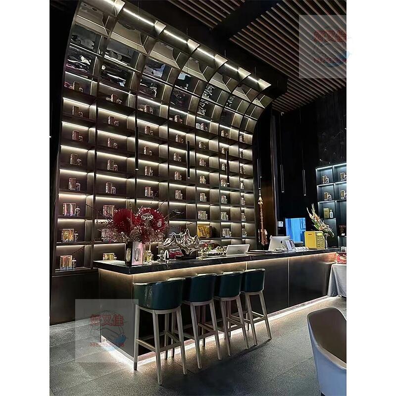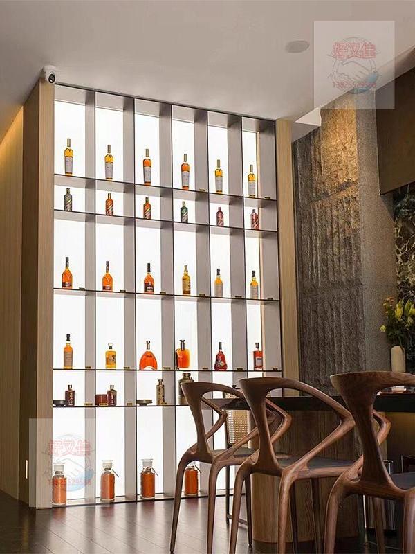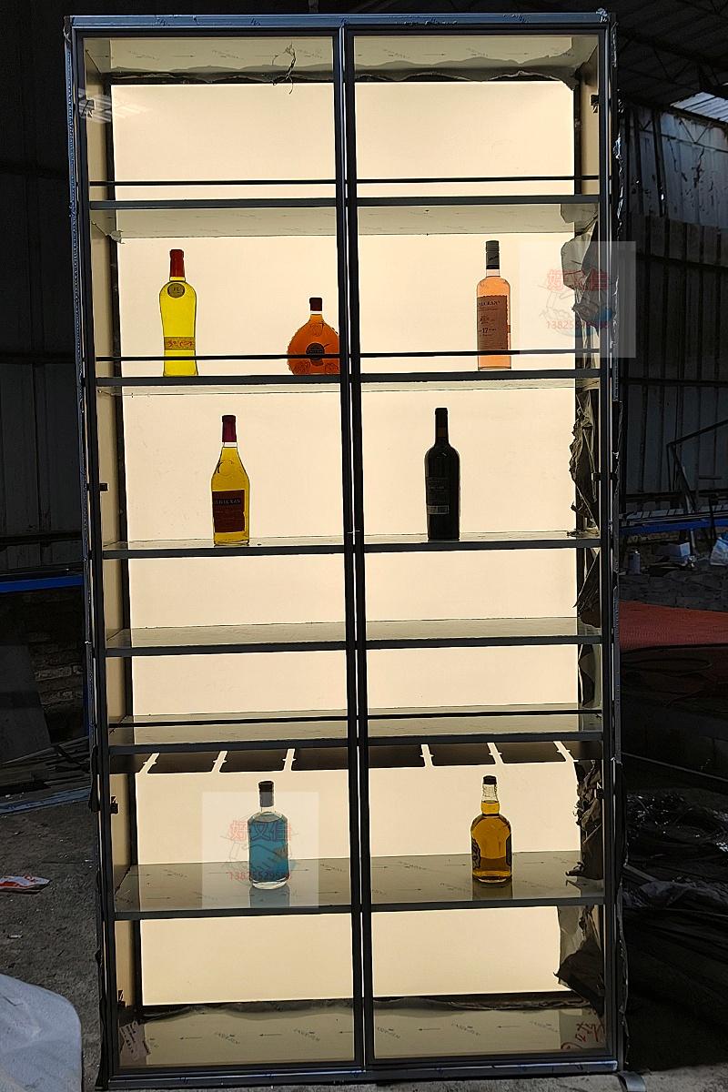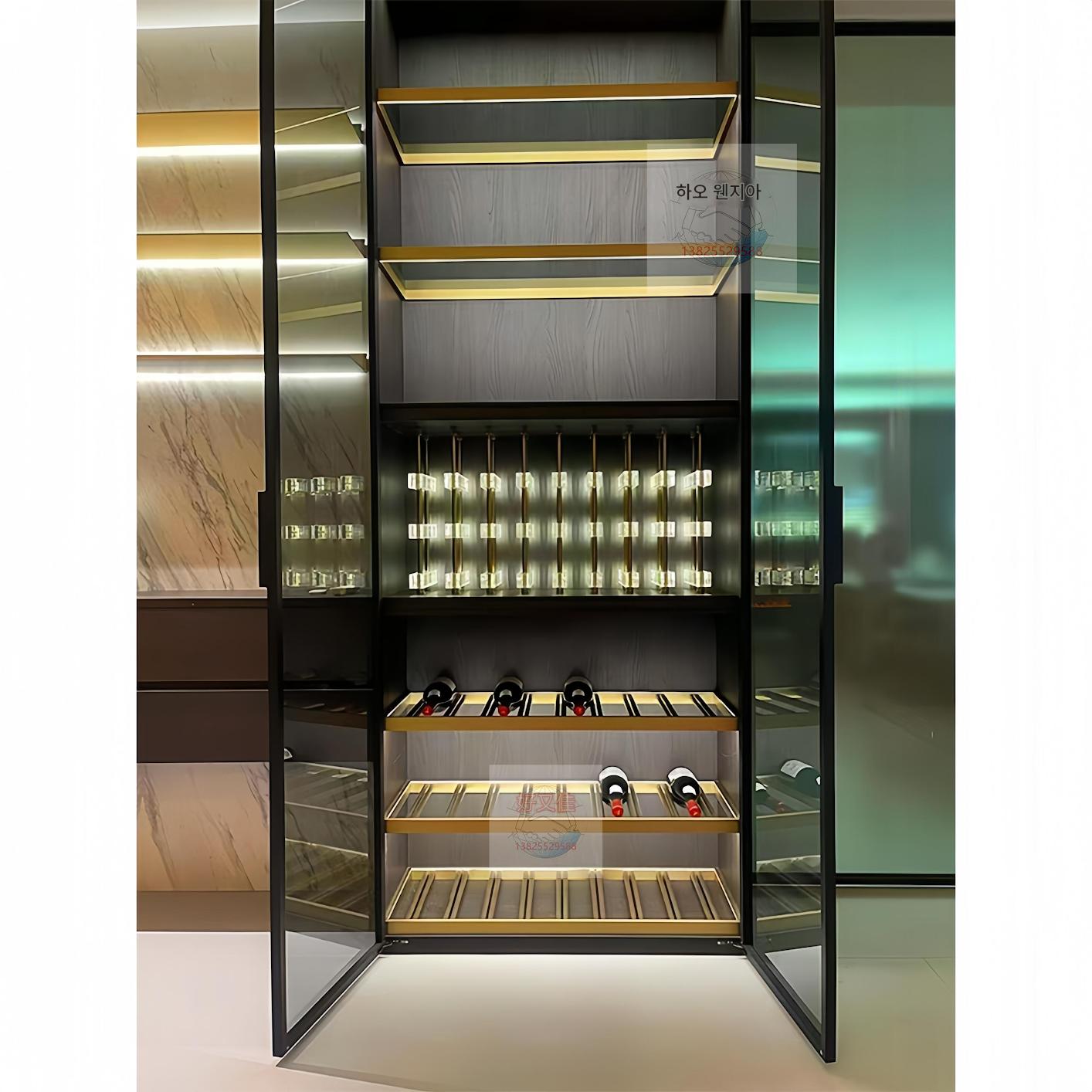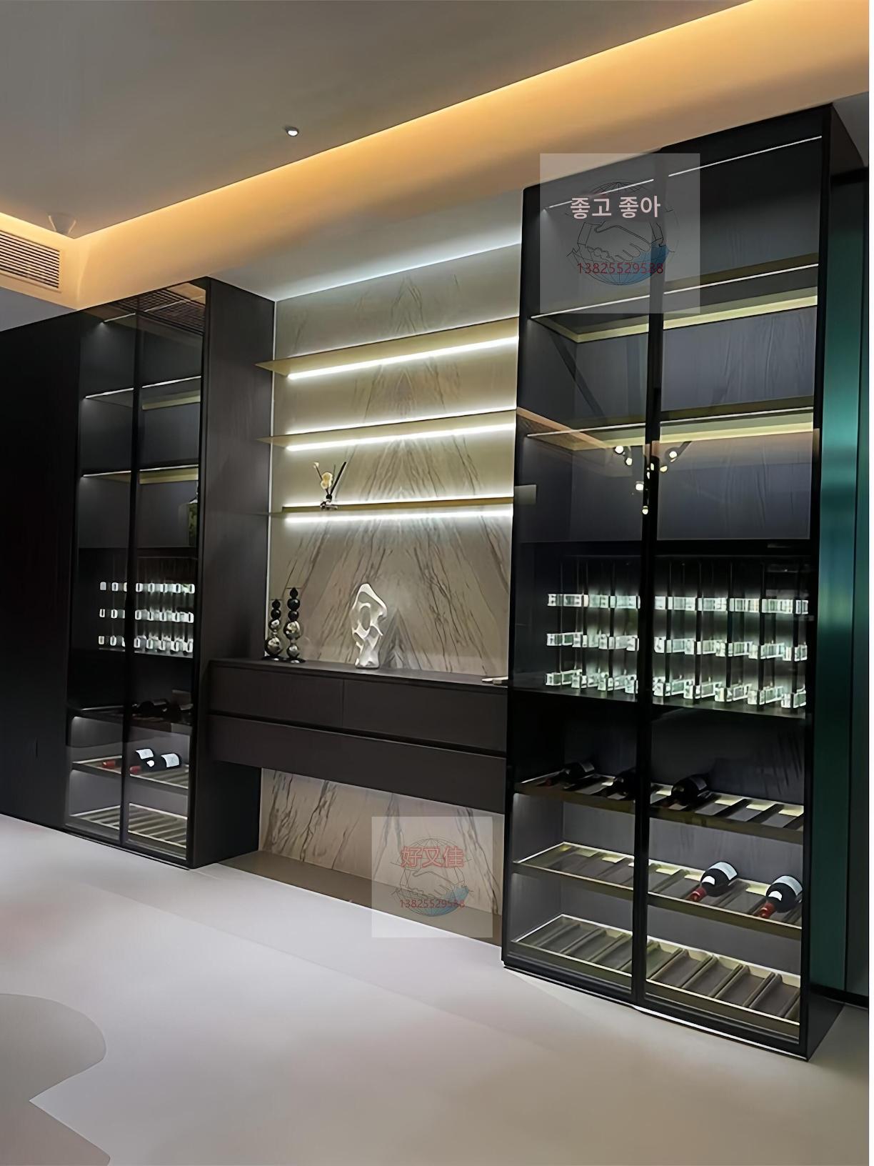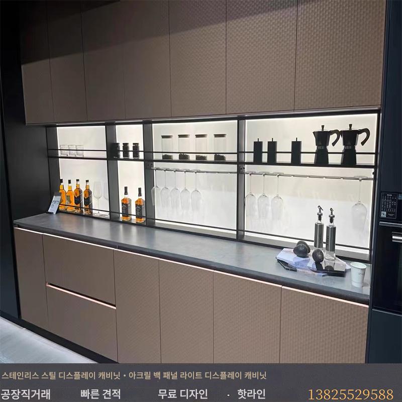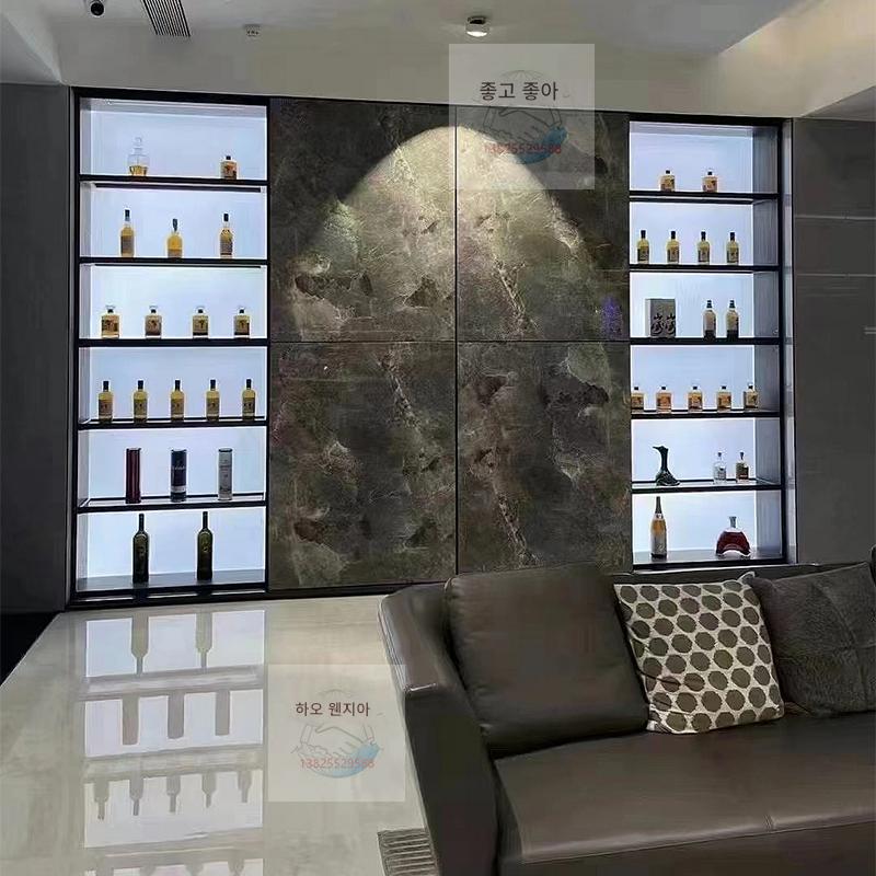 아크릴 발광 백 플레이트 스테인리스 스틸 금속 디스플레이 캐비닛 고급 호텔 클럽 와인 캐비닛 와인 랙