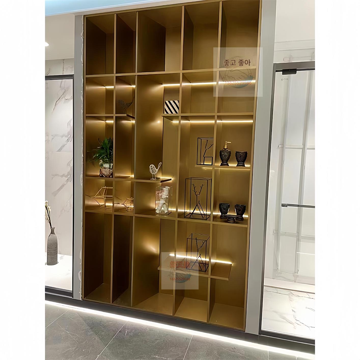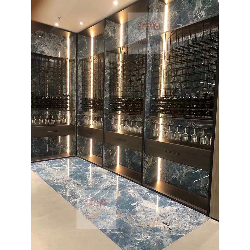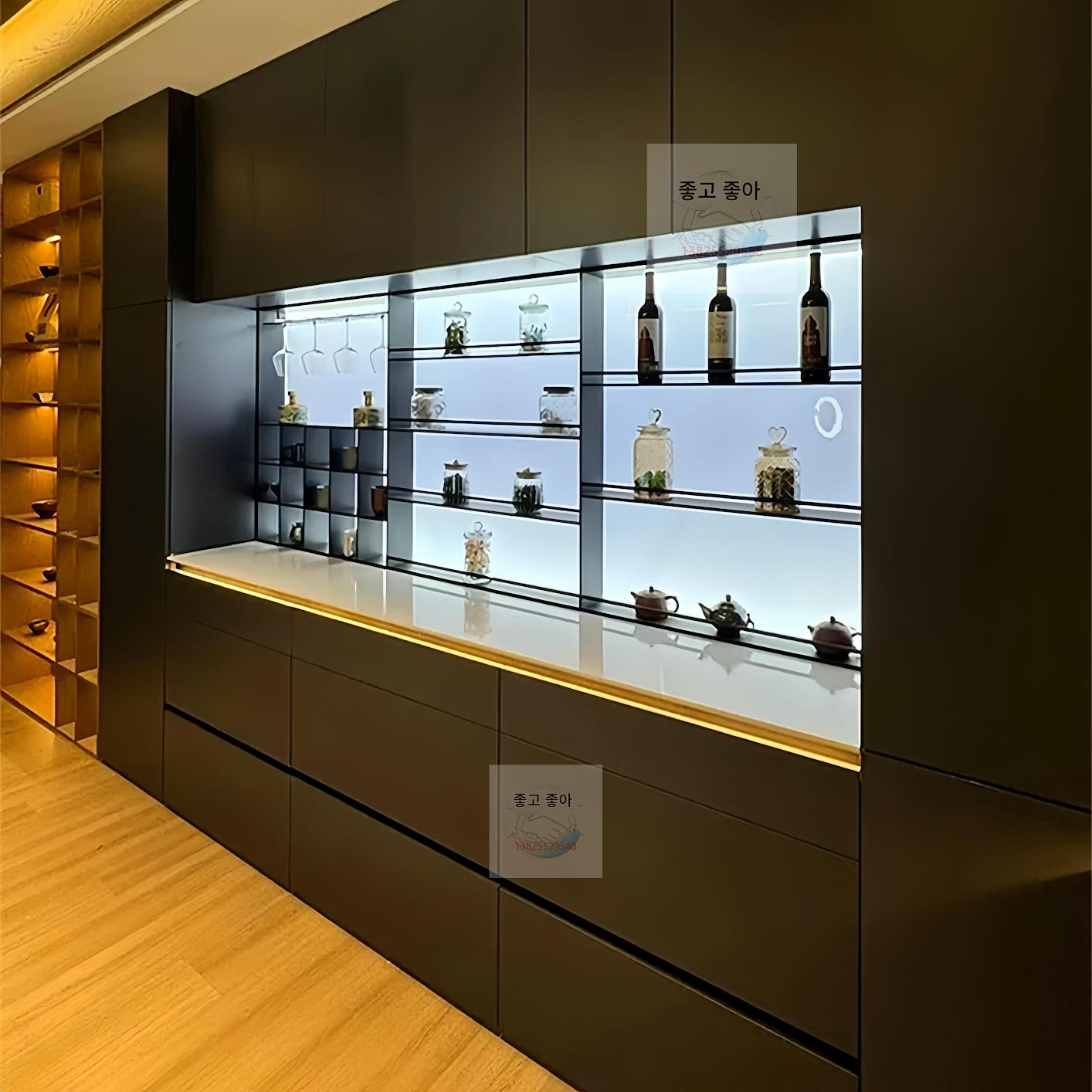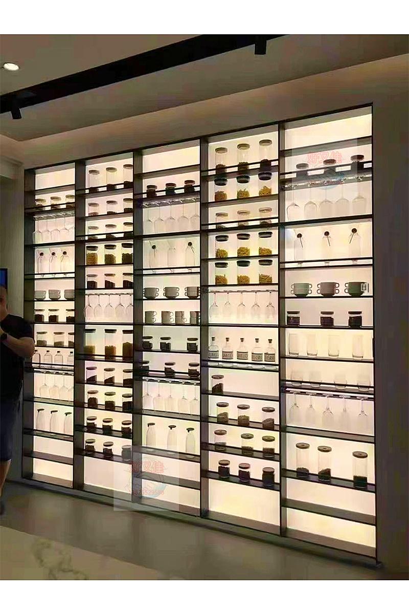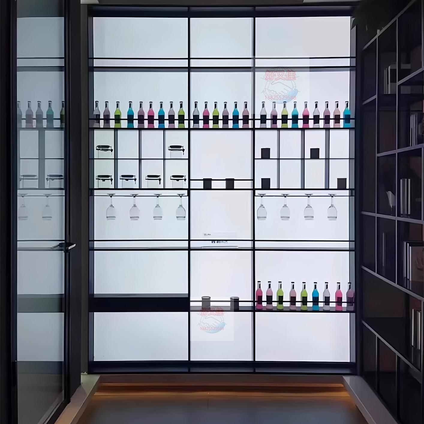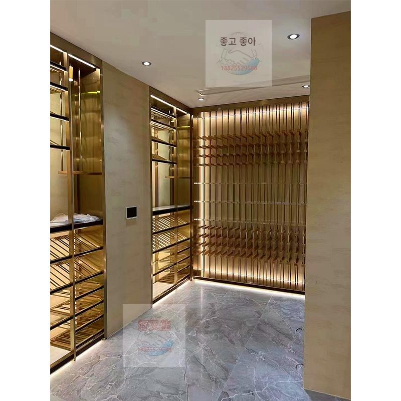 아크릴 발광 백 플레이트 스테인리스 스틸 금속 디스플레이 캐비닛 고급 호텔 클럽 와인 캐비닛 와인 랙