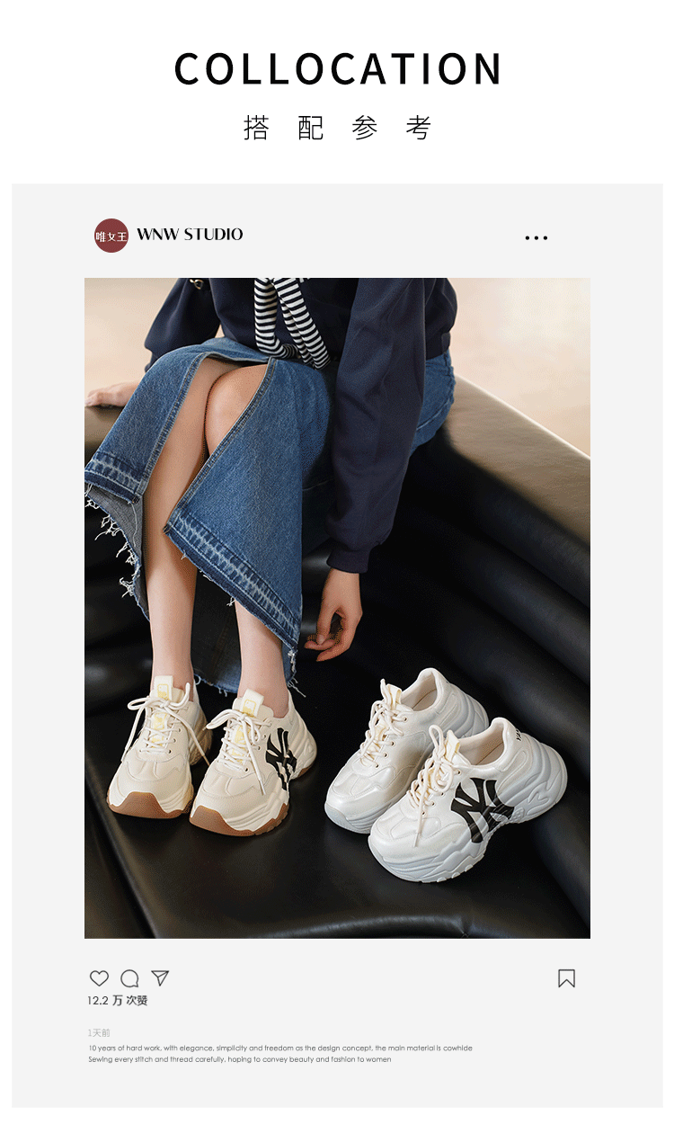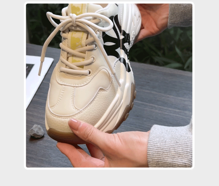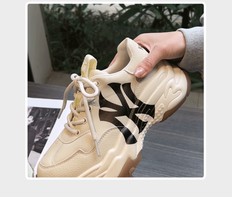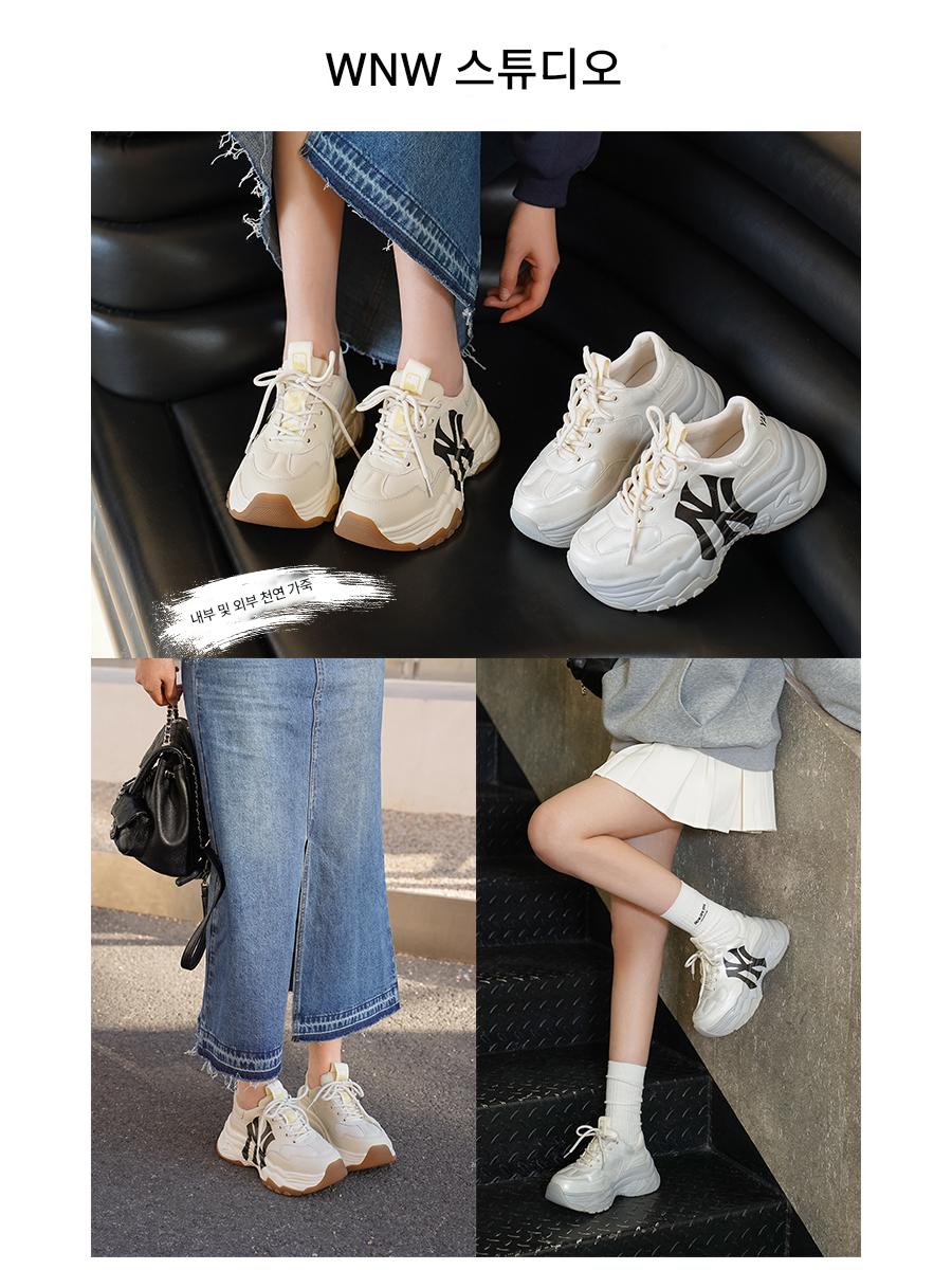 안팎 정품 가죽 ~ 퀸즈 두꺼운 밑창 아빠화 여성용 2025년 신상 봄 키높이 흰색화 캐주얼 운동화