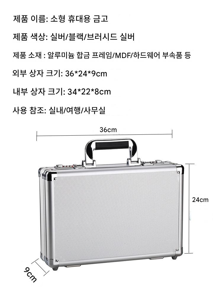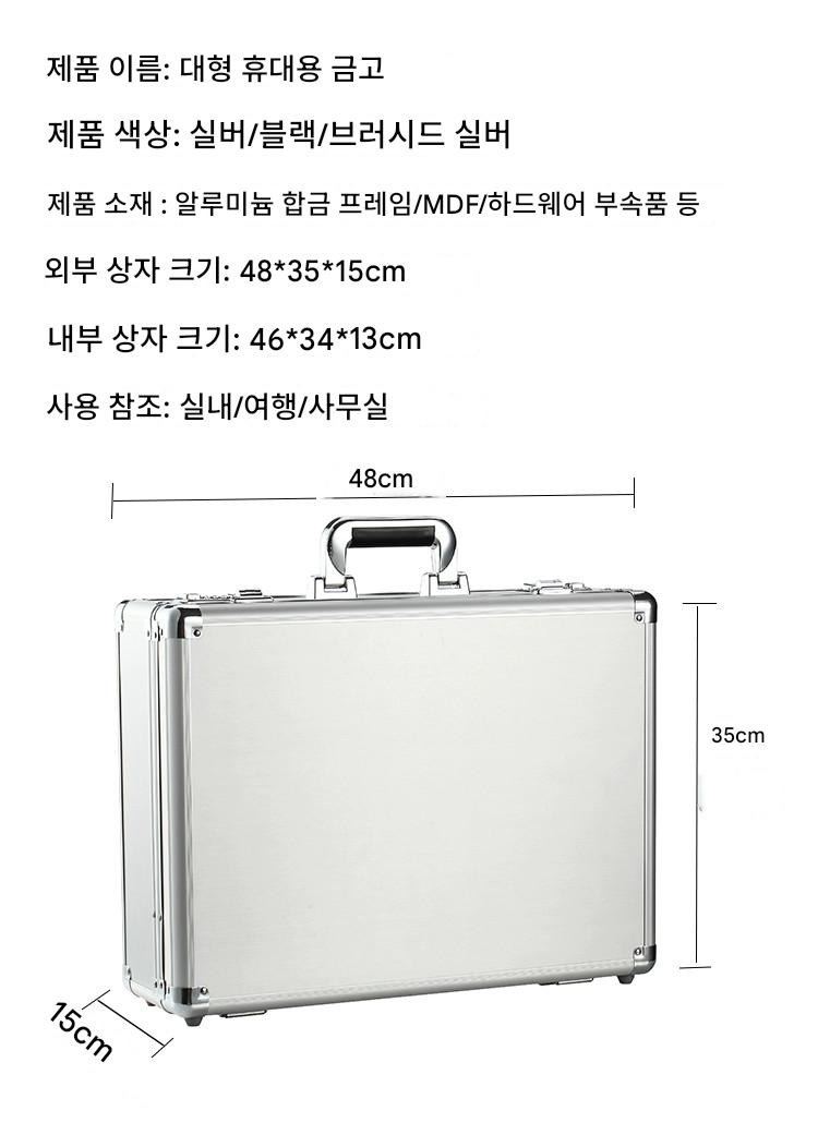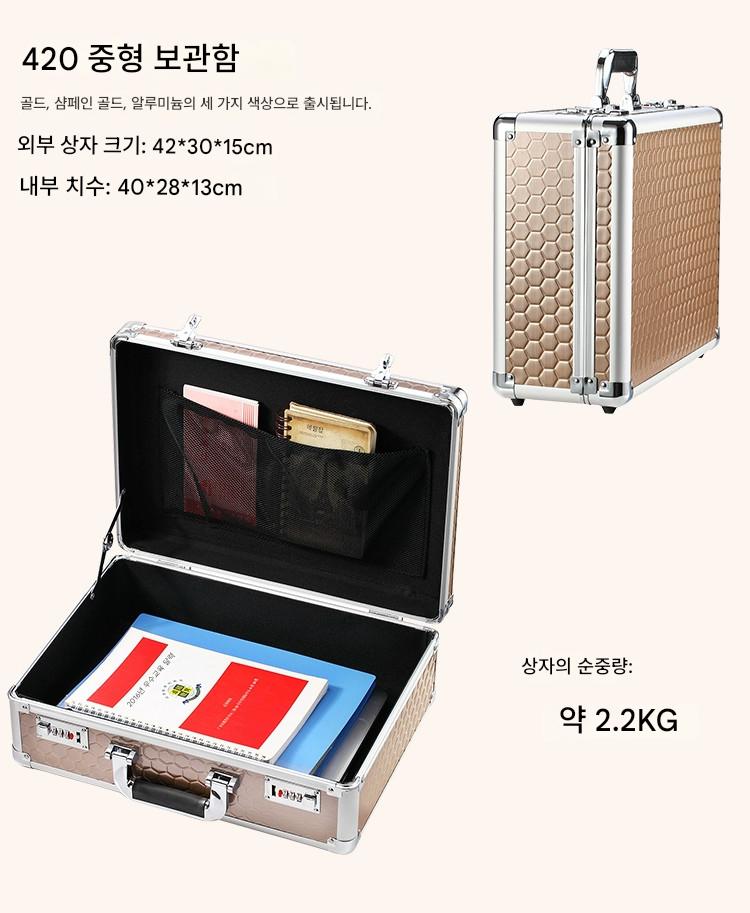 알루미늄 합금 조합 잠금식 보관 상자, 인증서, 문서 및 금고를 위한 소형 가정용 보관 상자, 대용량.