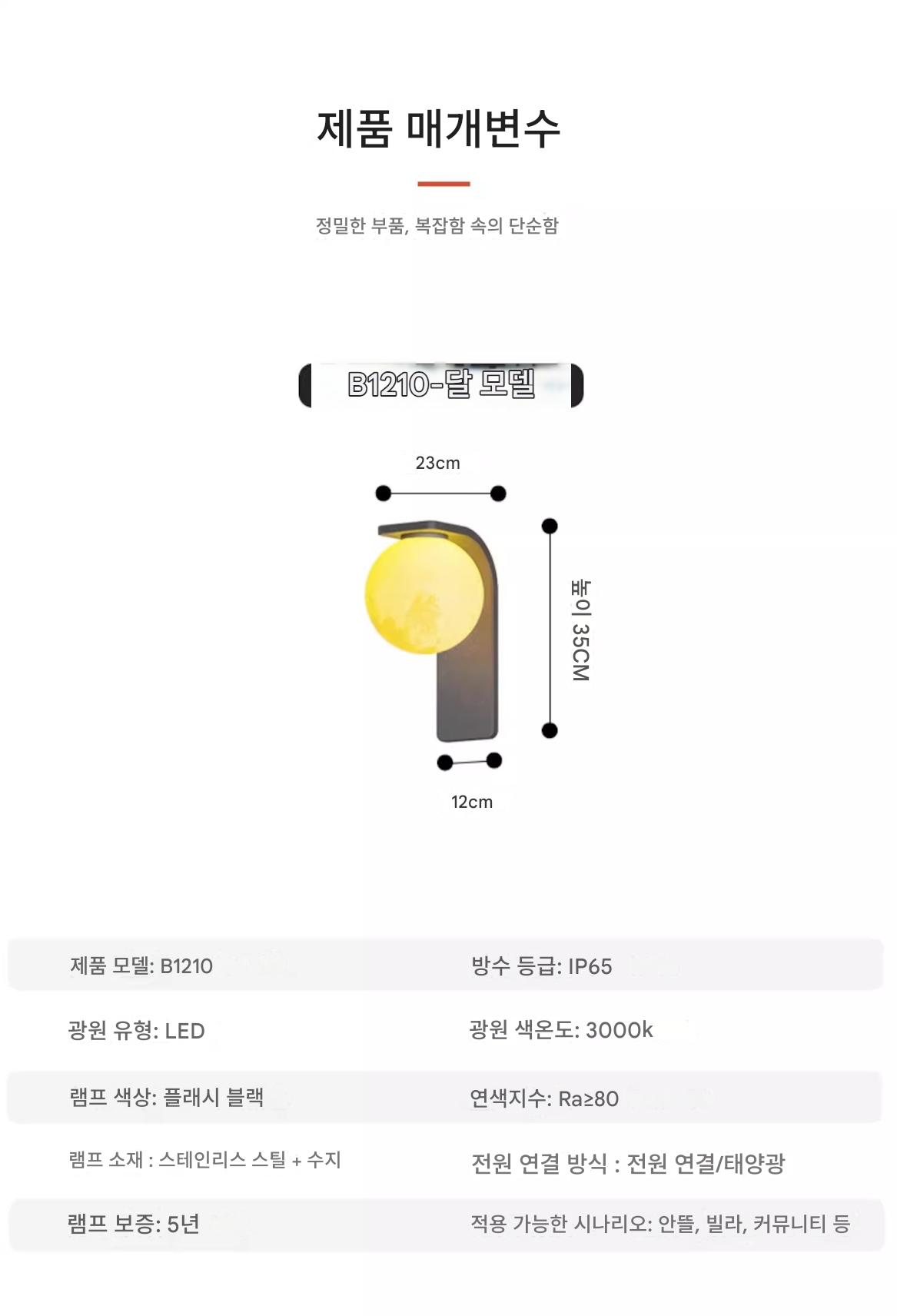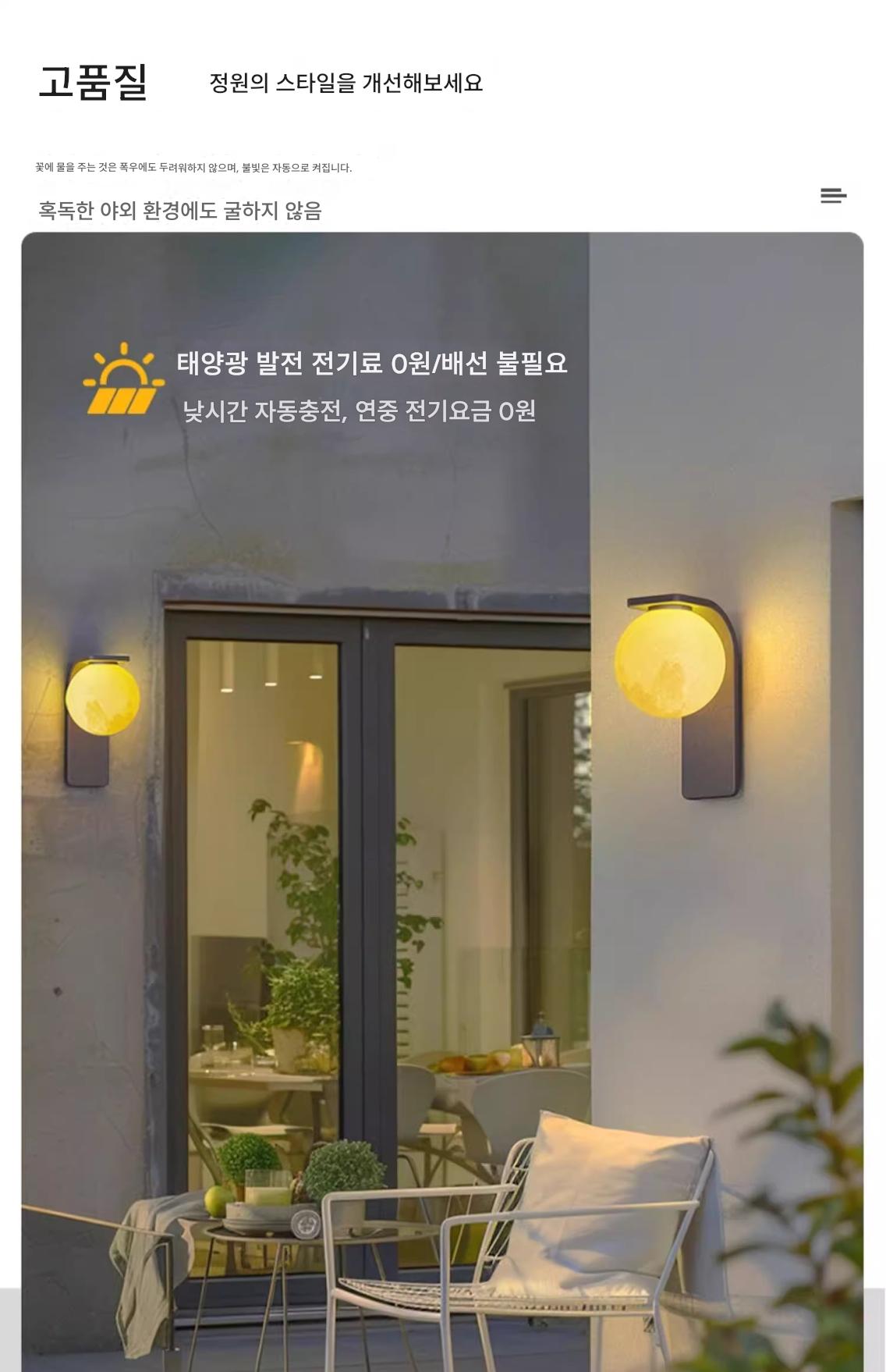 야외용 태양광 벽등 빌라 안뜰 현관 조명 달등 원형 정원 벽등 울타리등
