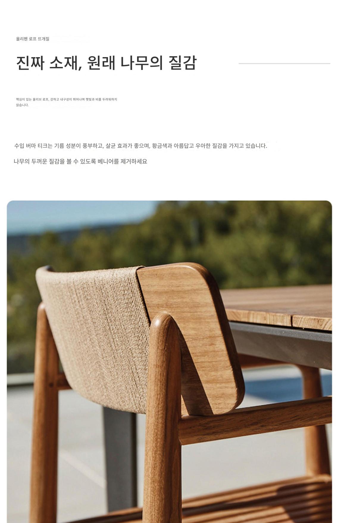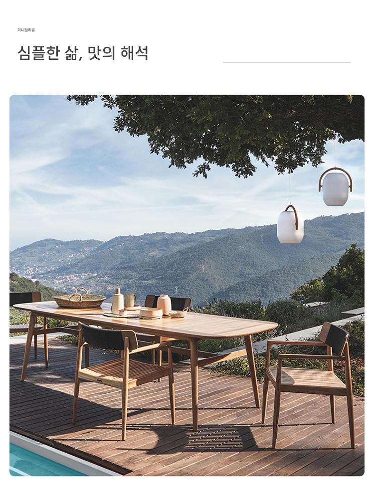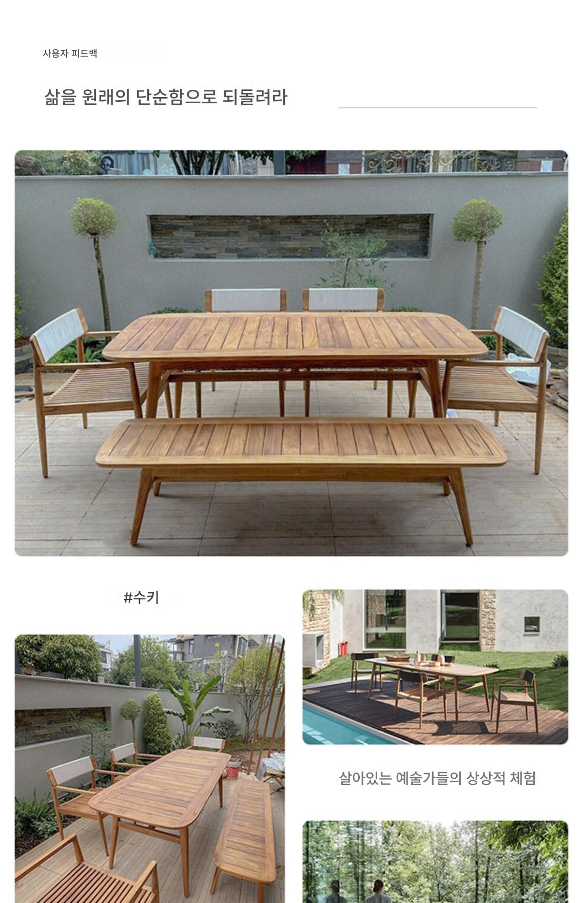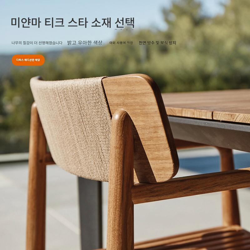 야외용 테이블과 의자 안뜰 빌라 마당 미얀마 티크 롱 테이블 야외 야외 정원 테라스 견고한 나무 식탁 조합