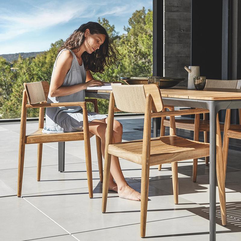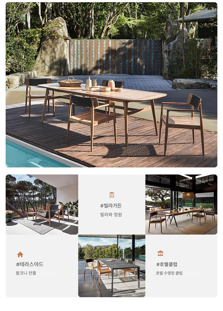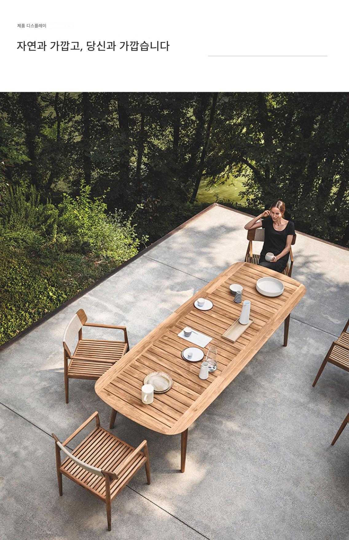 야외용 테이블과 의자 안뜰 빌라 마당 미얀마 티크 롱 테이블 야외 야외 정원 테라스 견고한 나무 식탁 조합