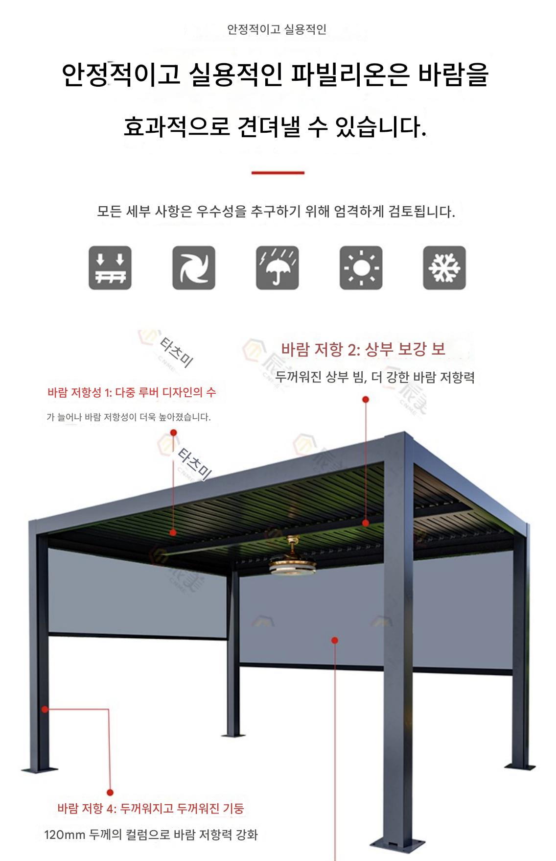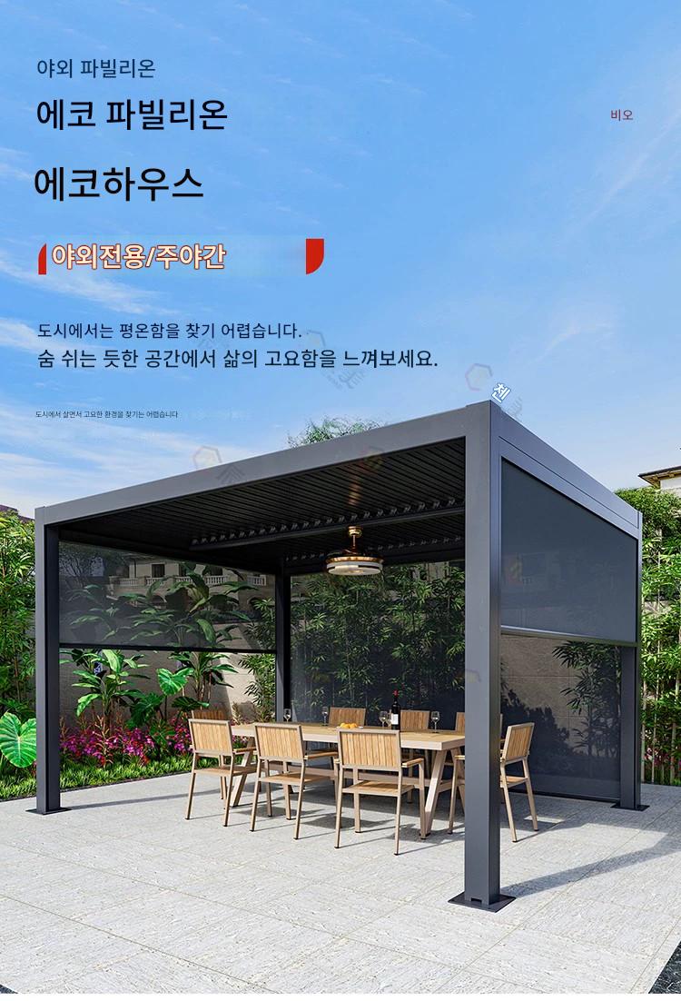 야외 루버 파빌리온 안뜰 정원 전기 파빌리온 테라스 지붕 알루미늄 합금 차양 방풍 중국 파빌리온