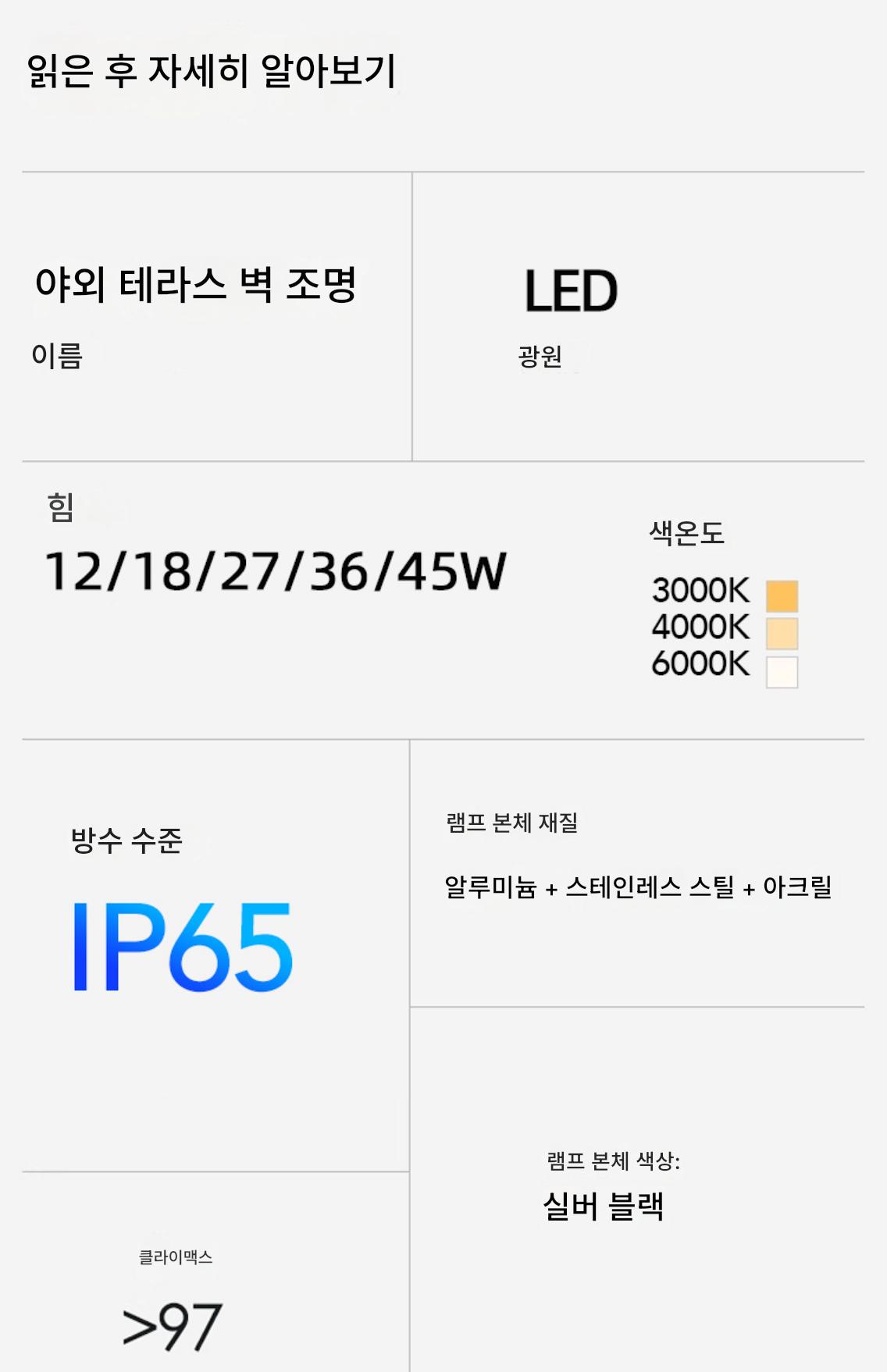 “야외 벽등 태양열 정원등 야외 방수 통로 테라스 외벽 빌라 정원 분위기 장식 벽등”의 첫 상품평을 남겨 주세요