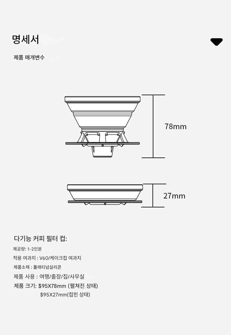 야외 여행 휴대용 실리콘 접이식 필터 컵 V60 핸드 브루 커피 필터 컵 캠핑 드립 필터 커피 필터