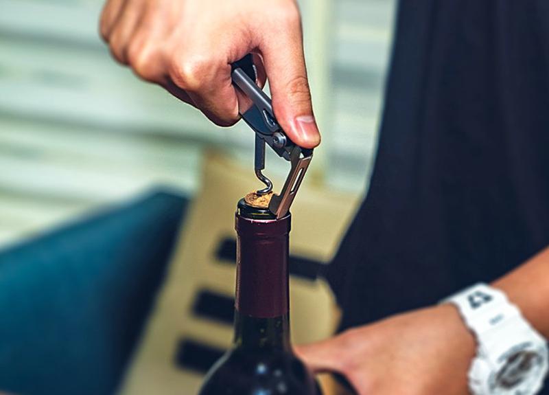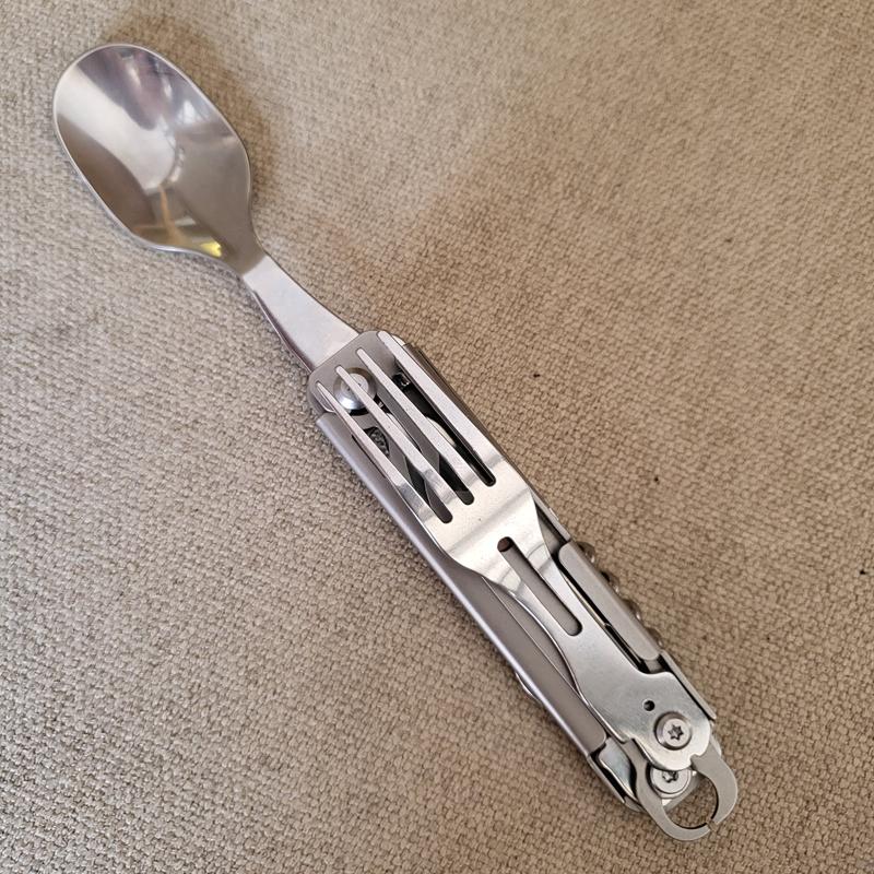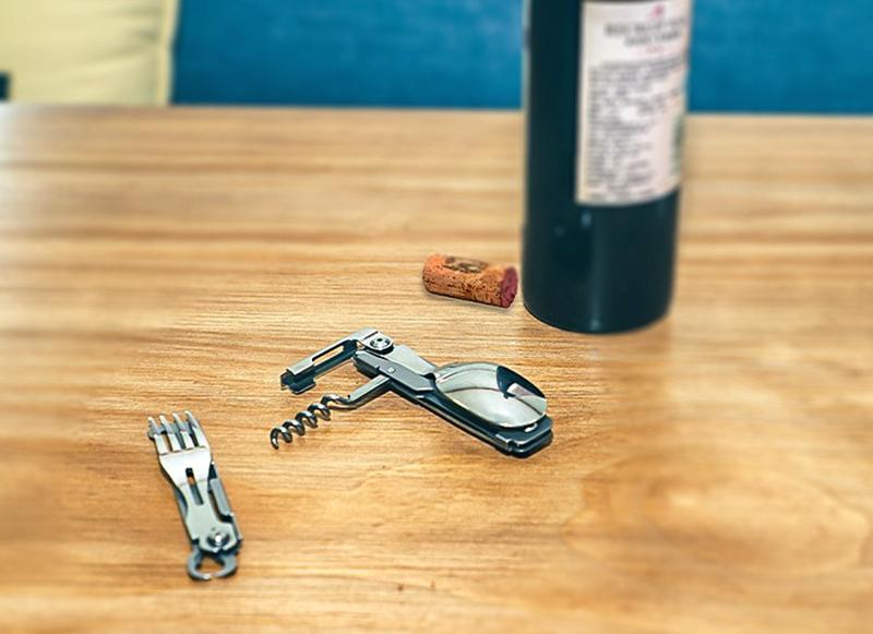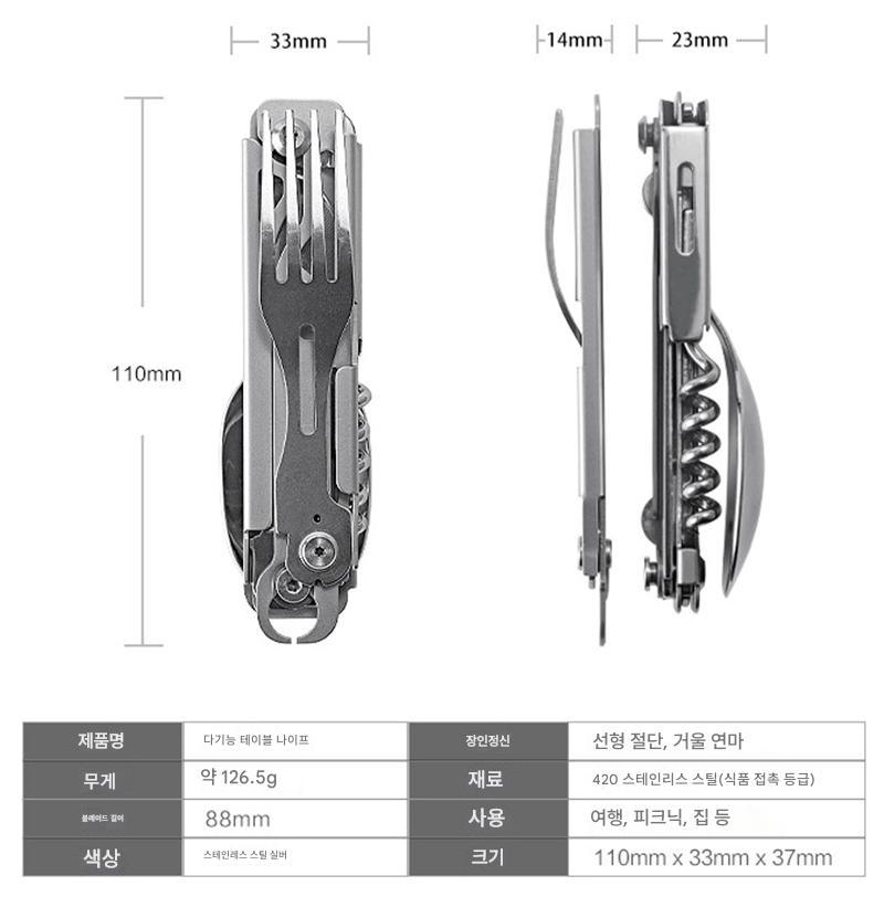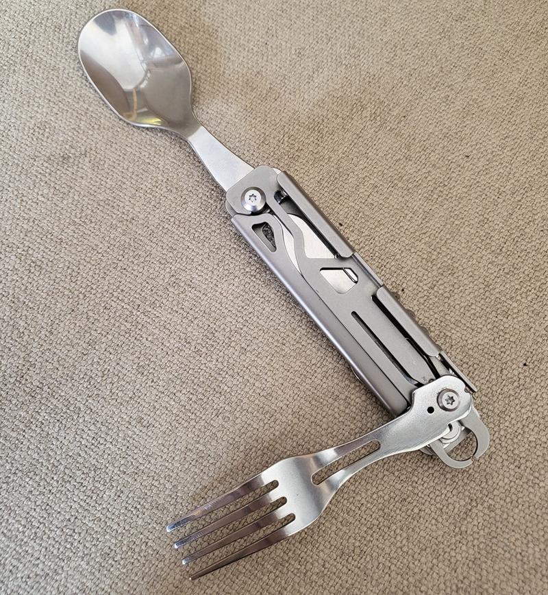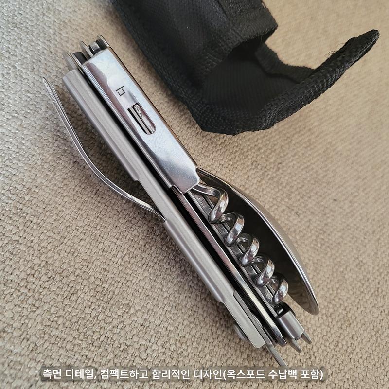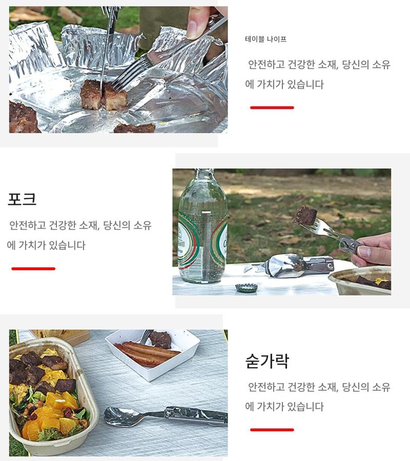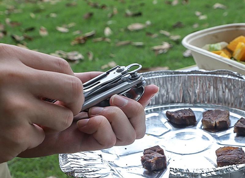 야외 캠핑용 식기 EDC 스테인리스 스틸 다기능 접이식 포크 스푼 콤비네이션 병따개 분해 칼과 포크 세트