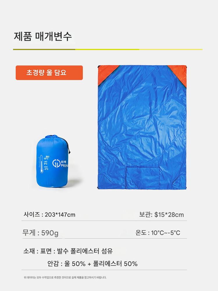 야외 캠핑 등산 따뜻한 울 담요 초경량 휴대용 침낭 숄 여행용 담요 안티 킥 담요
