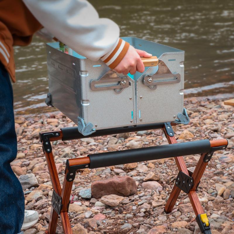 야외 캠핑 아이스 버킷 랙 알루미늄 합금 버킷 랙 조절식 접이식 캠핑 보관 랙 단열 상자 랙 편리